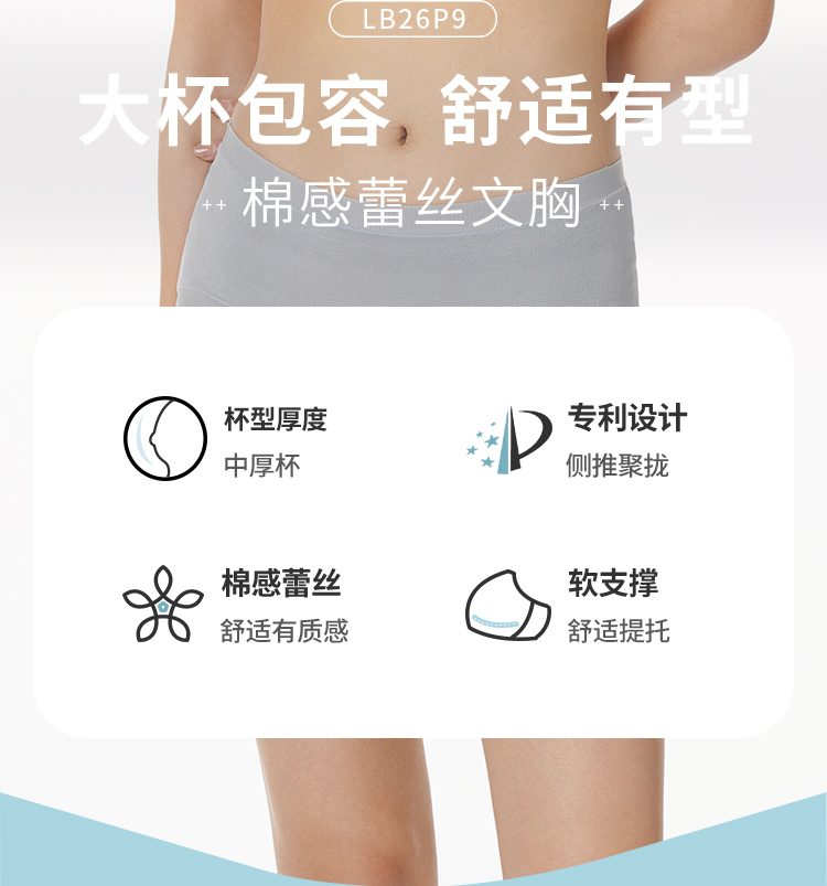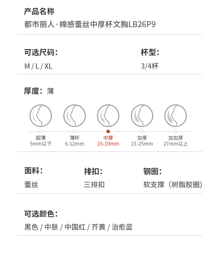 都市丽人内衣中厚蕾丝三排扣无钢圈3/4杯VBRALB26P9