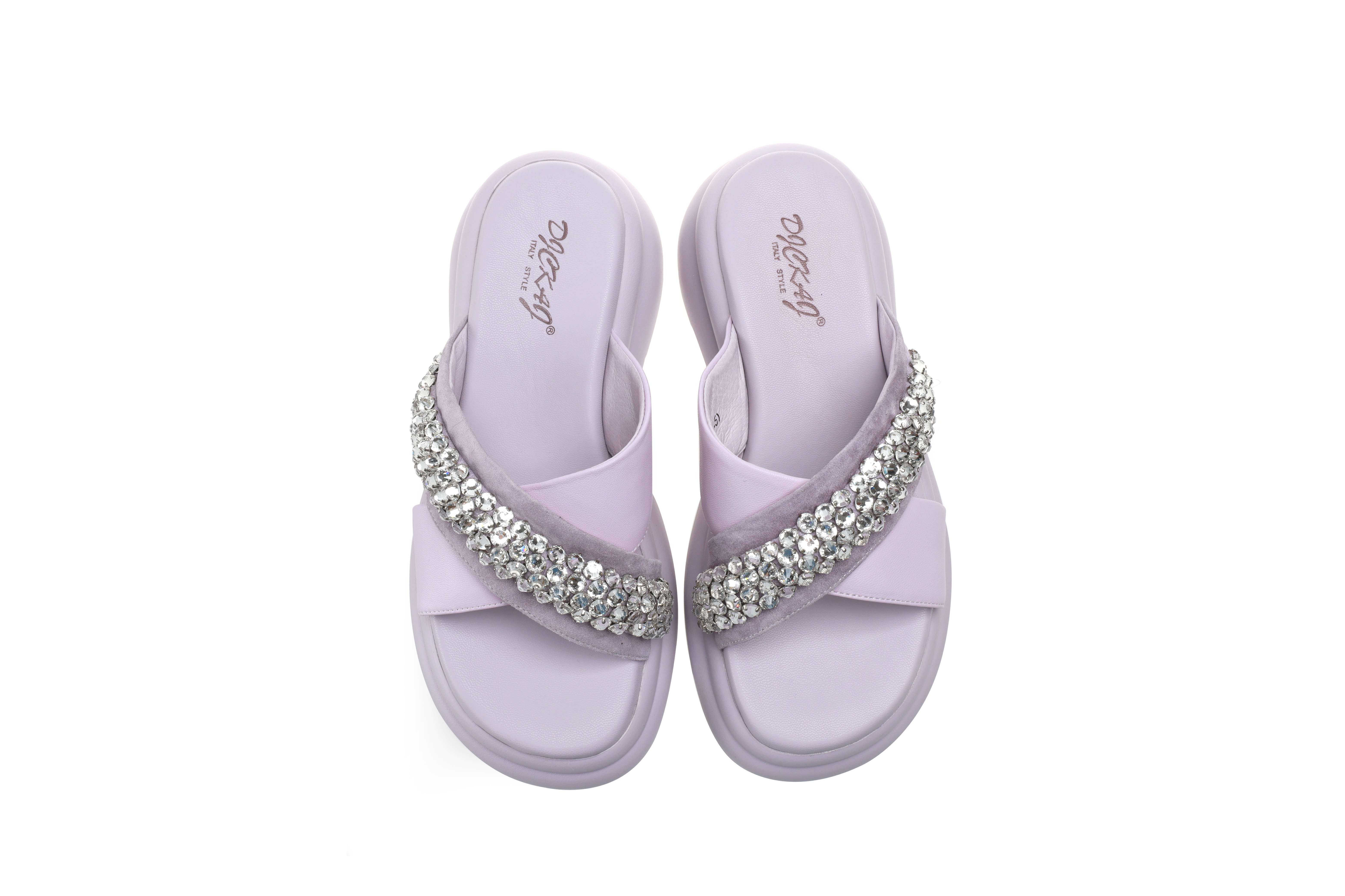 豪麟名鞋迪嘉女装羊皮革+羊反绒面革时尚凉拖DJSKA31WL009紫色