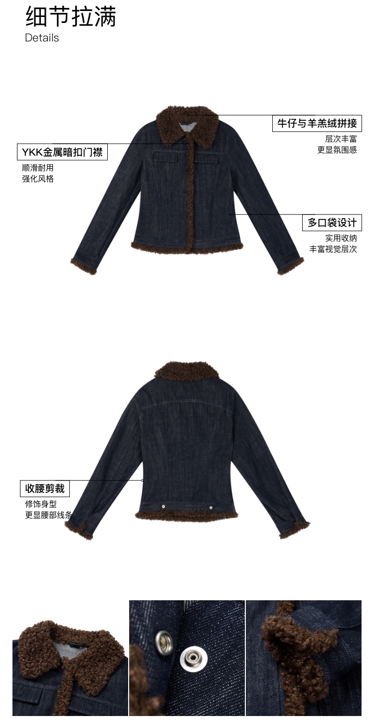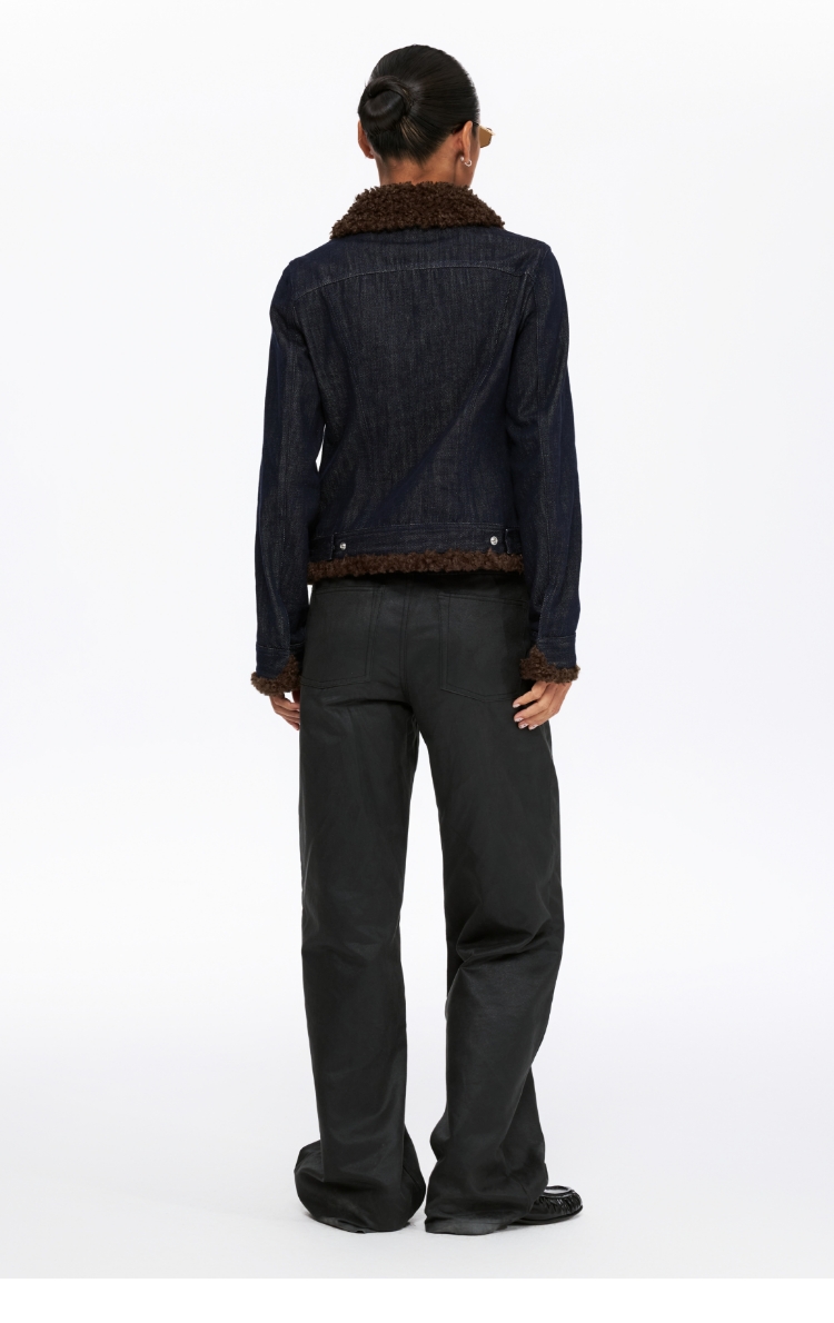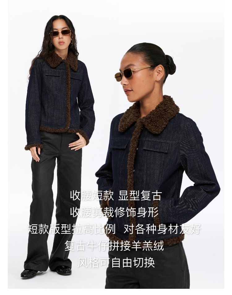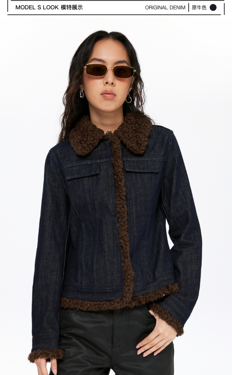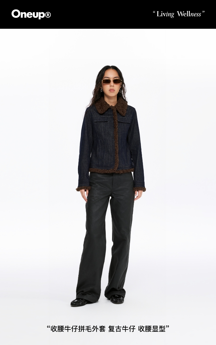 oneup收腰牛仔拼毛外套