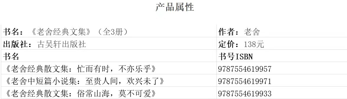 所以今天百草君给大家推荐的百草好书就是:《老舍经典文集》(全3册)。