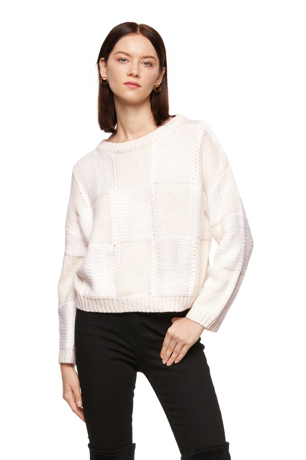 NECESSARY OBJECTS 拼色格纹百搭毛衣 8103