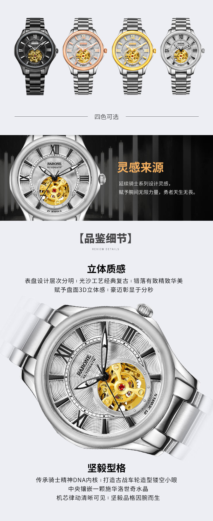 RARONE雷诺表始终秉持创新设计与精品战略。旨在帮助人们精确感悟时间,以一种无畏、坚韧的精英态度,激励每个人在探索世界的过程中,御时而行。