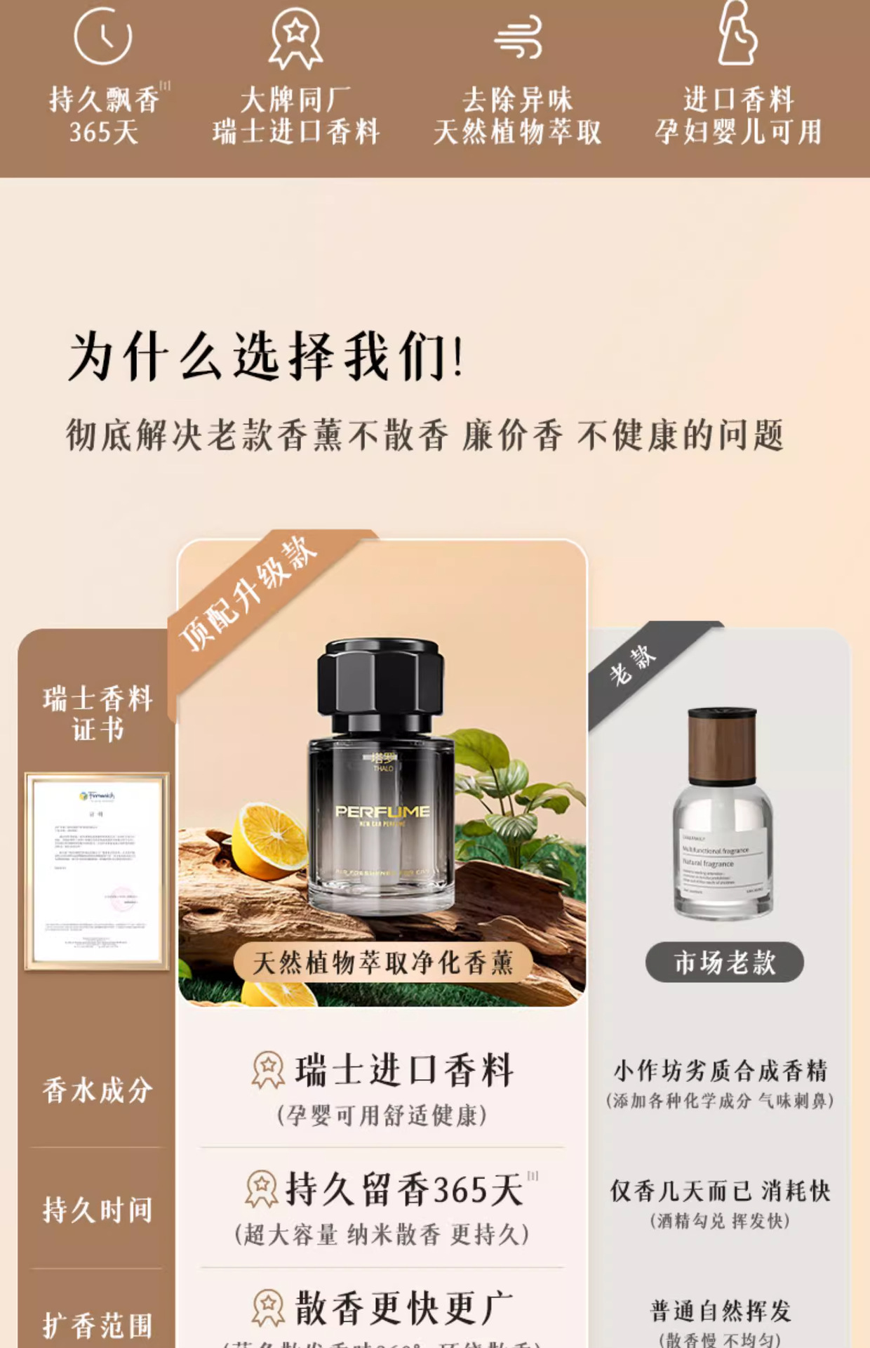 【古龙车载香薰;汽车香水】天然植物萃取,驾车除异味。气味虽淡却持久,365天留香不褪色。安全健康认证。驾车人、孕妇、婴儿皆宜!