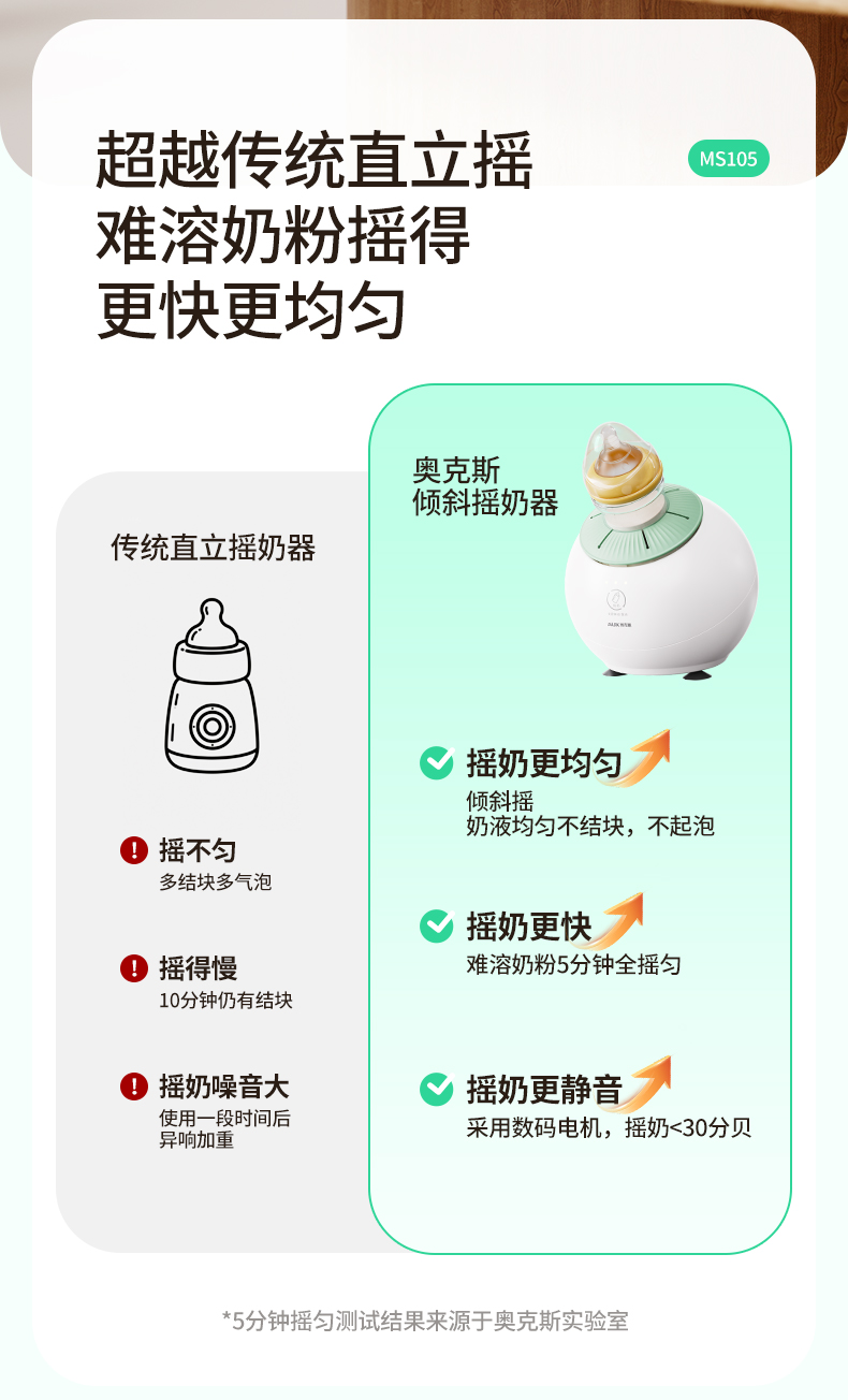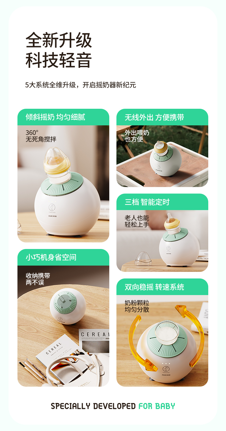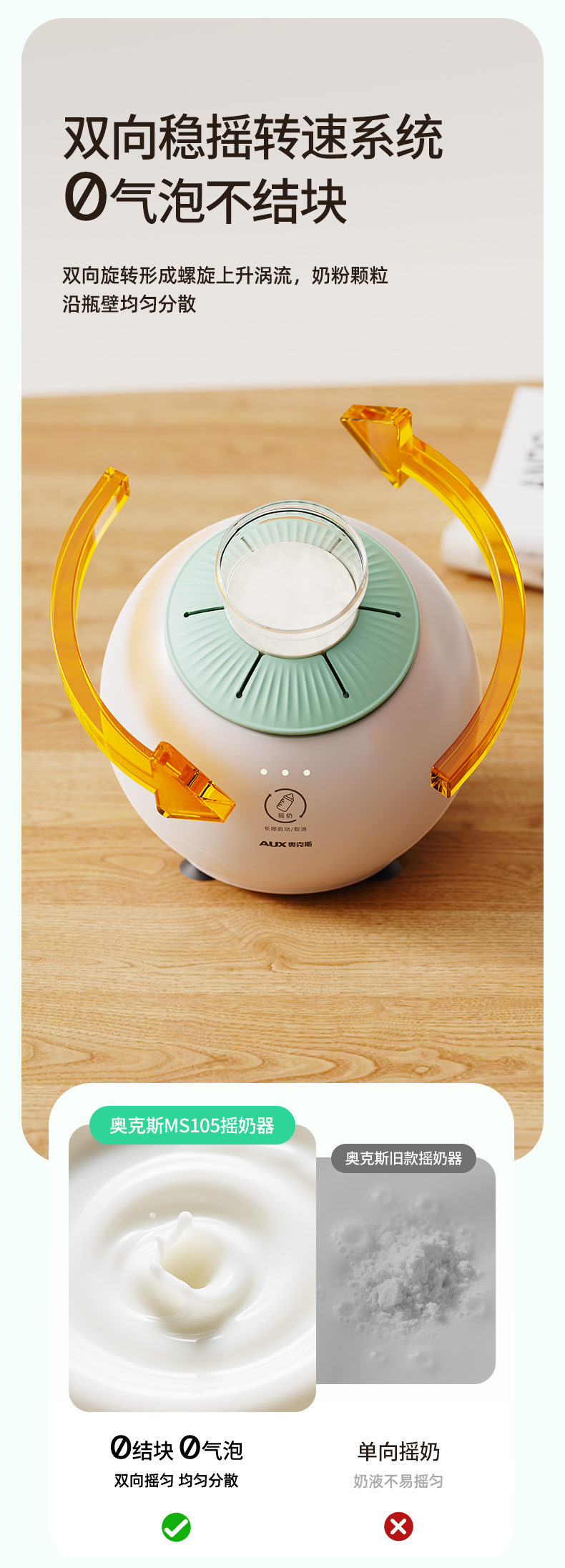 奥克斯婴儿摇奶器 无线便携电动奶粉搅拌器全自动转奶机MS105