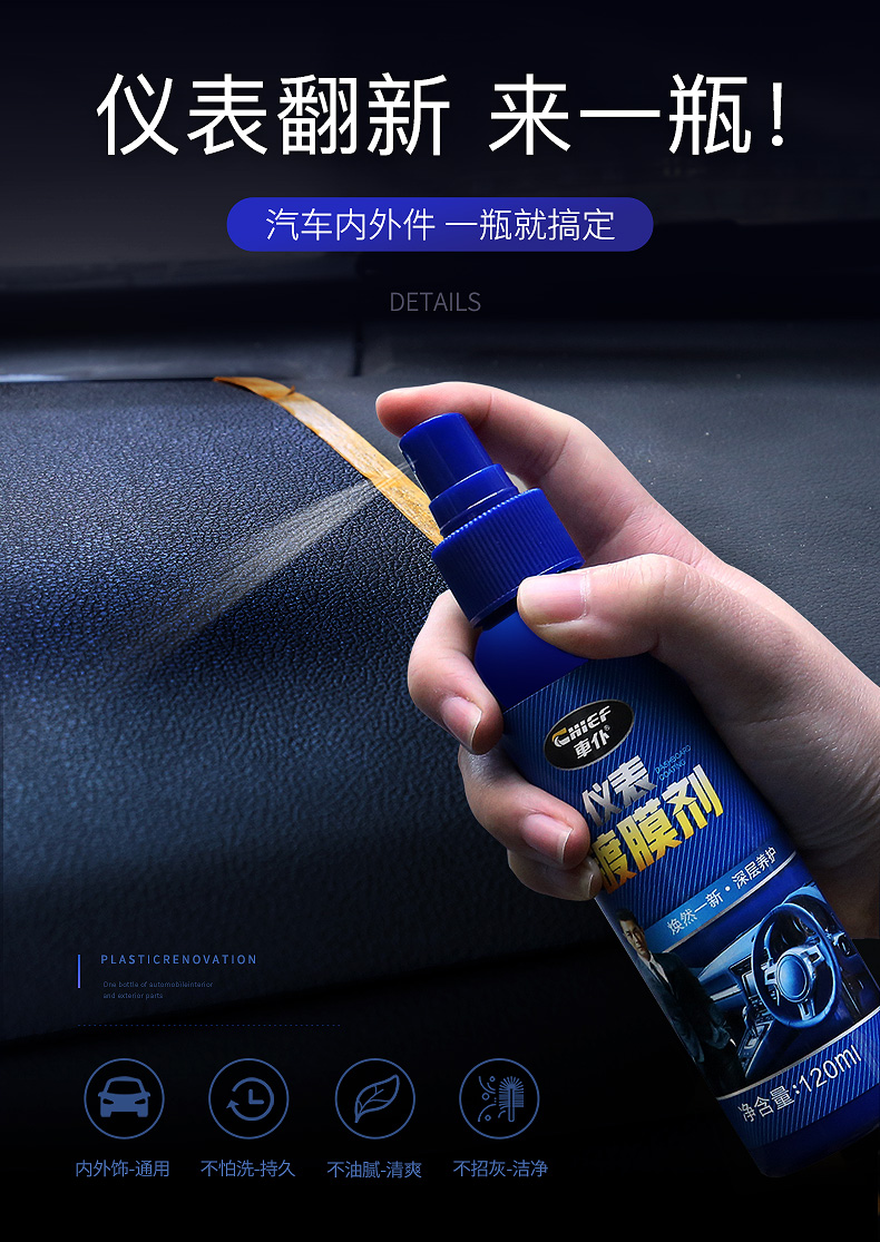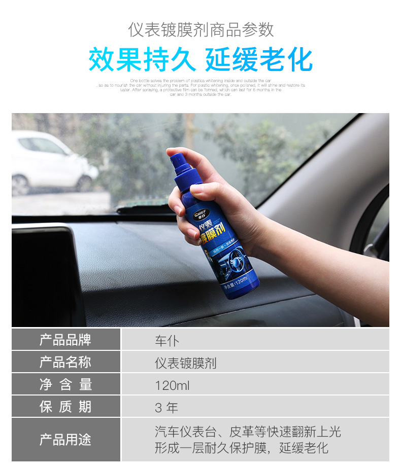 车仆汽车仪表镀膜剂 仪表盘蜡 内饰养护上光保养 塑料件翻新剂
