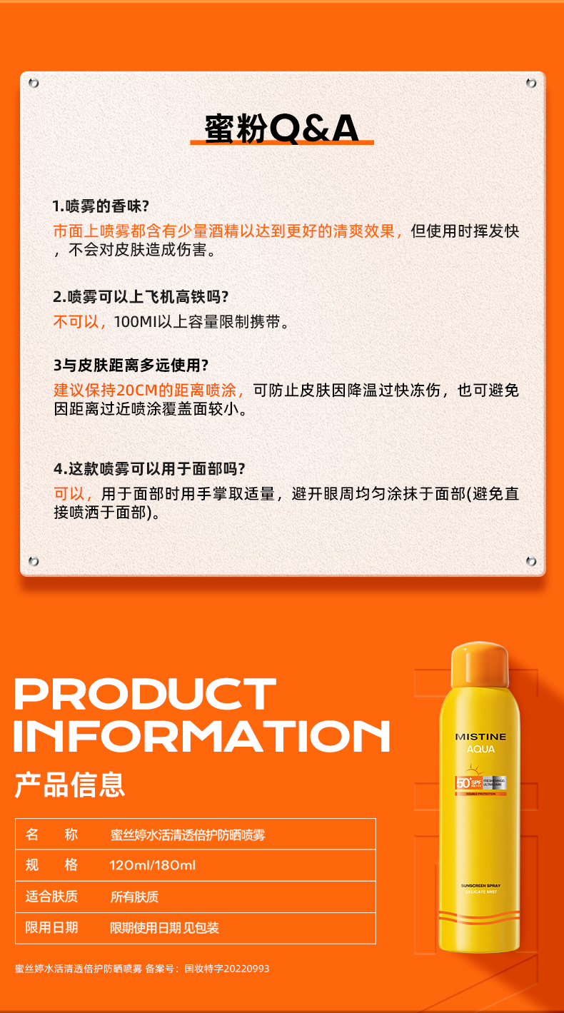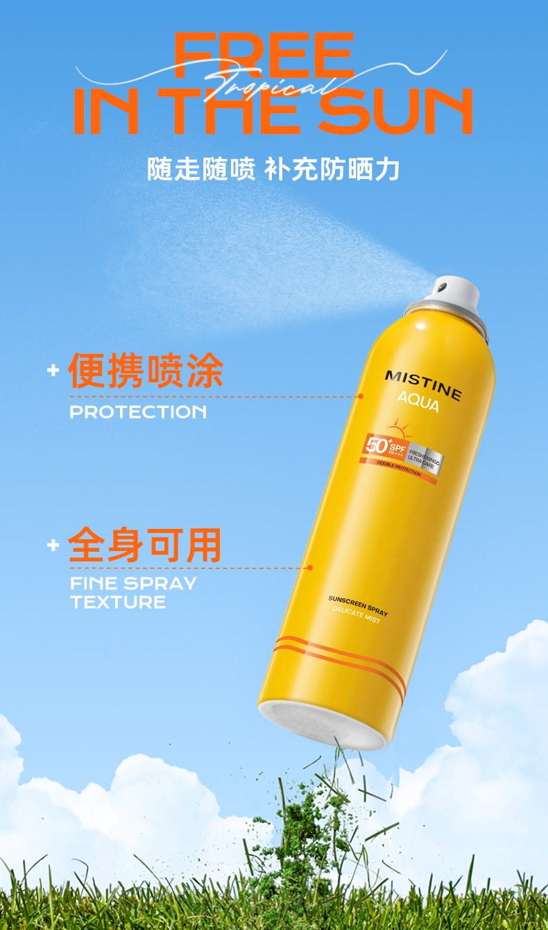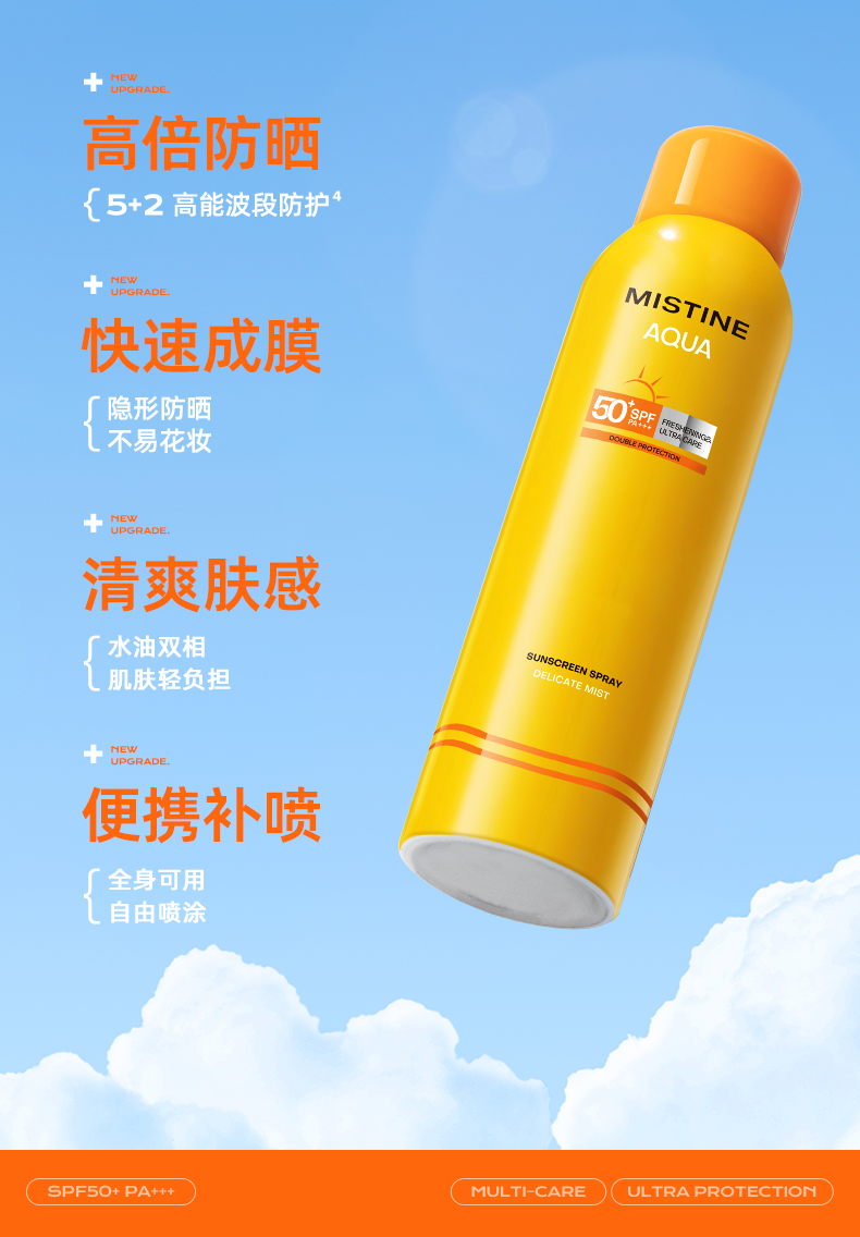 【品名】Mistine防晒喷雾黄喷身体通用便携补喷蜜丝婷防晒霜
