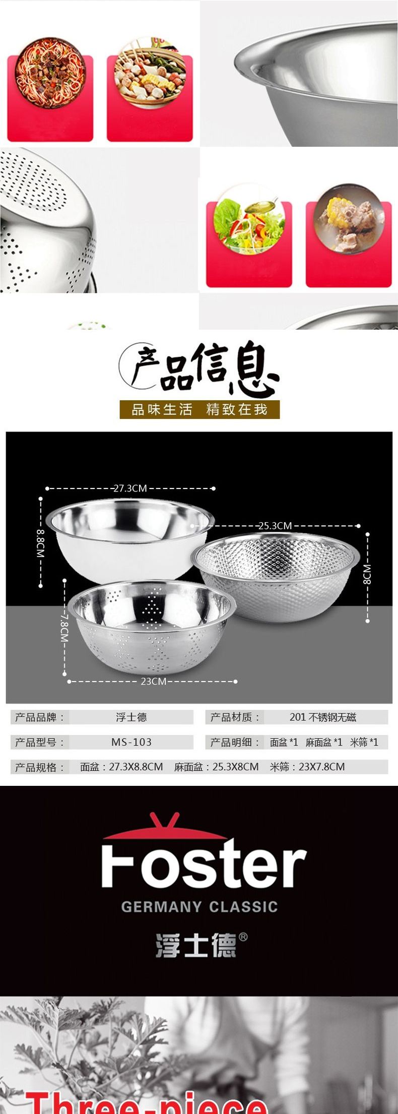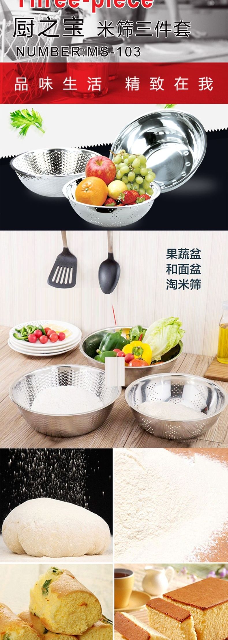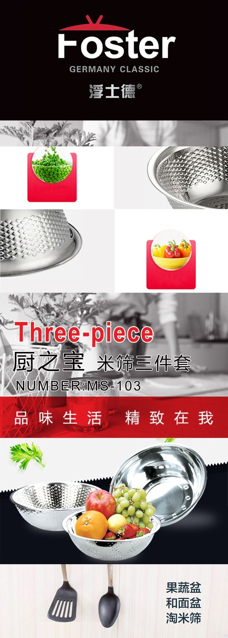 浮士德 厨之宝米筛三件套 MS-103 淘米盆沥水篮洗菜盆