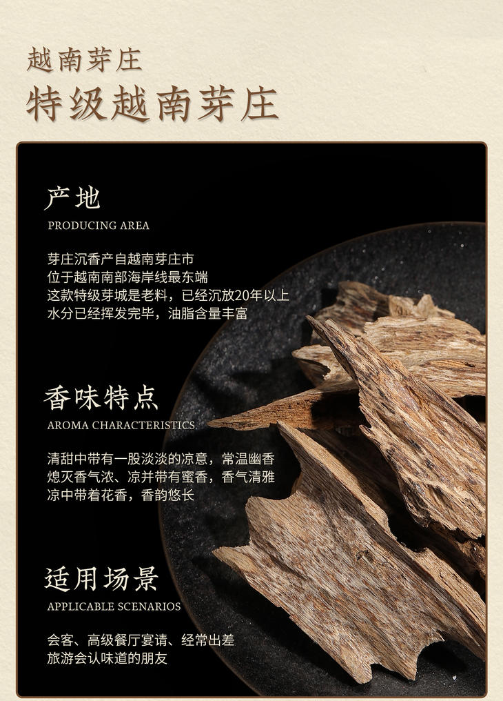 它有前中后调,比如说花香,果香,伴随着凉意的所以沉香就是要买初闻不浓但是越品越浓的才是好沉香。