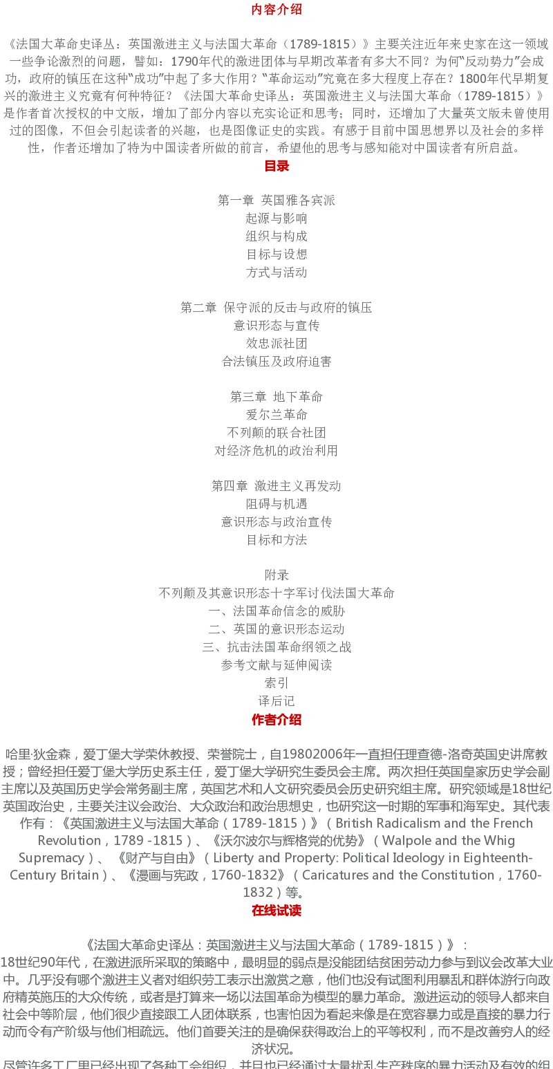 英国激进主义与法国大革命(1789-1815)法国大革命史译丛 9787303212644 北京师范大学出版社 正版书籍