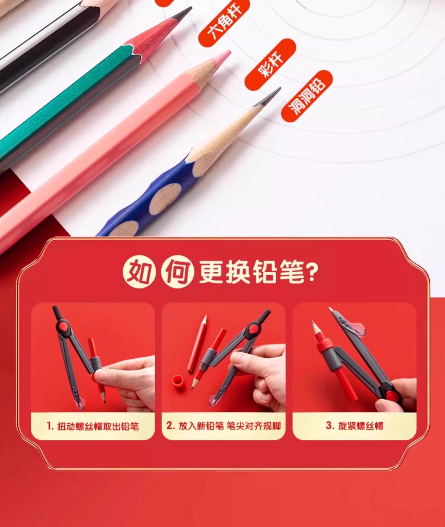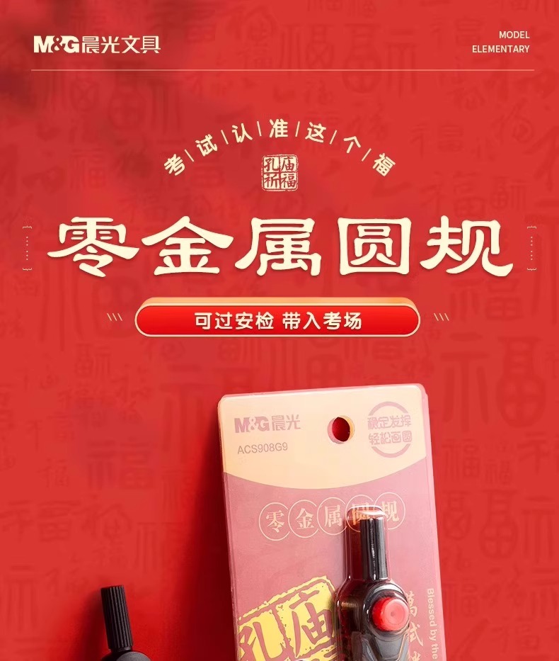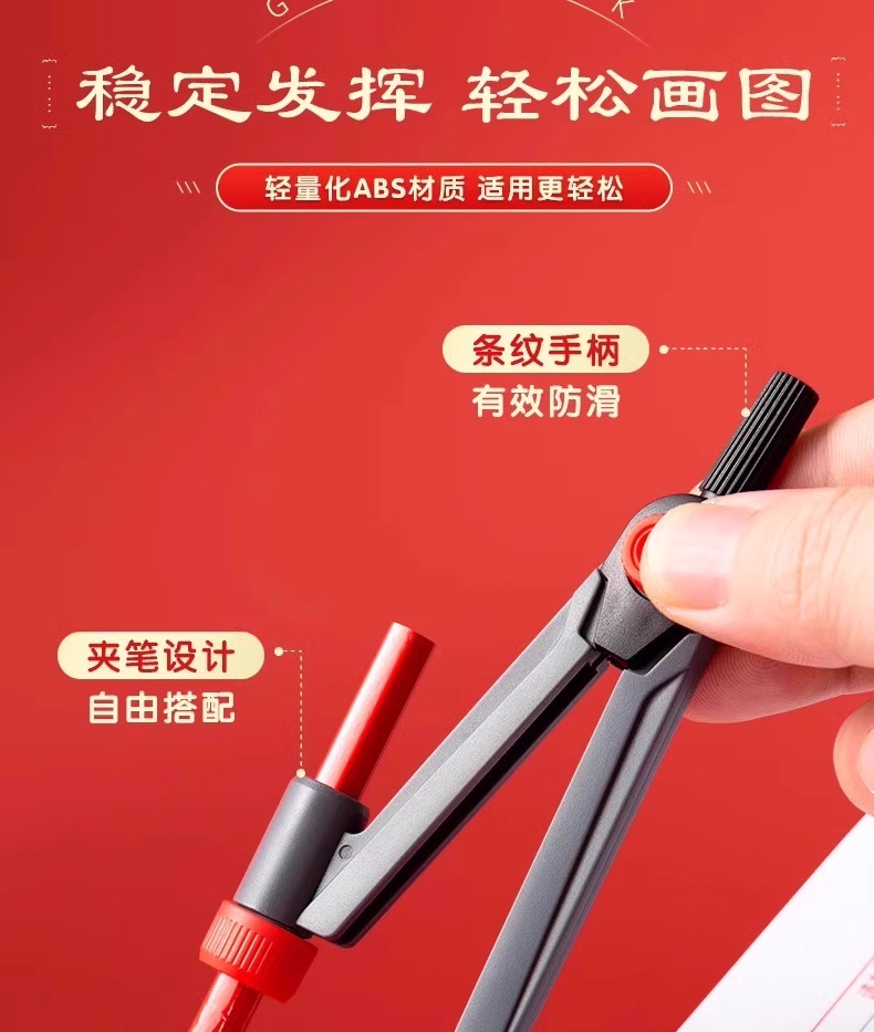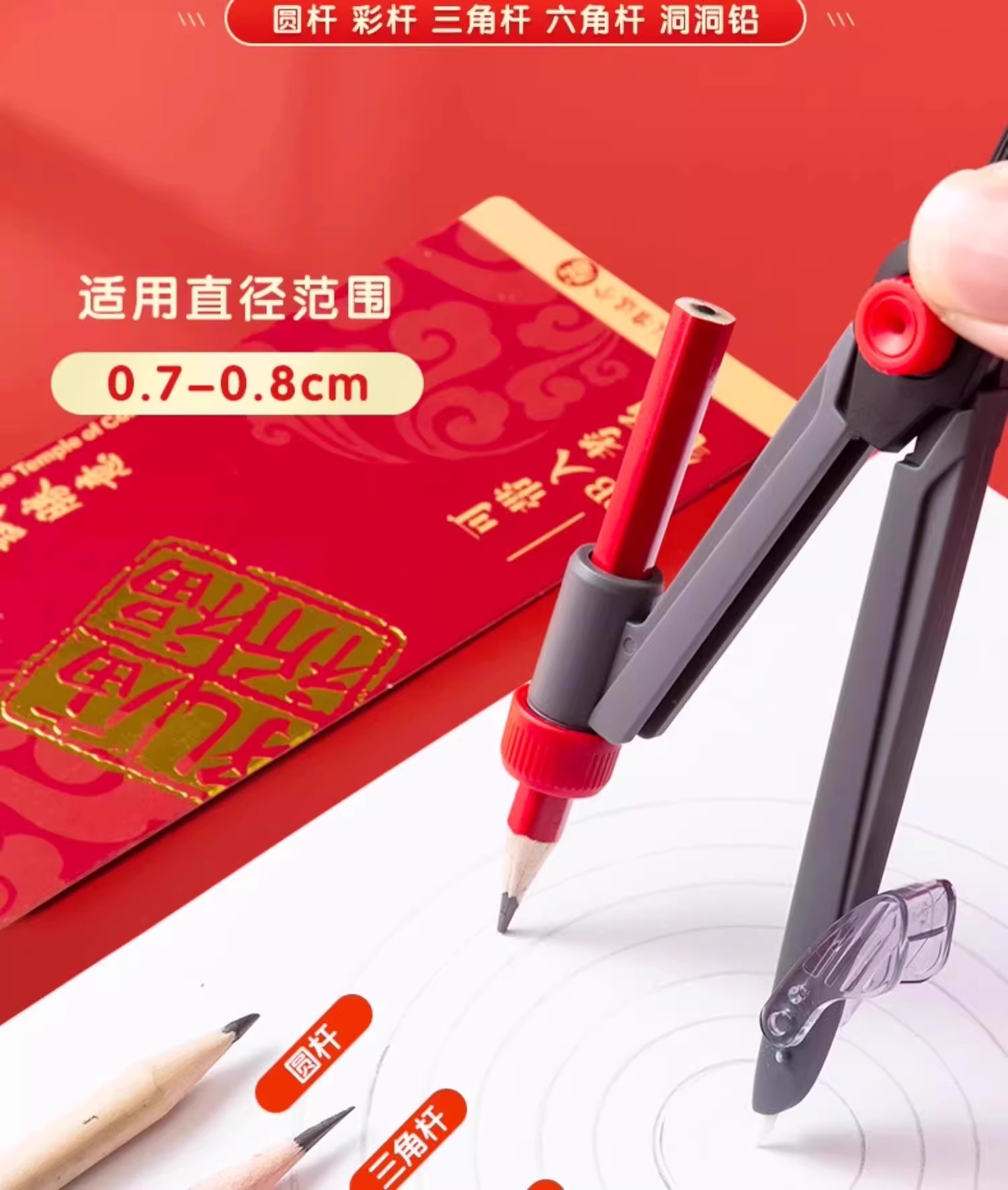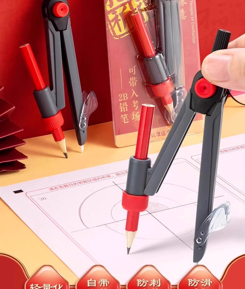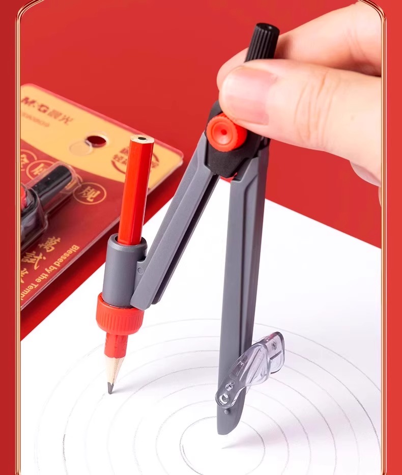 晨光零金属圆规初中生考试专用2B铅笔中考绘图画圆小学专用圆规夹笔可夹铅笔可带入考场塑料圆规三年级夹笔款