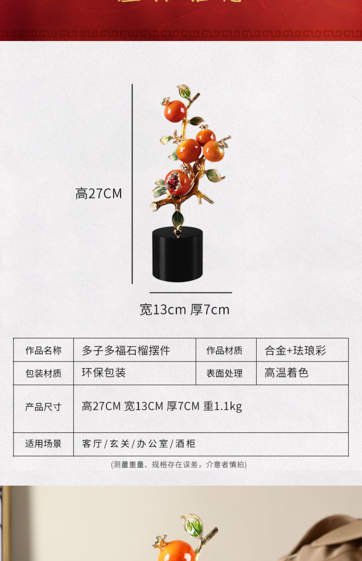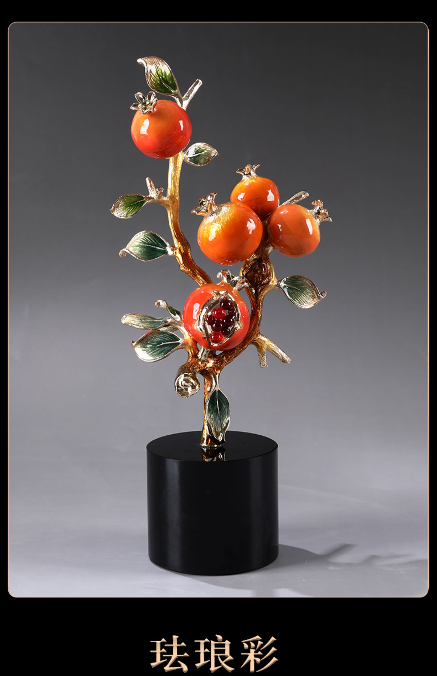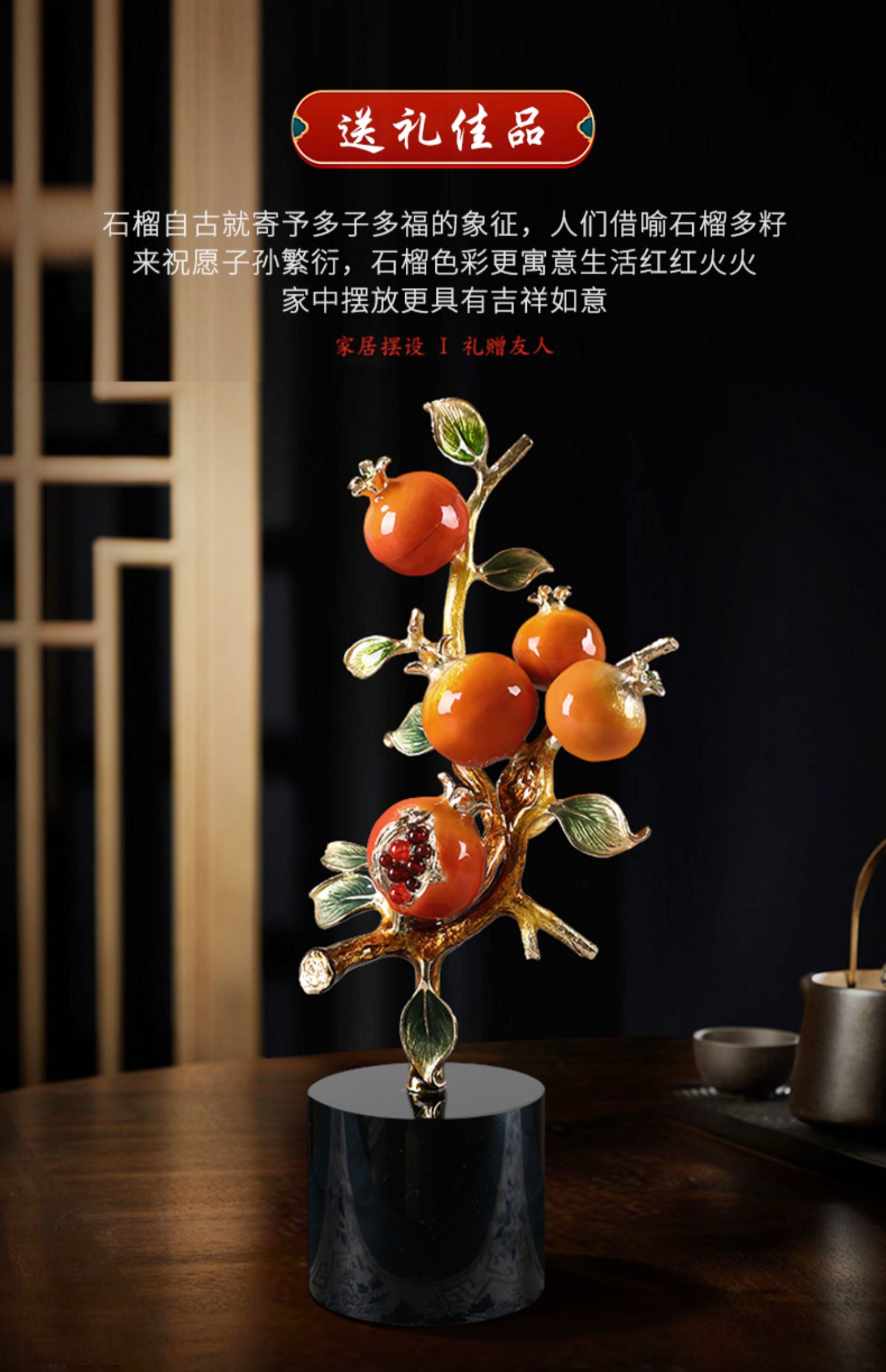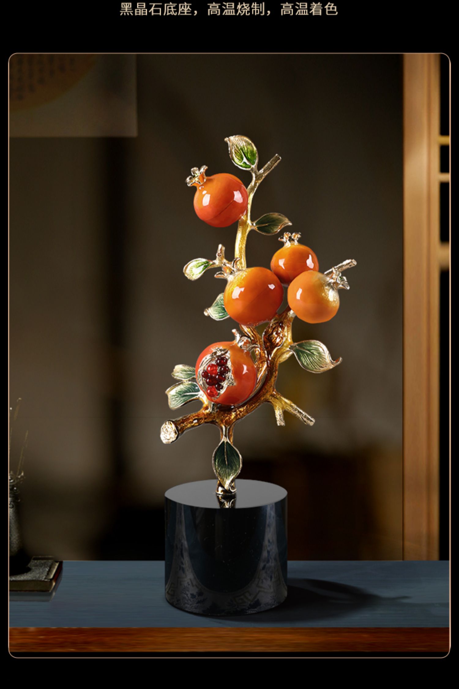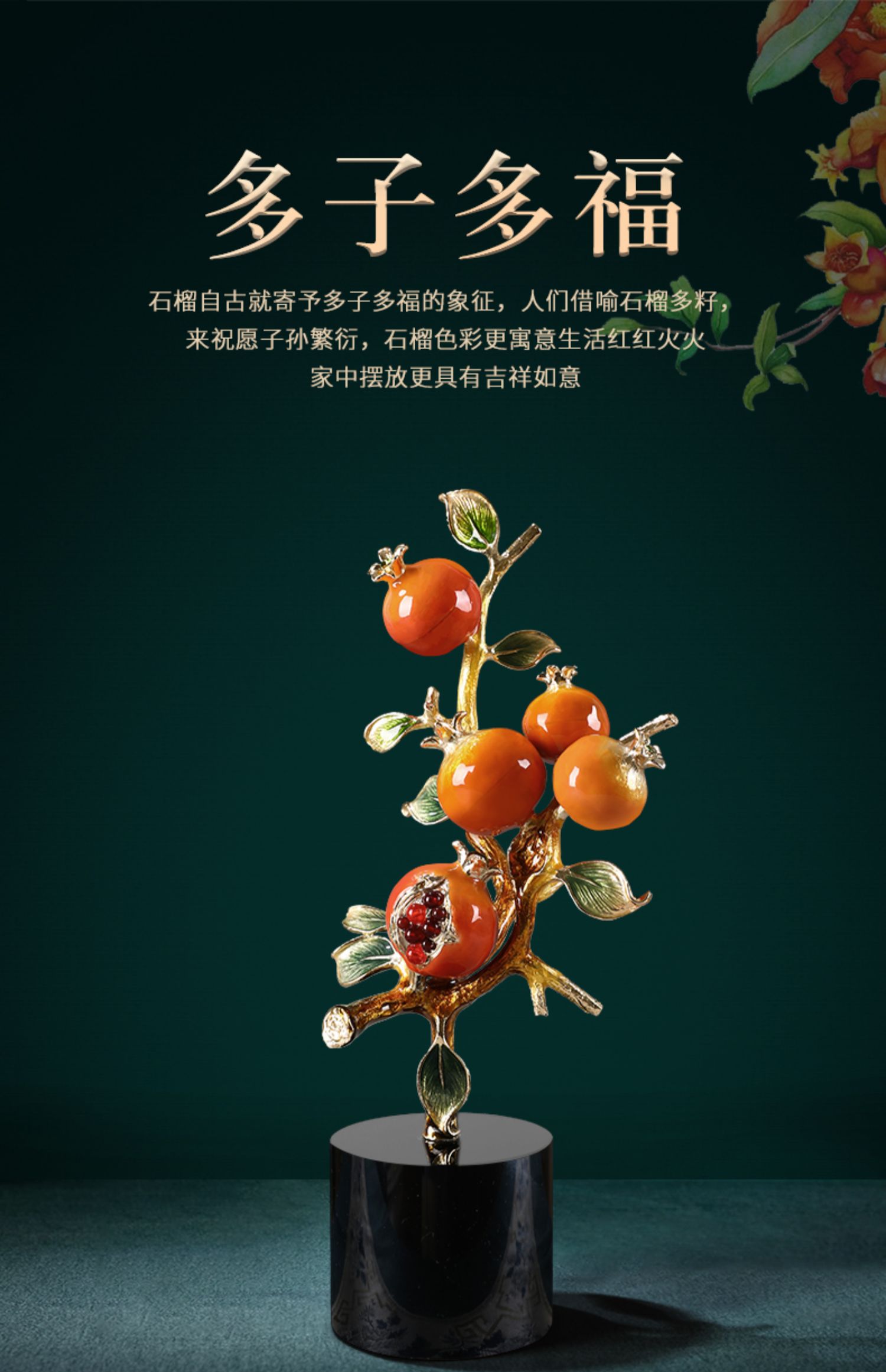 新中式石榴摆件珐琅彩创意客厅家居装饰品玄关酒柜电视柜轻奢高端珐琅彩石榴多子多福摆件