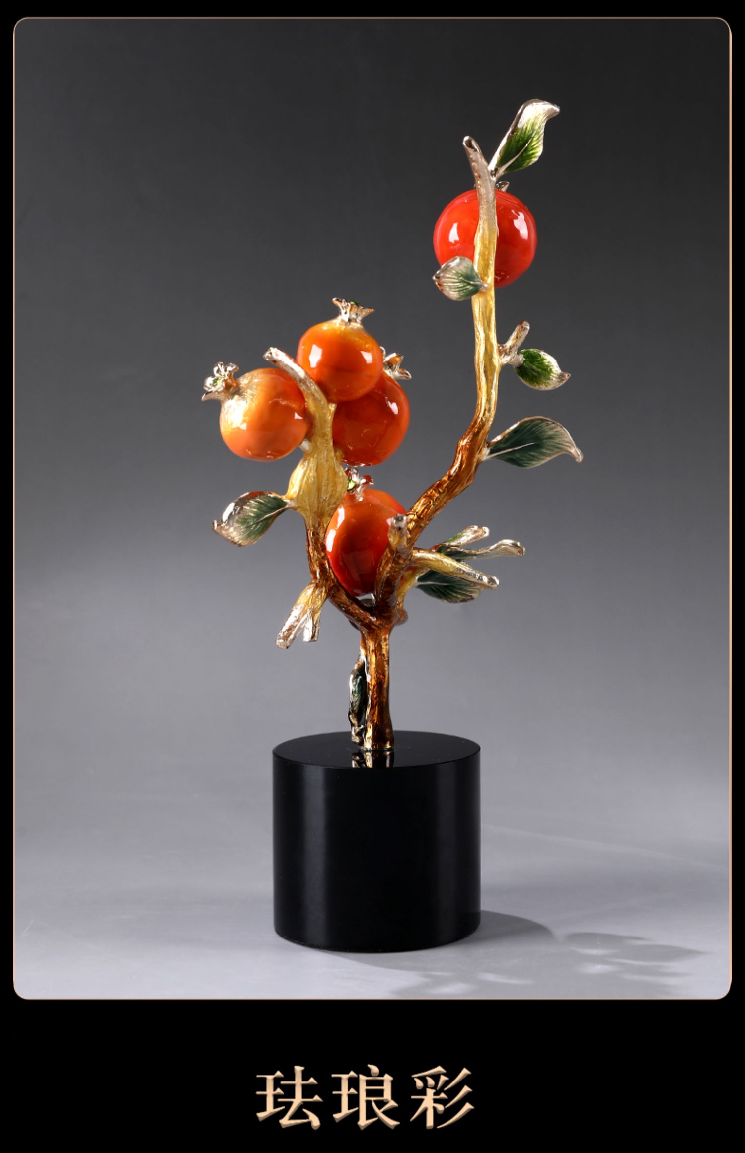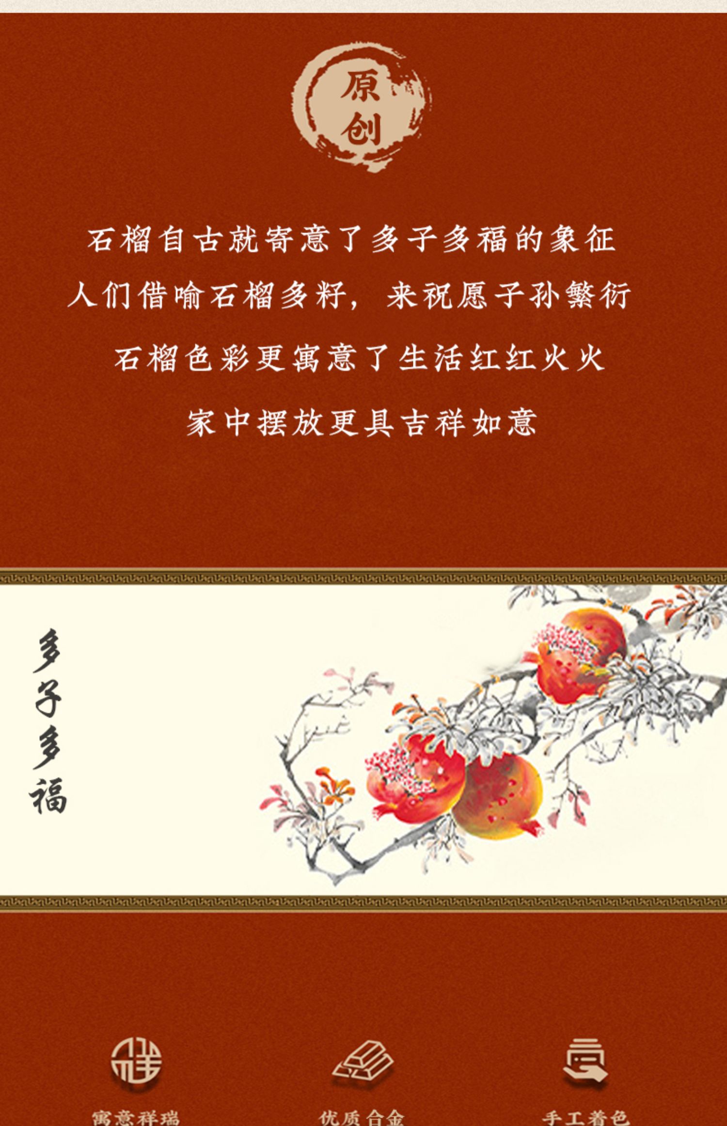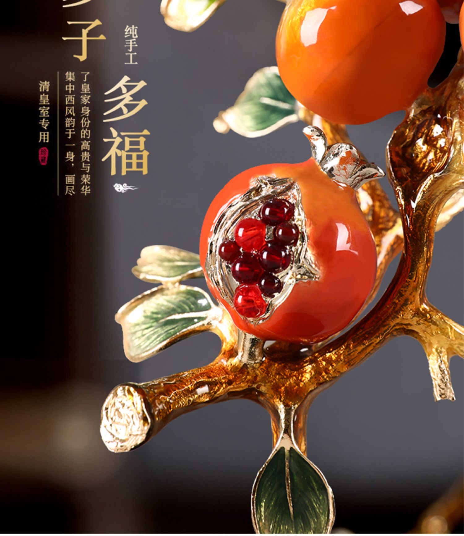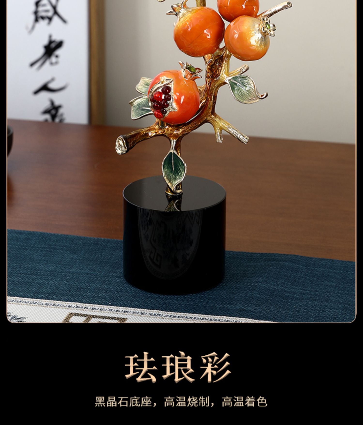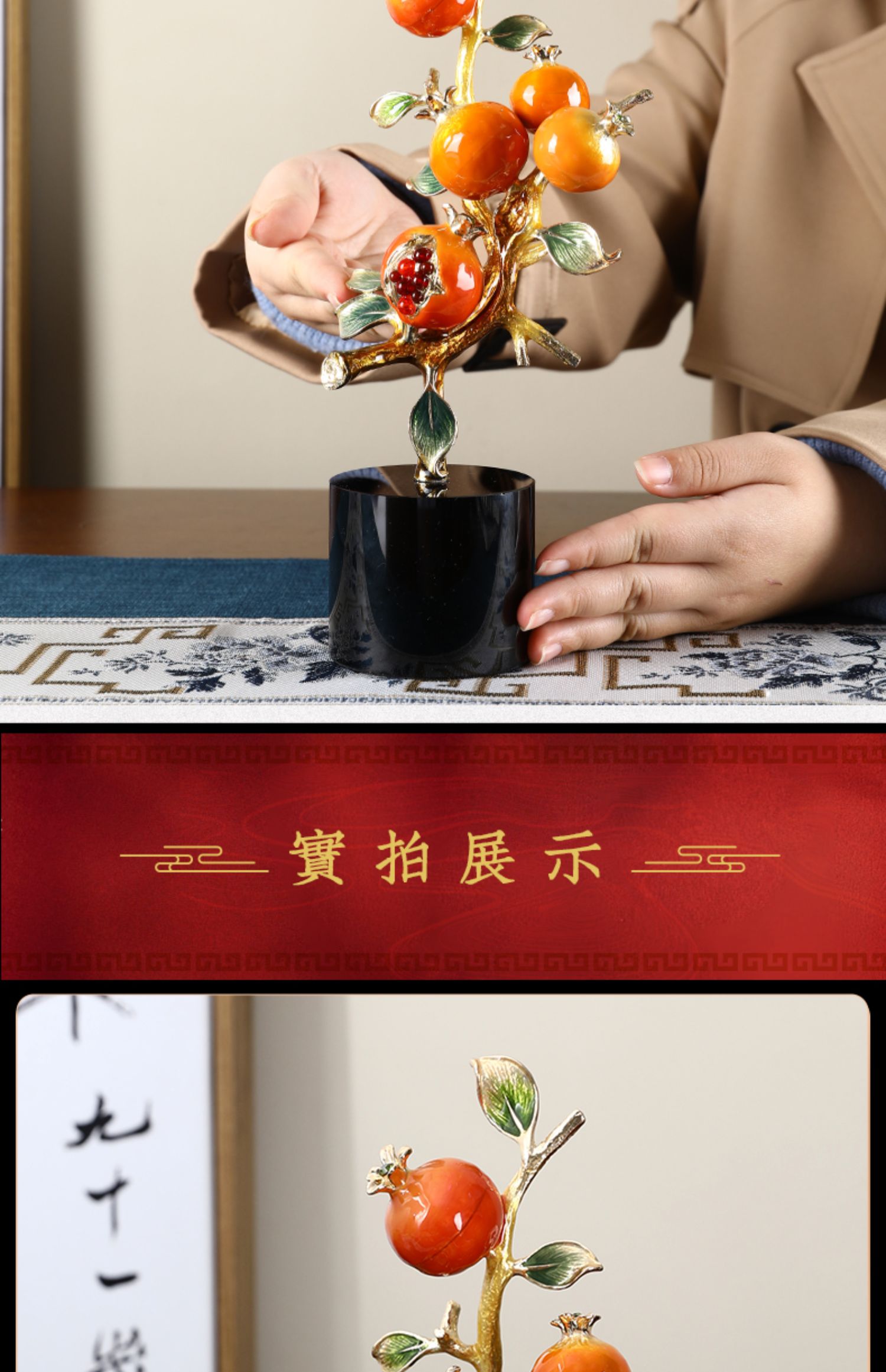 新中式石榴摆件珐琅彩创意客厅家居装饰品玄关酒柜电视柜轻奢高端珐琅彩石榴多子多福摆件