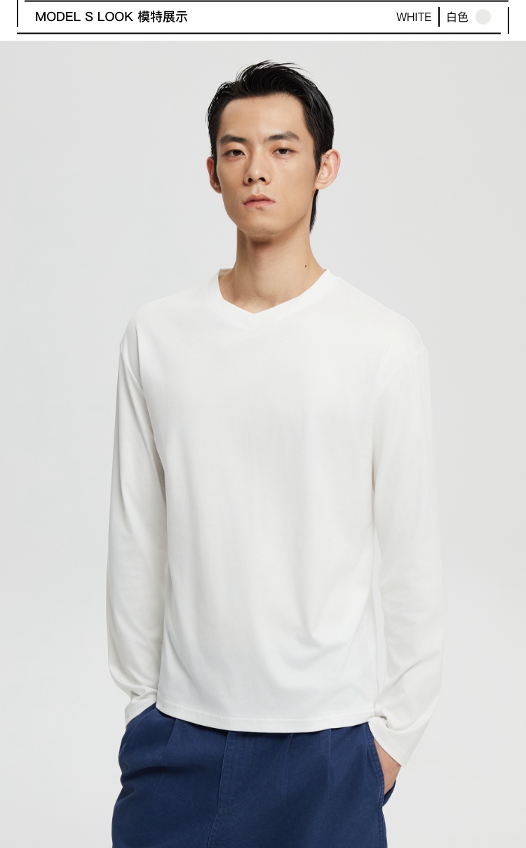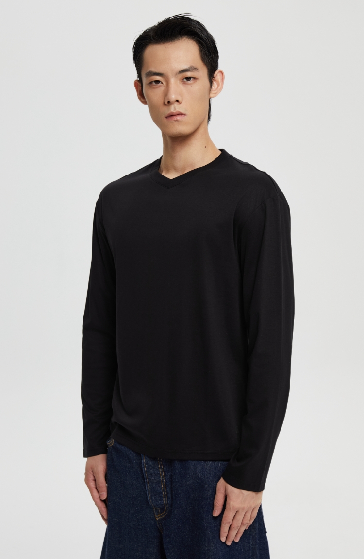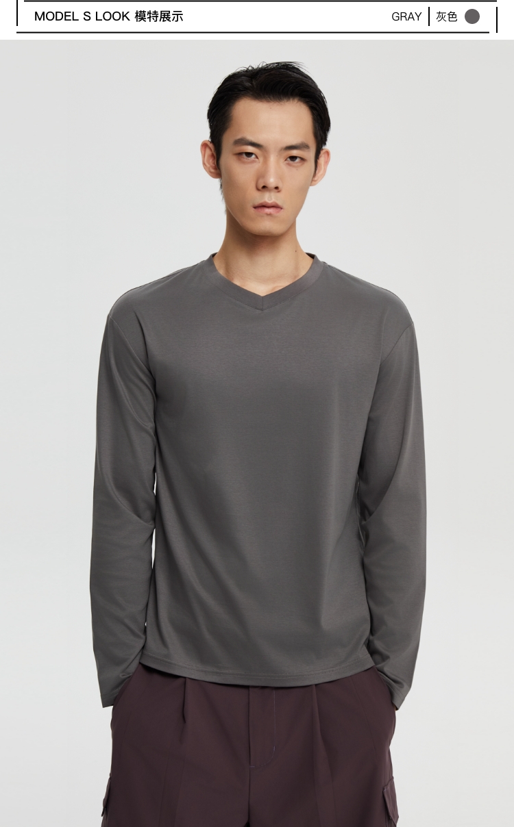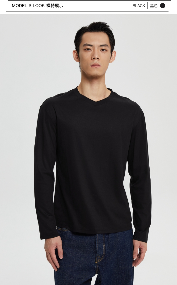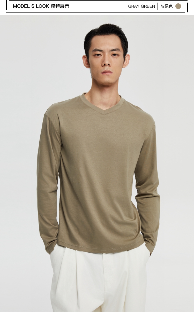 丝光桑蚕丝v领合身长袖