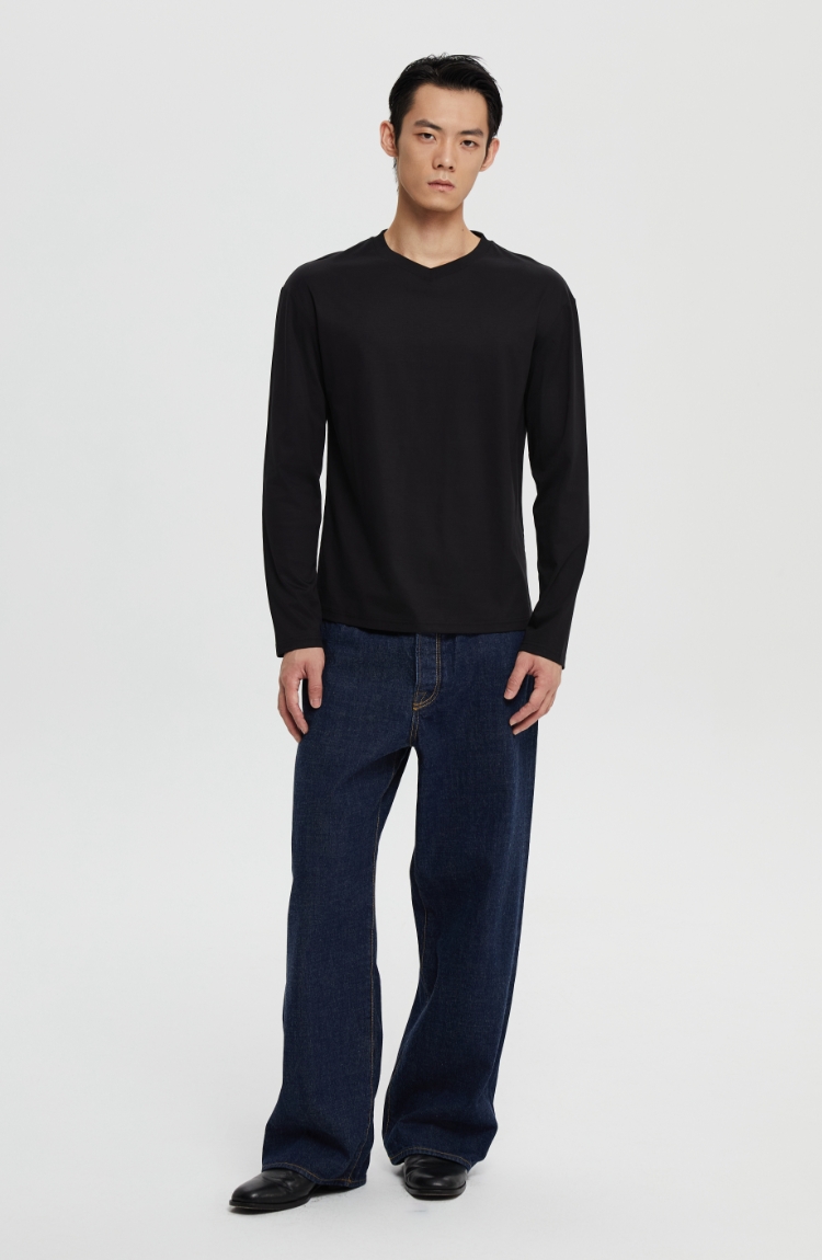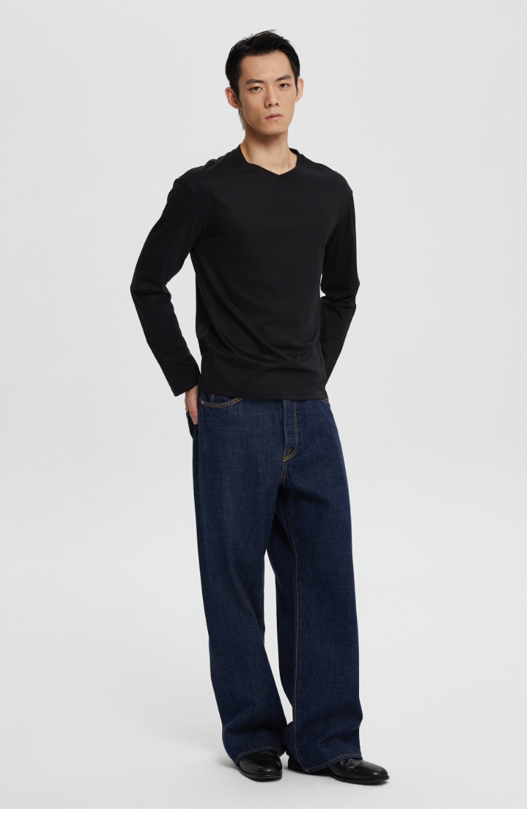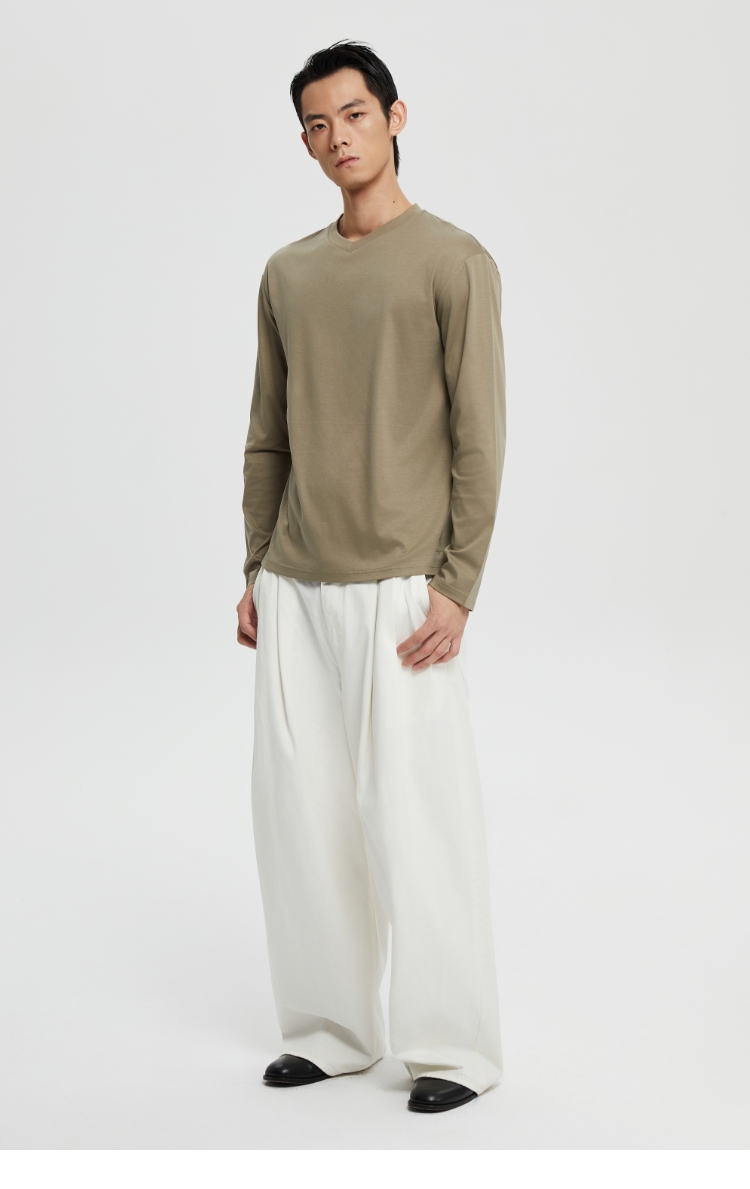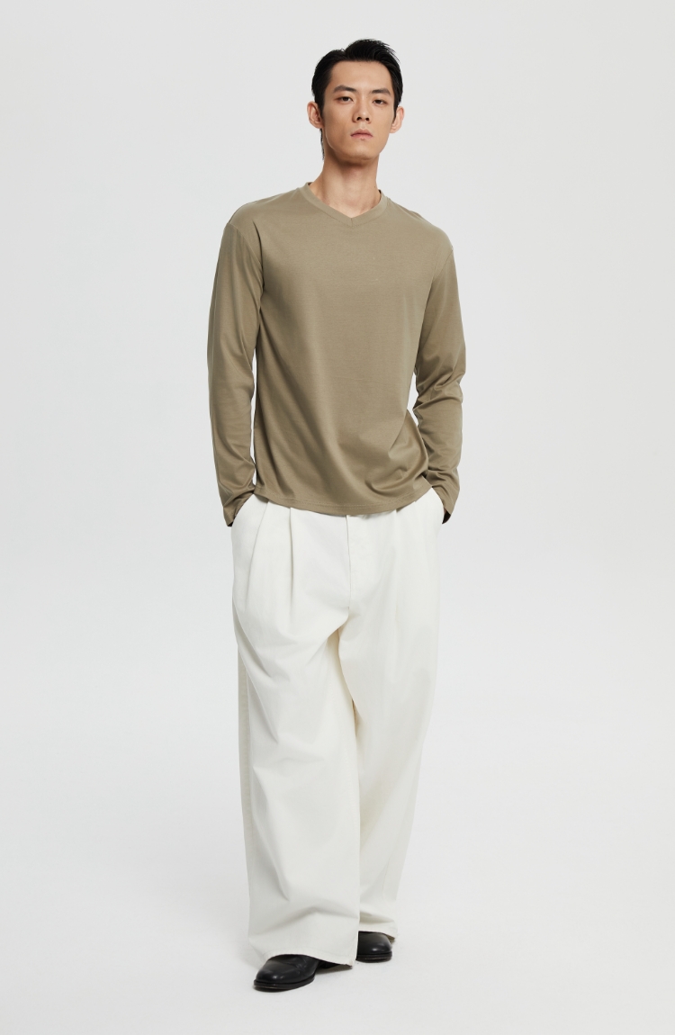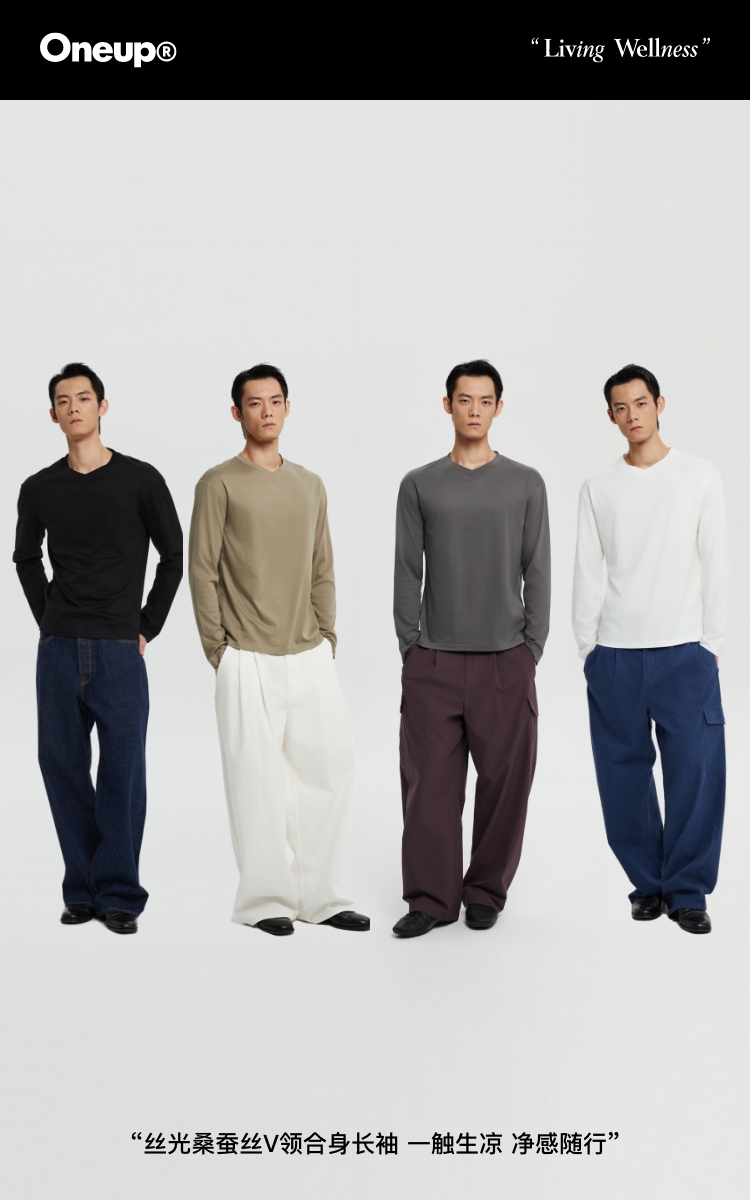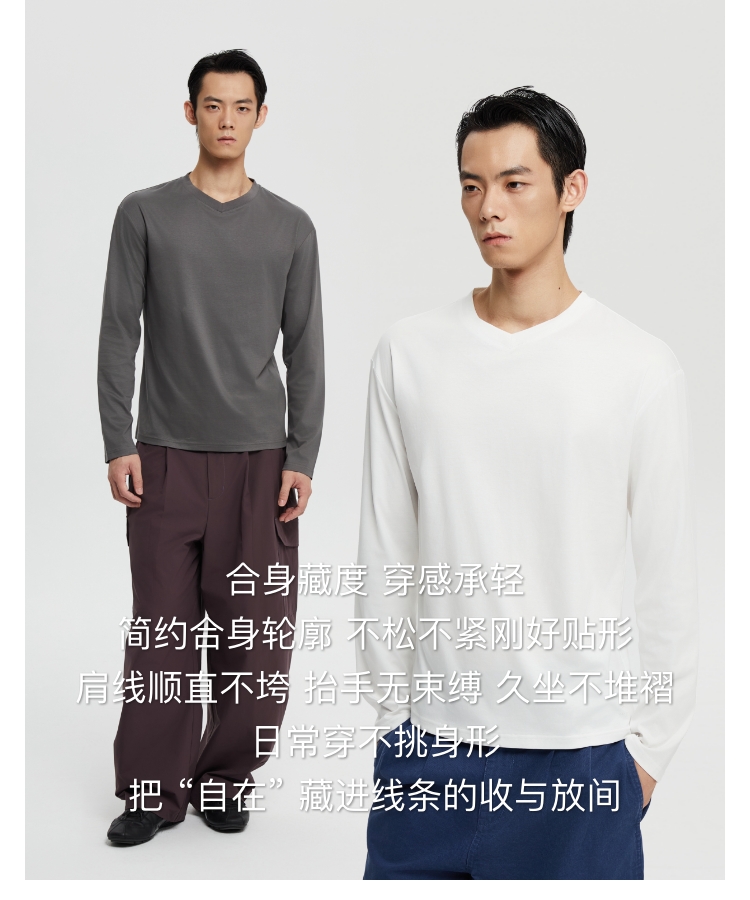 丝光桑蚕丝v领合身长袖