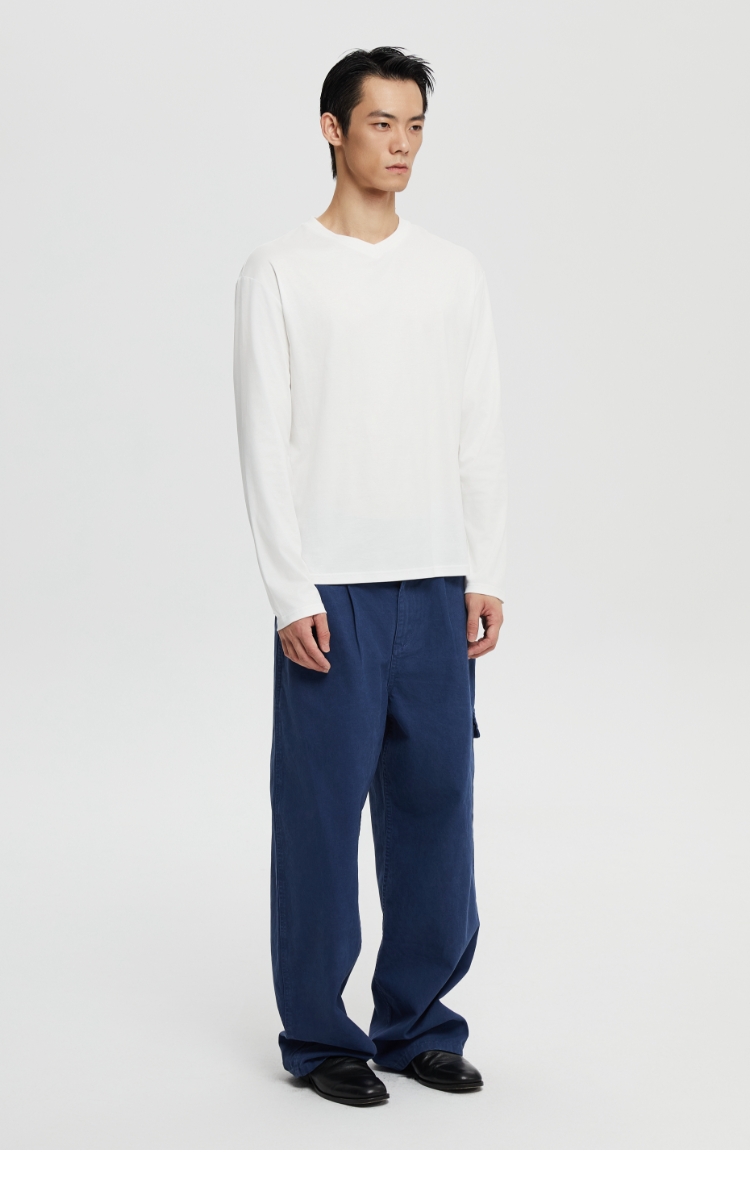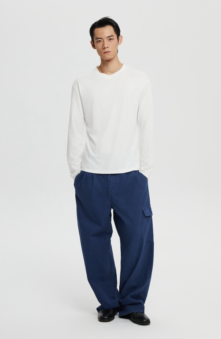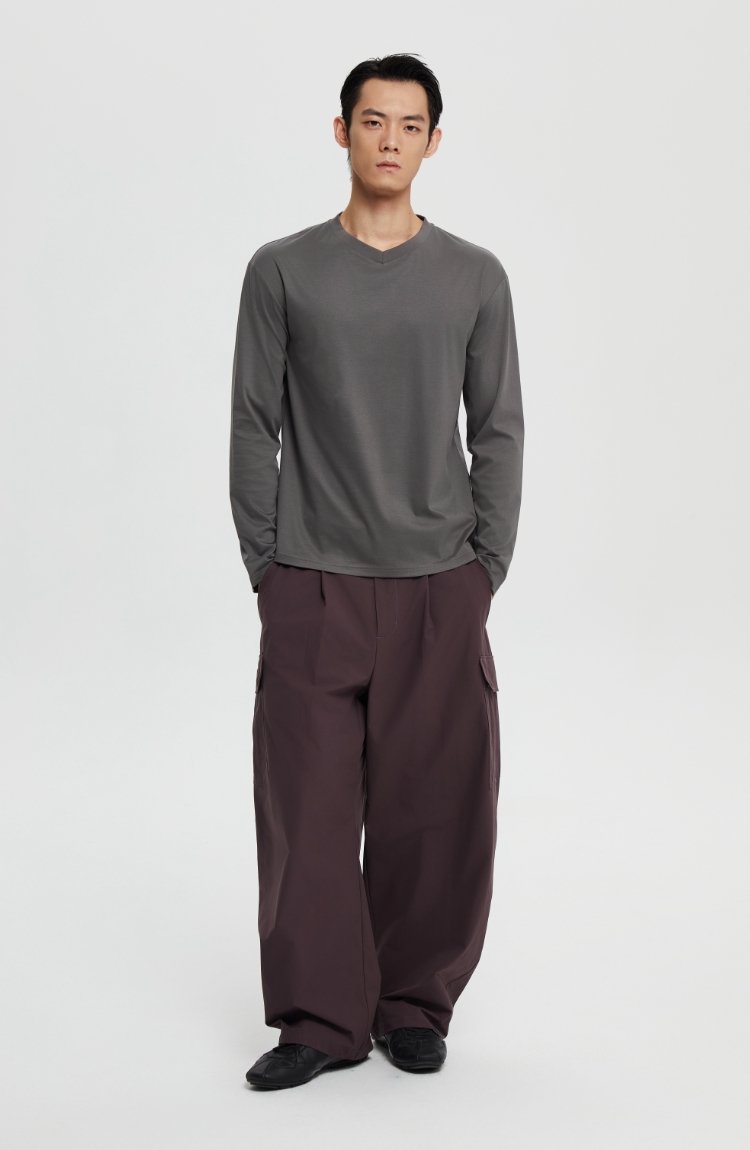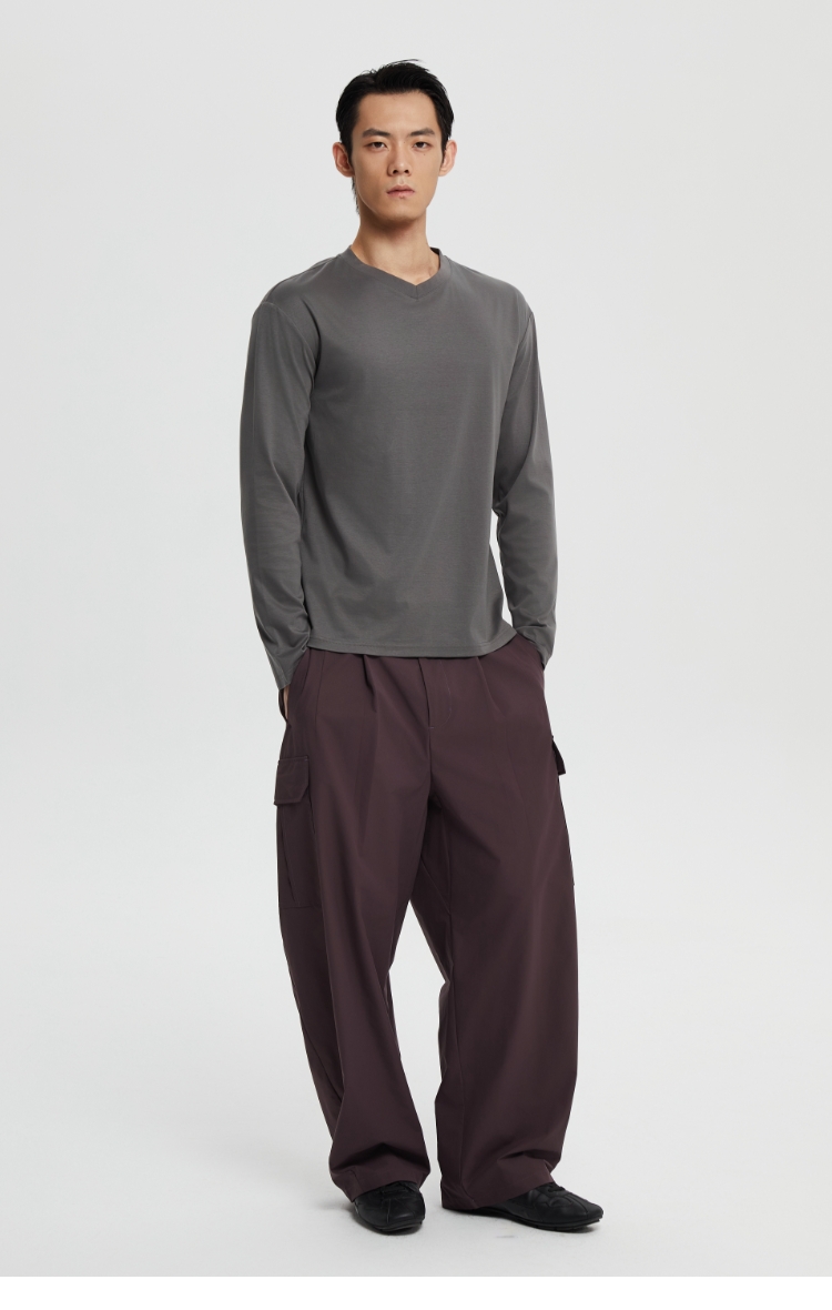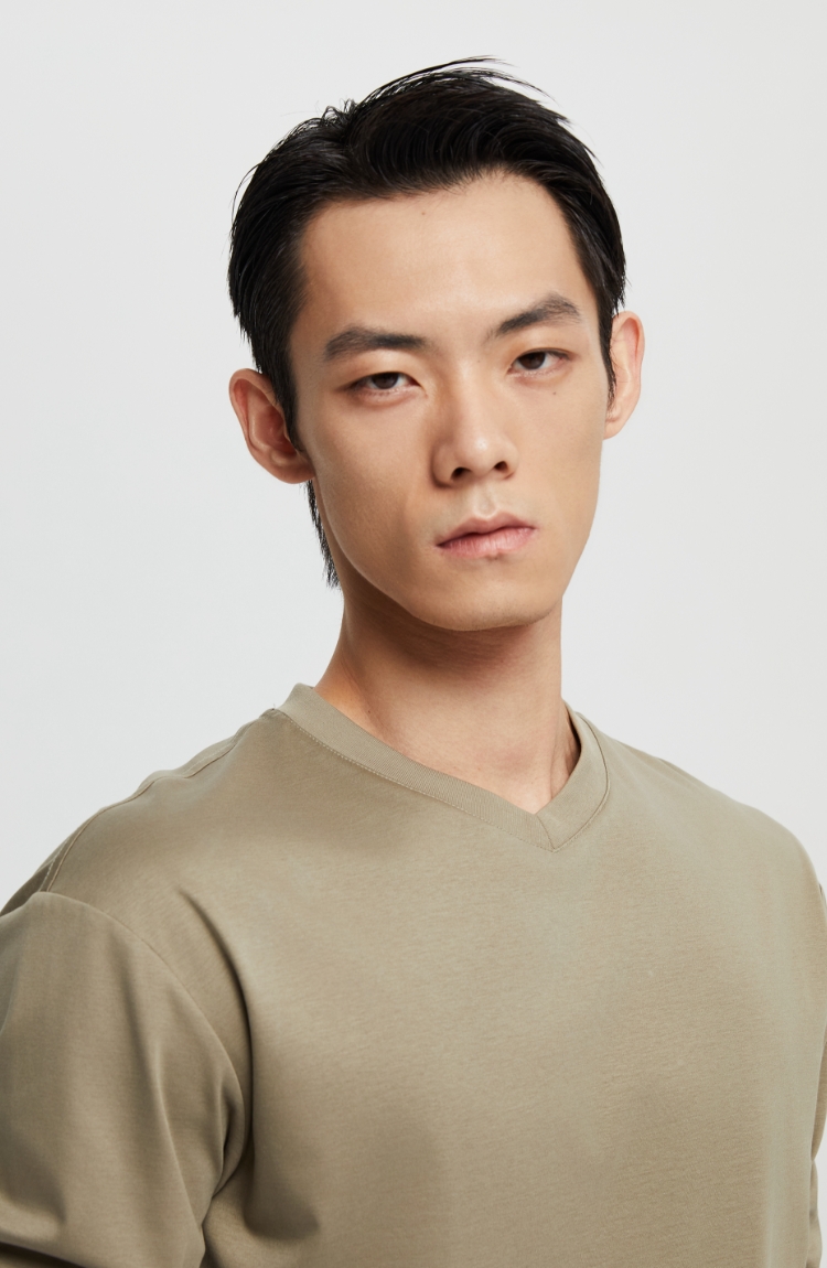 丝光桑蚕丝v领合身长袖