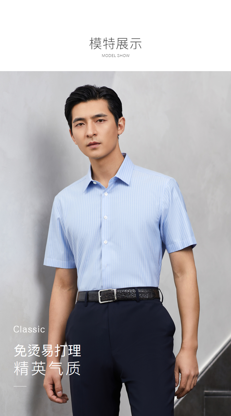雅戈尔男士短袖衬衫夏季新款商务休闲潮流衬衫YSTP180505IBA