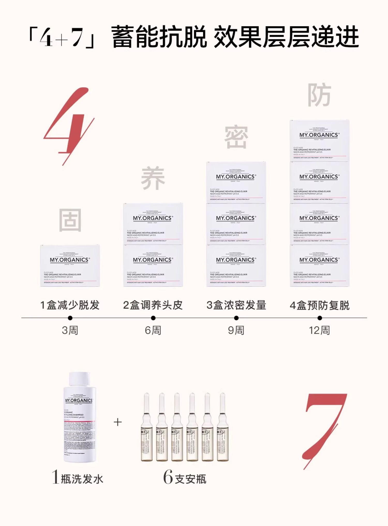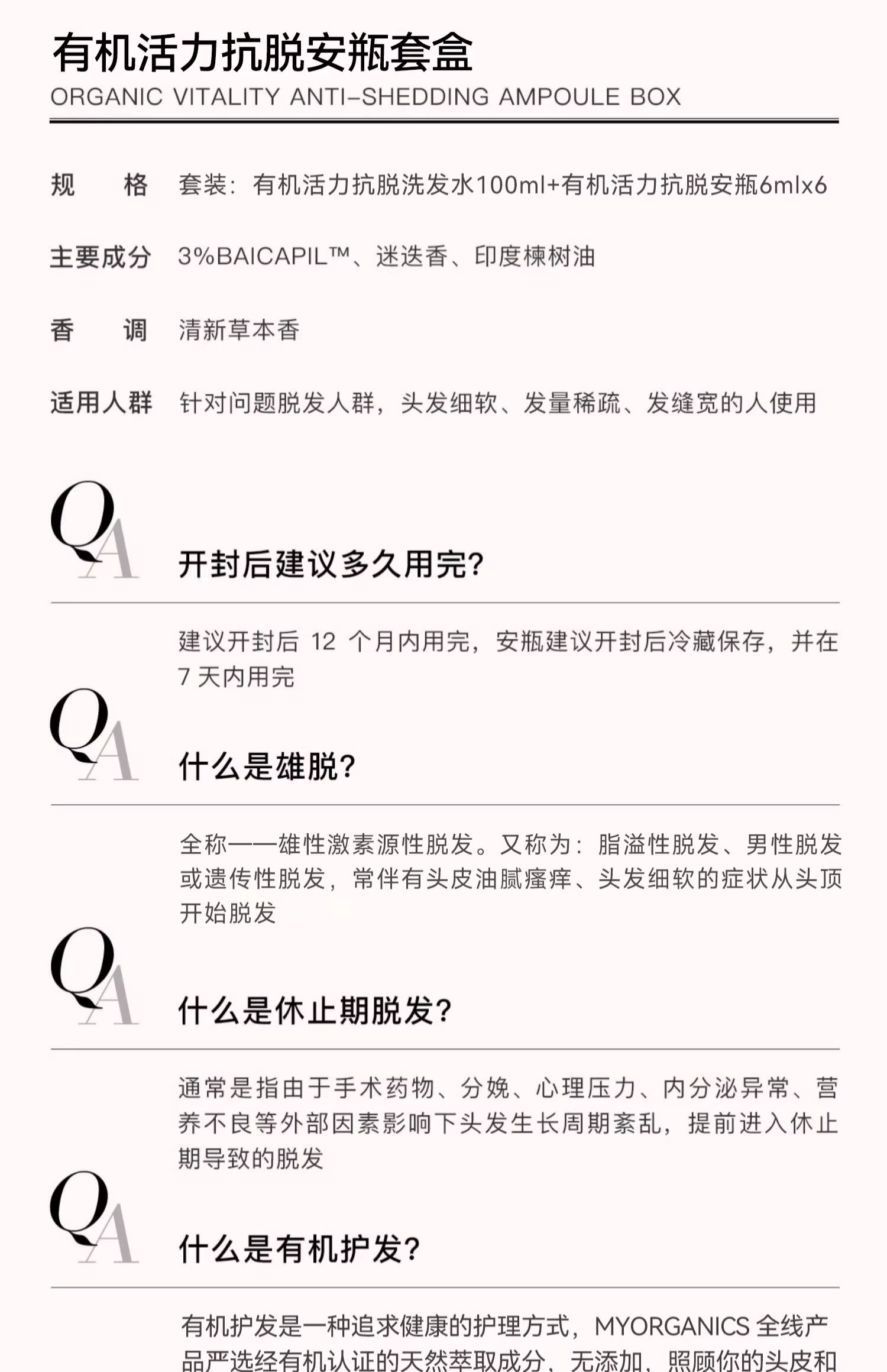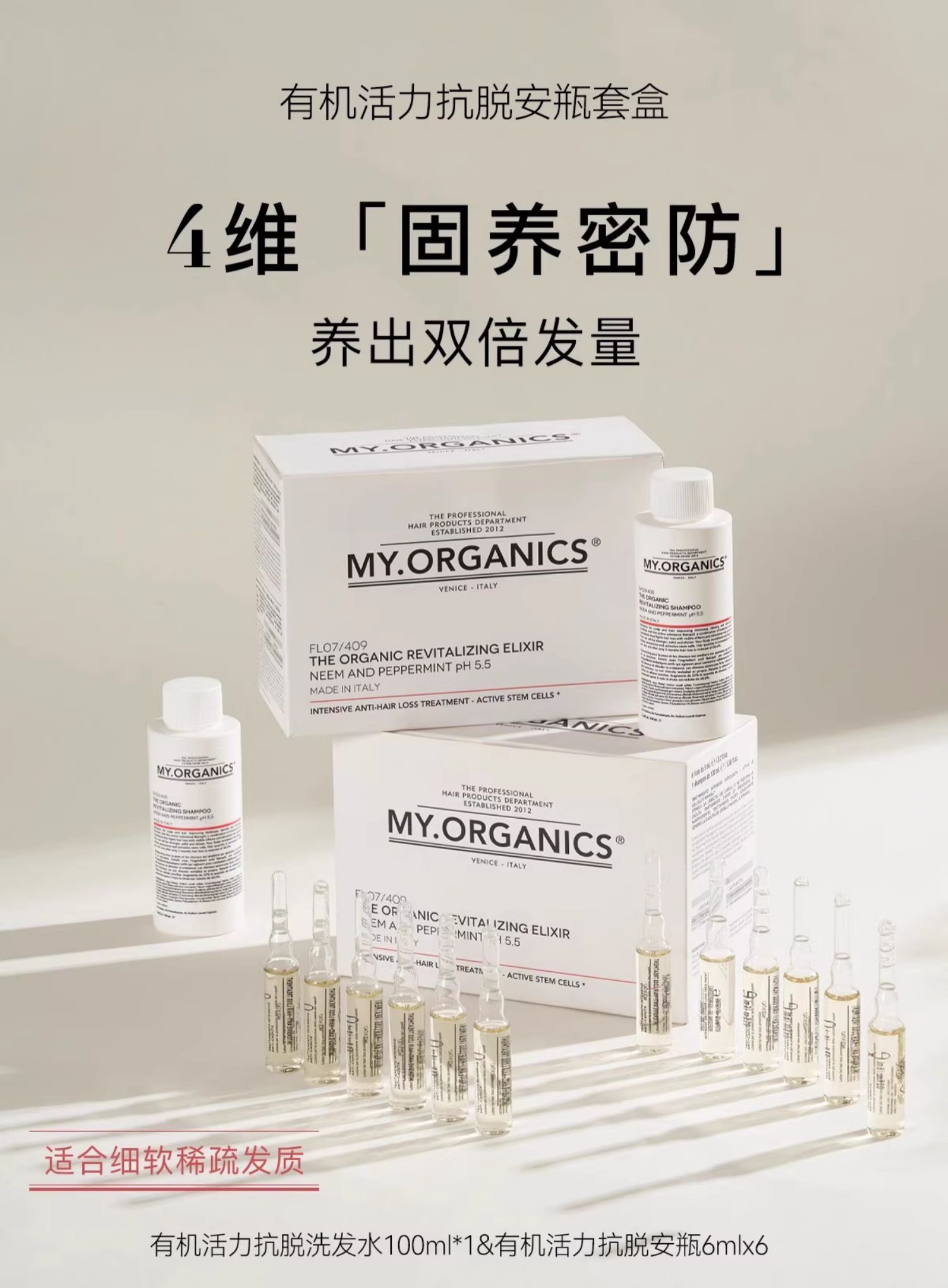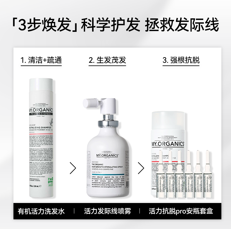 MY ORGANICS有机活力防脱安瓶6ml*6+活力洗发水100ml章小蕙推荐