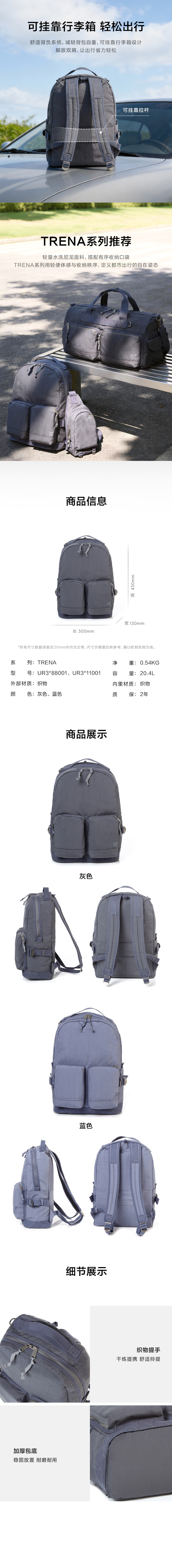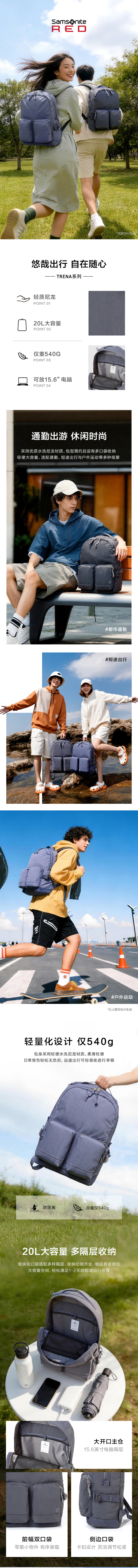 新秀丽TRENA系列休闲时尚轻量出行双肩包UR3*001