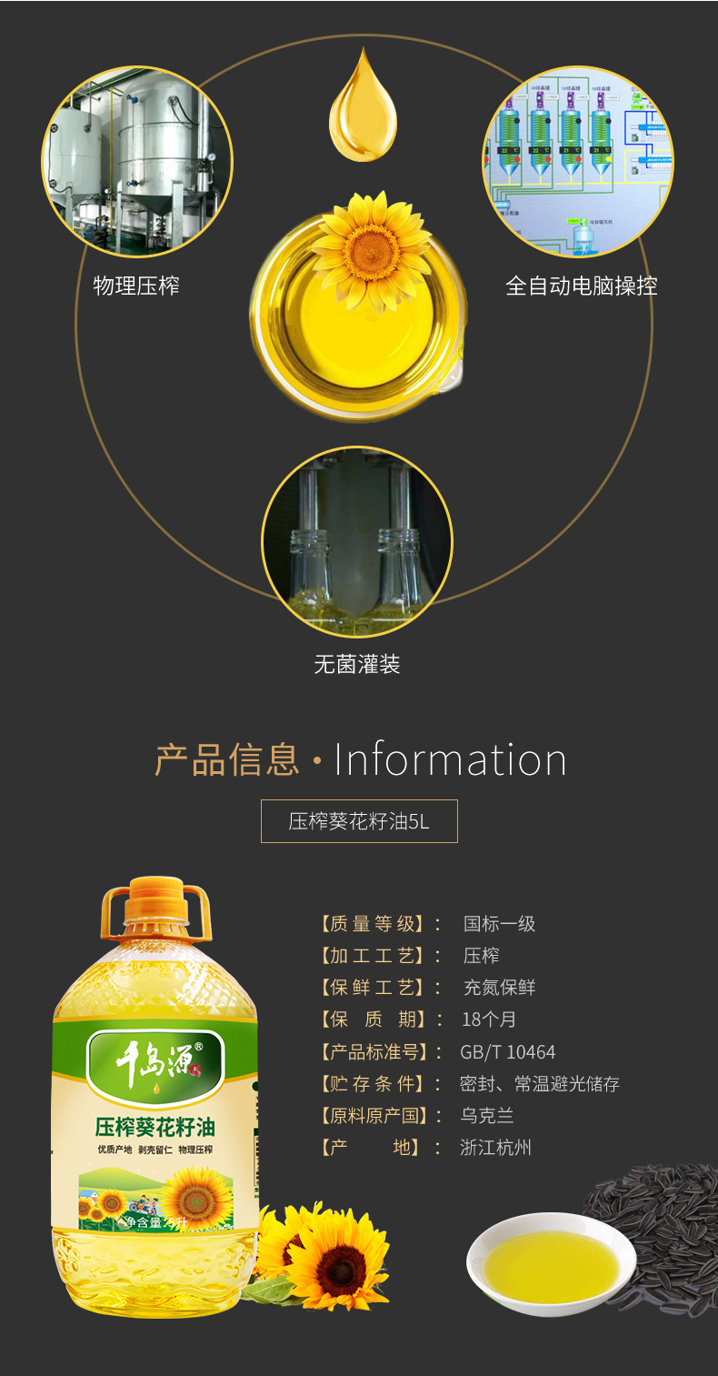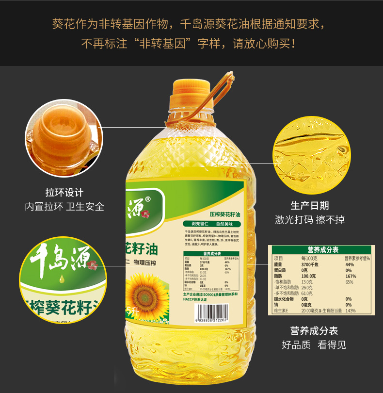 【自营】千岛源葵花籽油5L