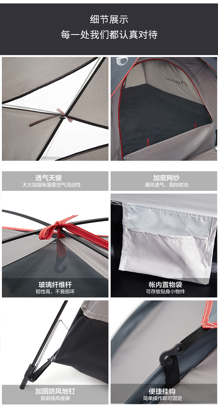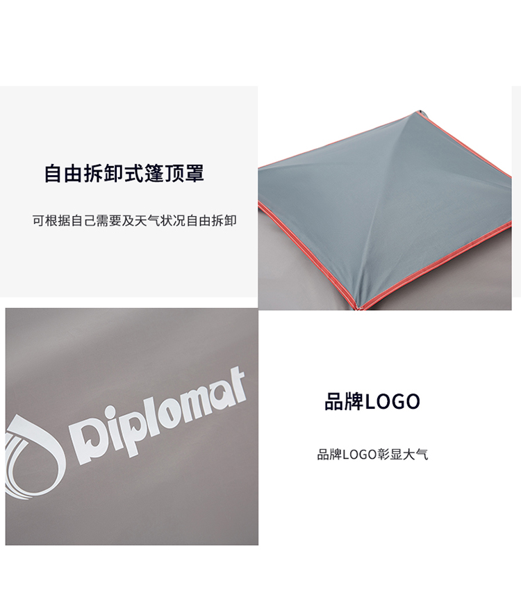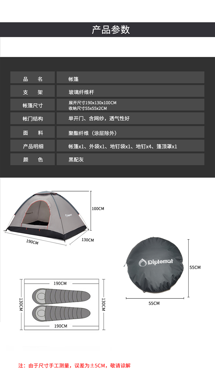 【自营】Diplomat外交官户外帐篷用品野营加厚超轻便1-2人手抛帐篷-黑配灰DFJ-105 手抛帐篷-黑配灰