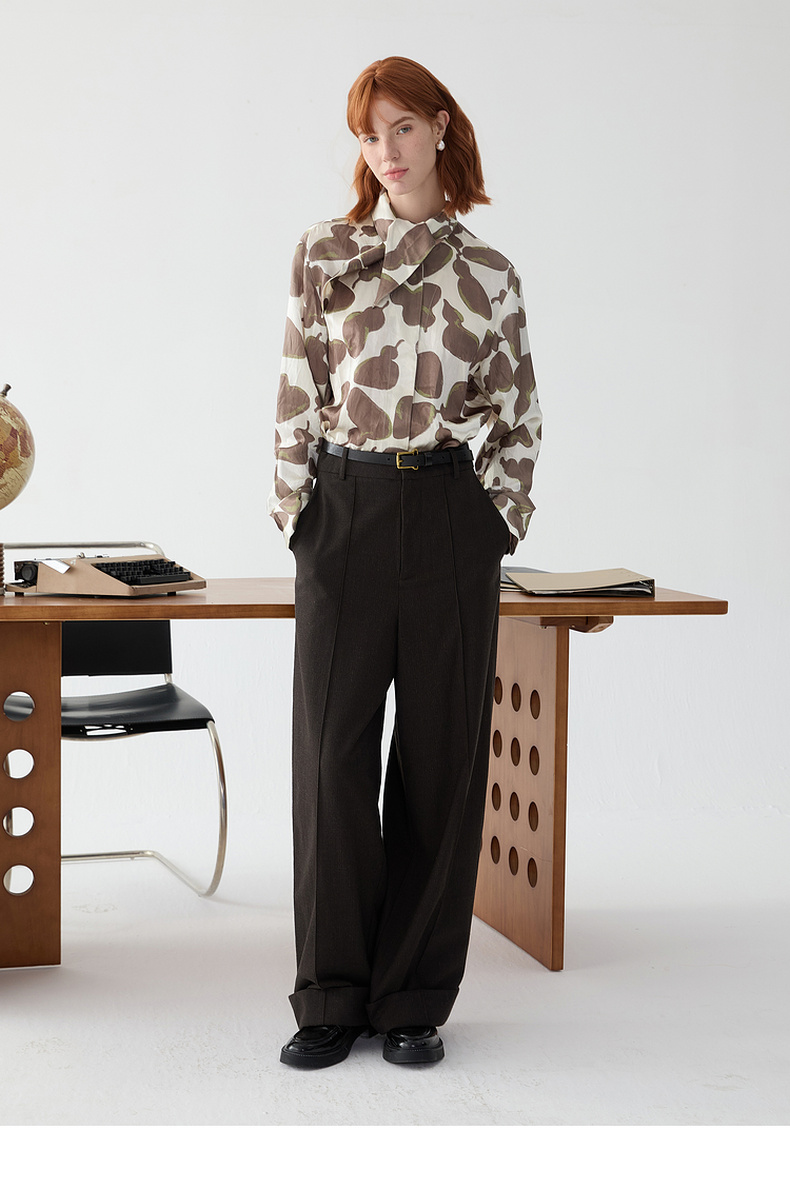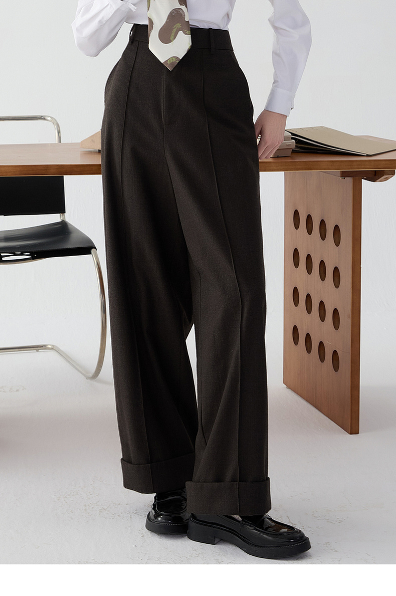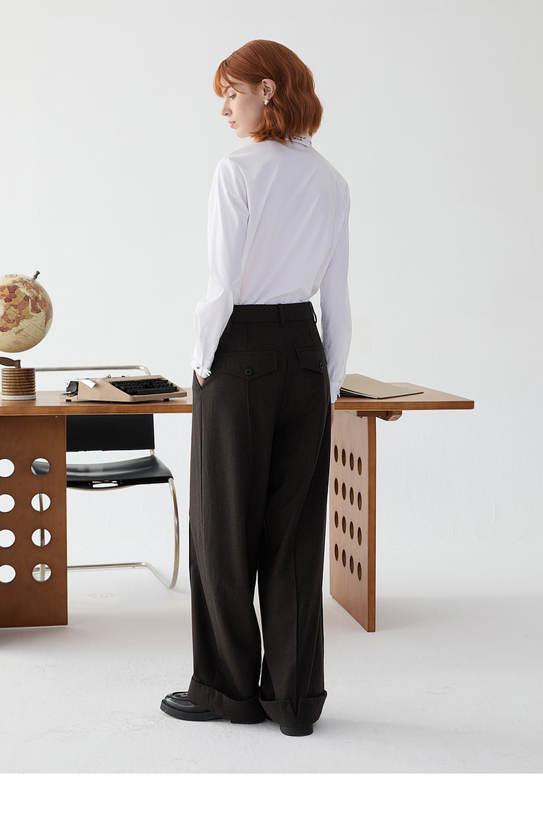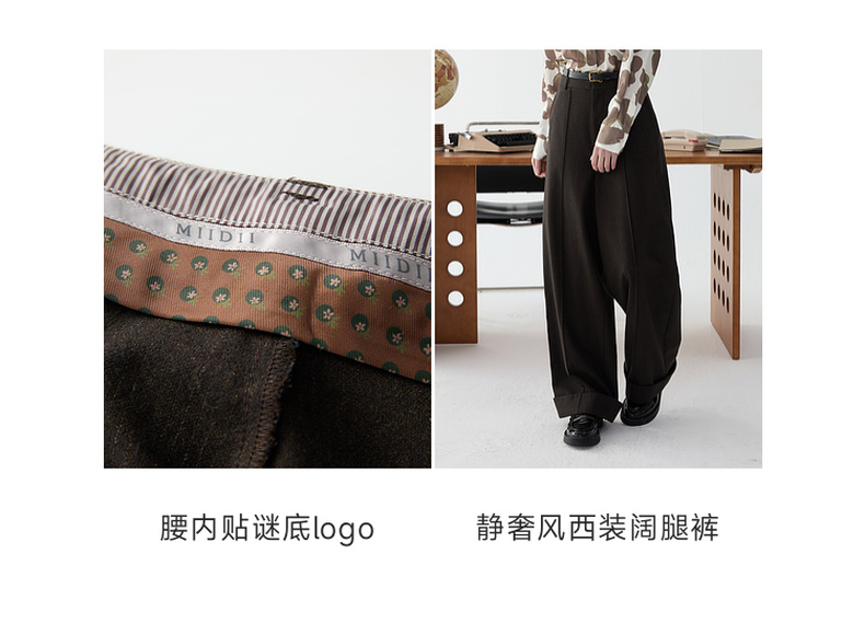 谜底阔腿裤长裤女2025春新品通勤风宽松羊毛混纺休闲裤251MK0009