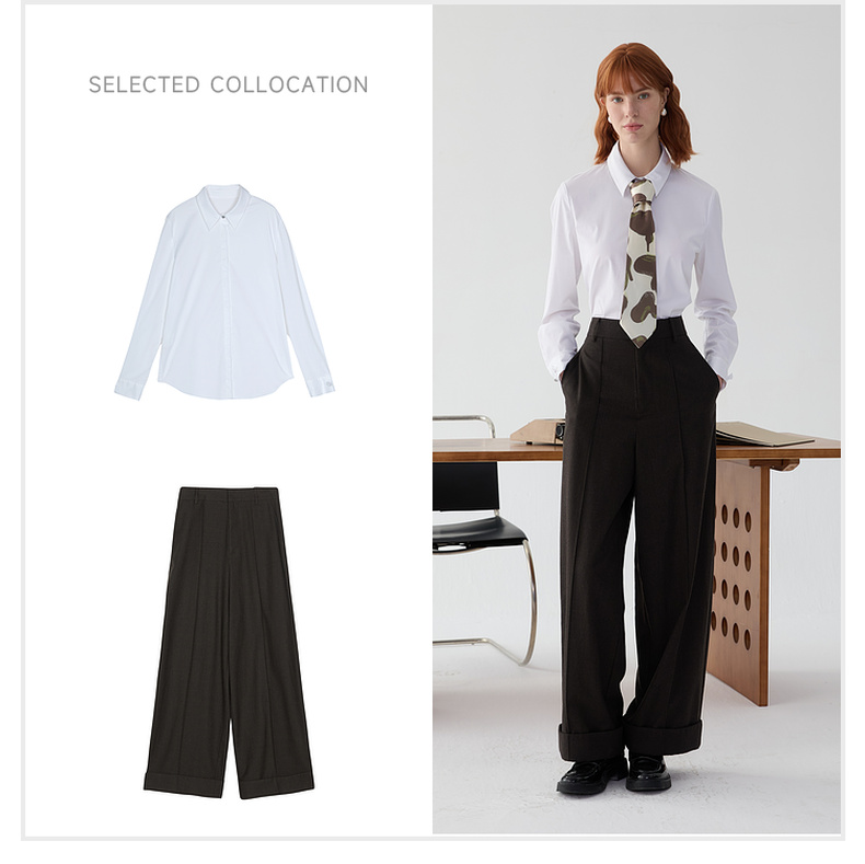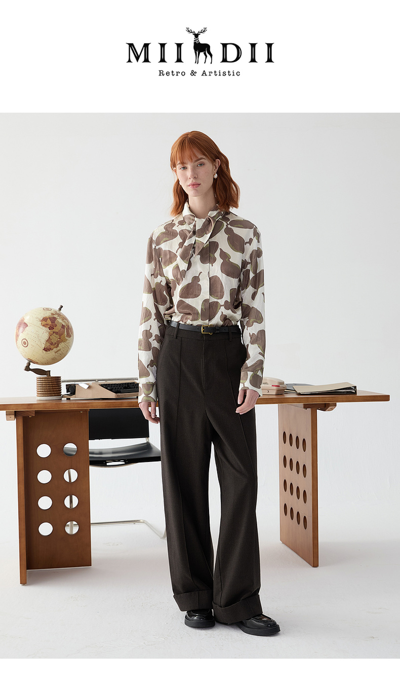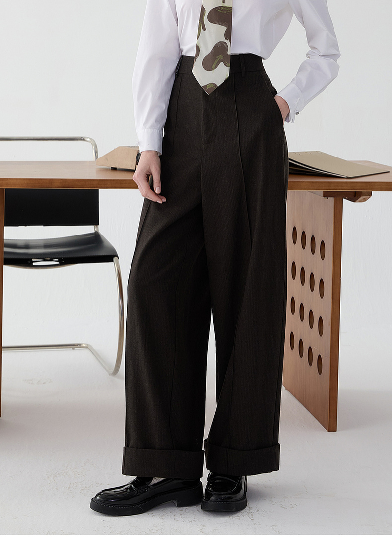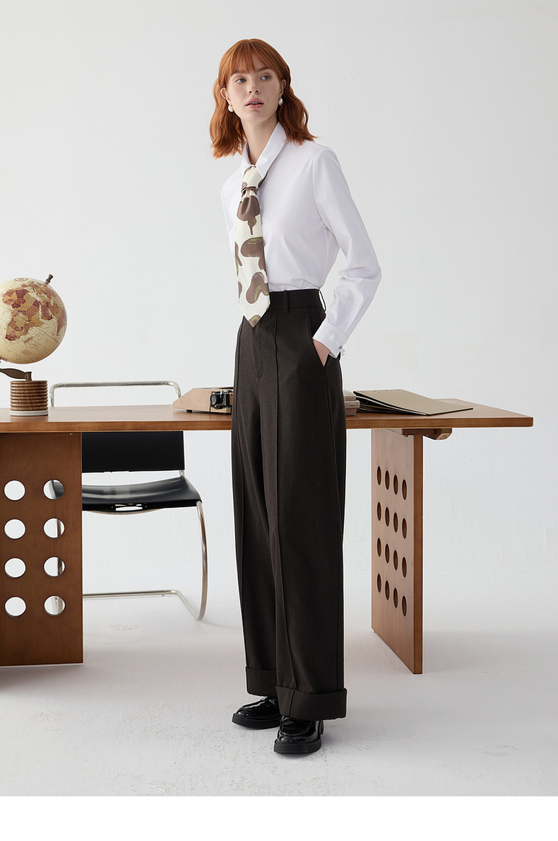 谜底阔腿裤长裤女2025春新品通勤风宽松羊毛混纺休闲裤251MK0009