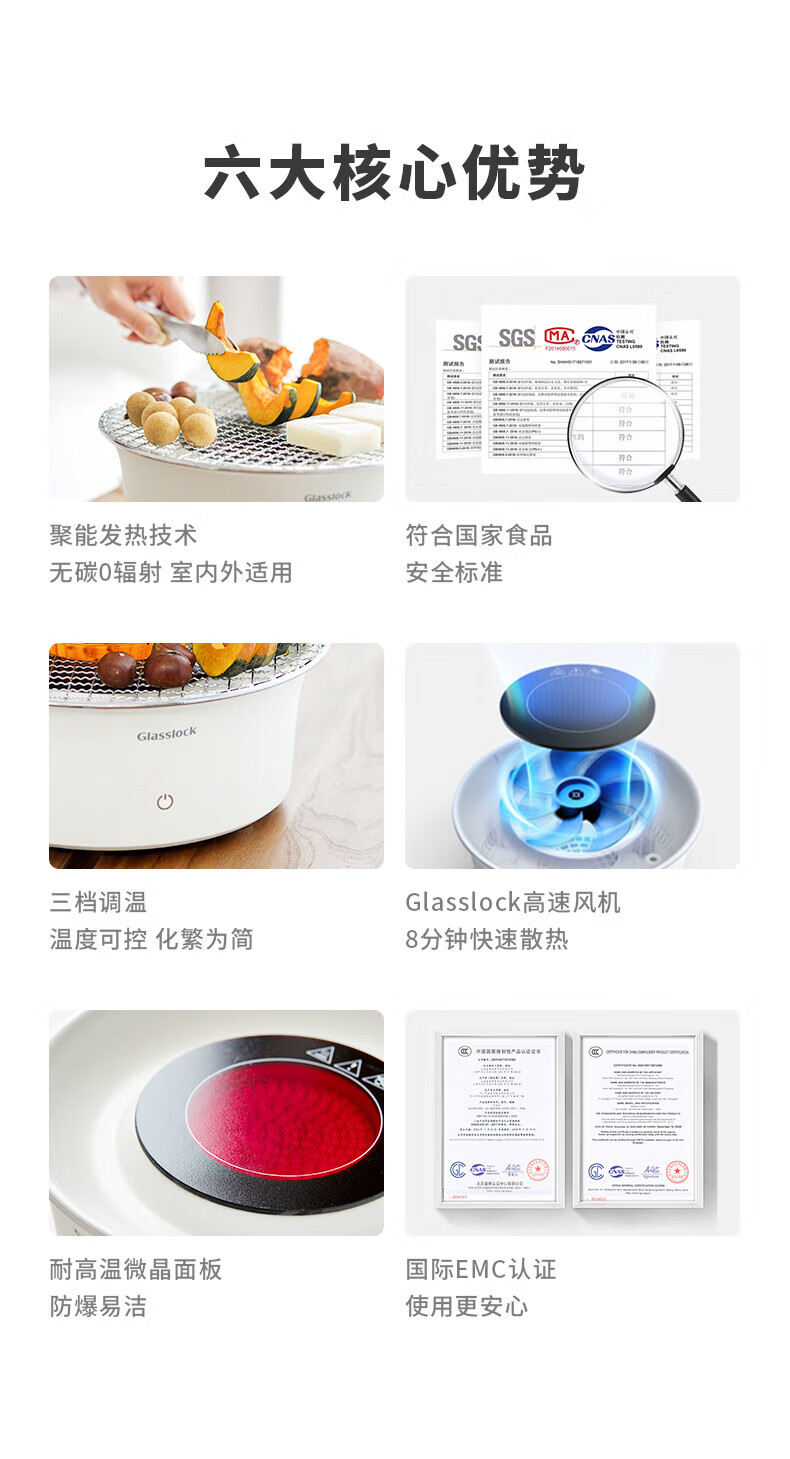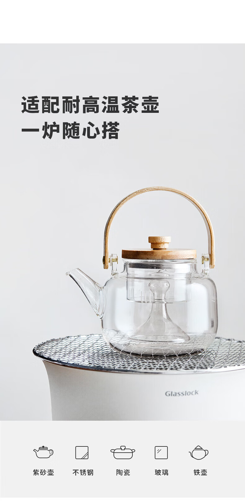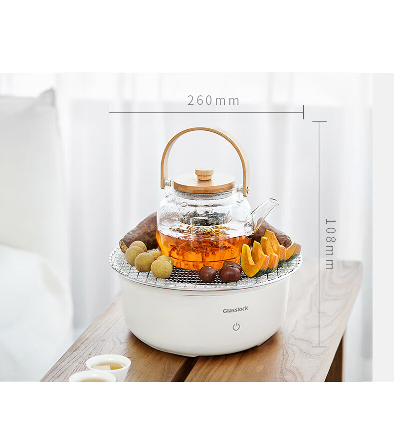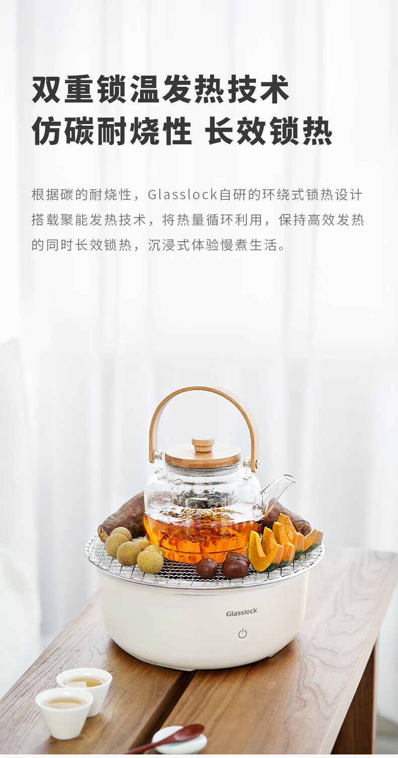 【小家电】GLASSLOCK围炉煮茶器电陶炉配玻璃茶壶+烧烤网家用小型电茶炉煮茶壶烹茶烧水煮茶养生壶泡茶电陶炉不挑器具 HF