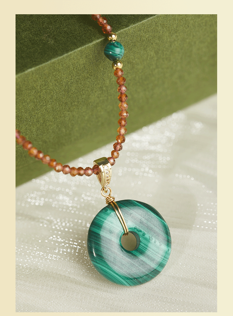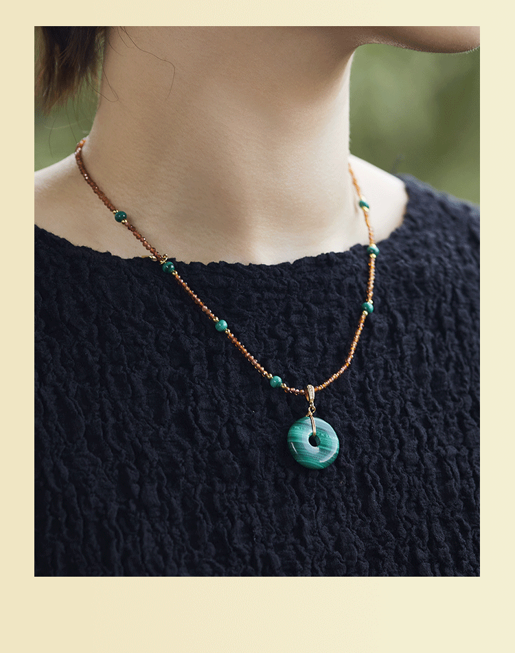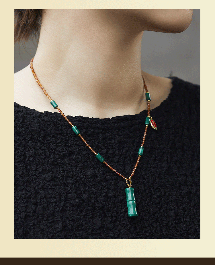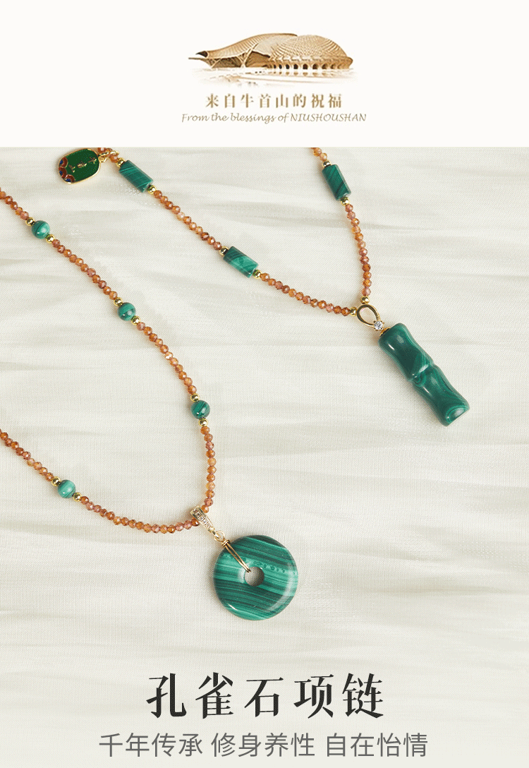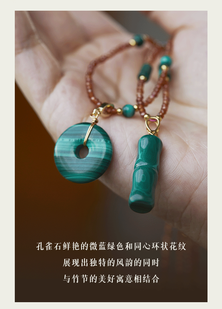 牛首山孔雀石项链竹节平安扣系列中国风优雅复古民族项链礼物饰品