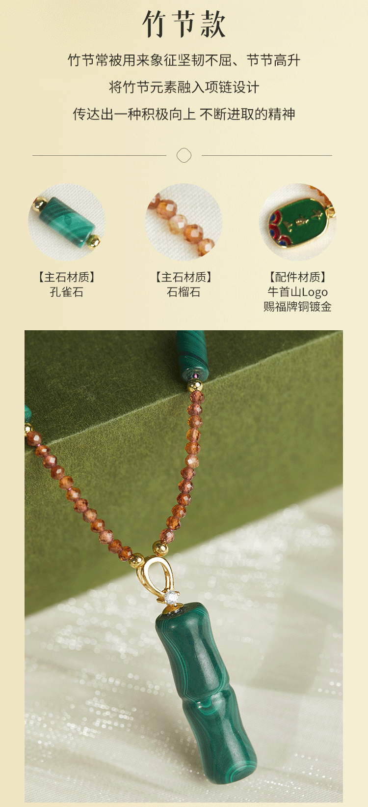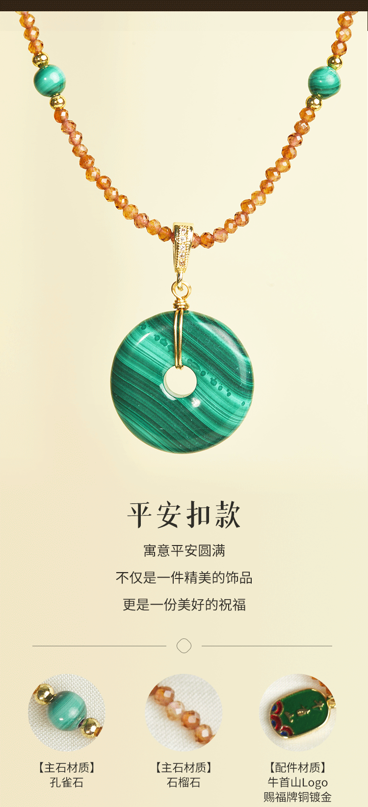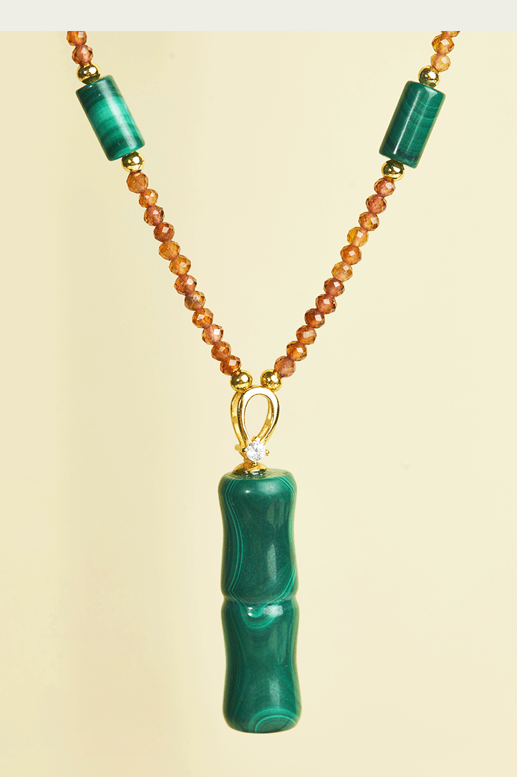 牛首山孔雀石项链竹节平安扣系列中国风优雅复古民族项链礼物饰品