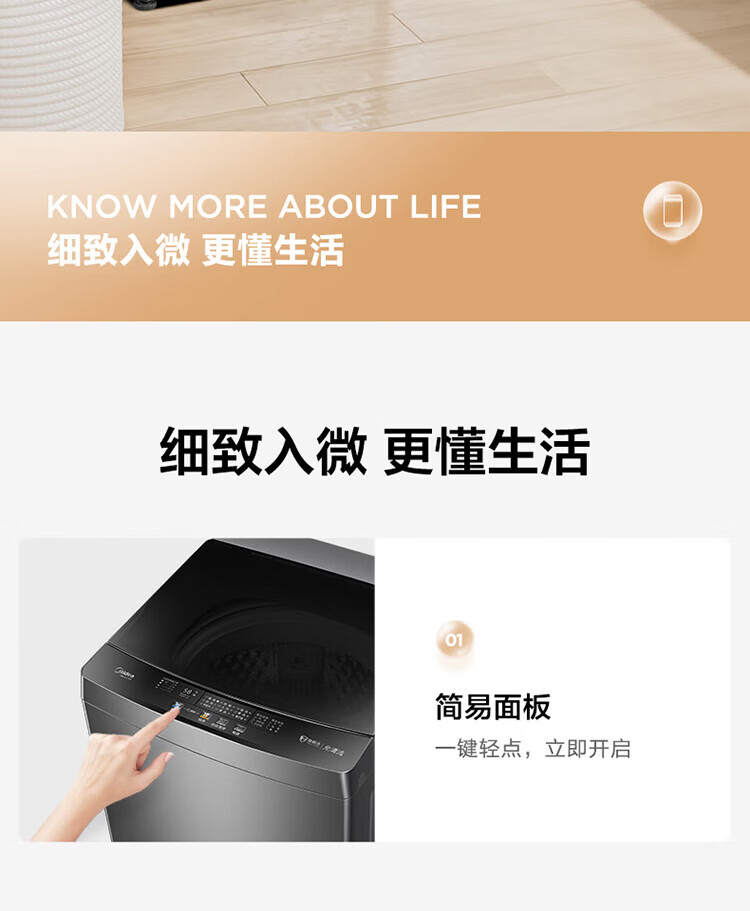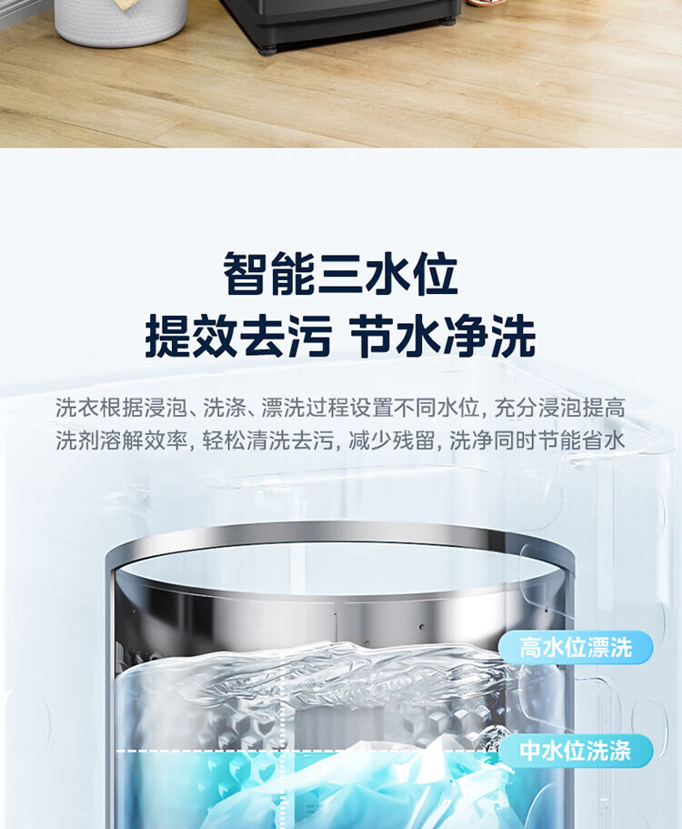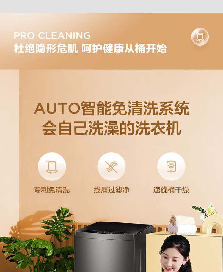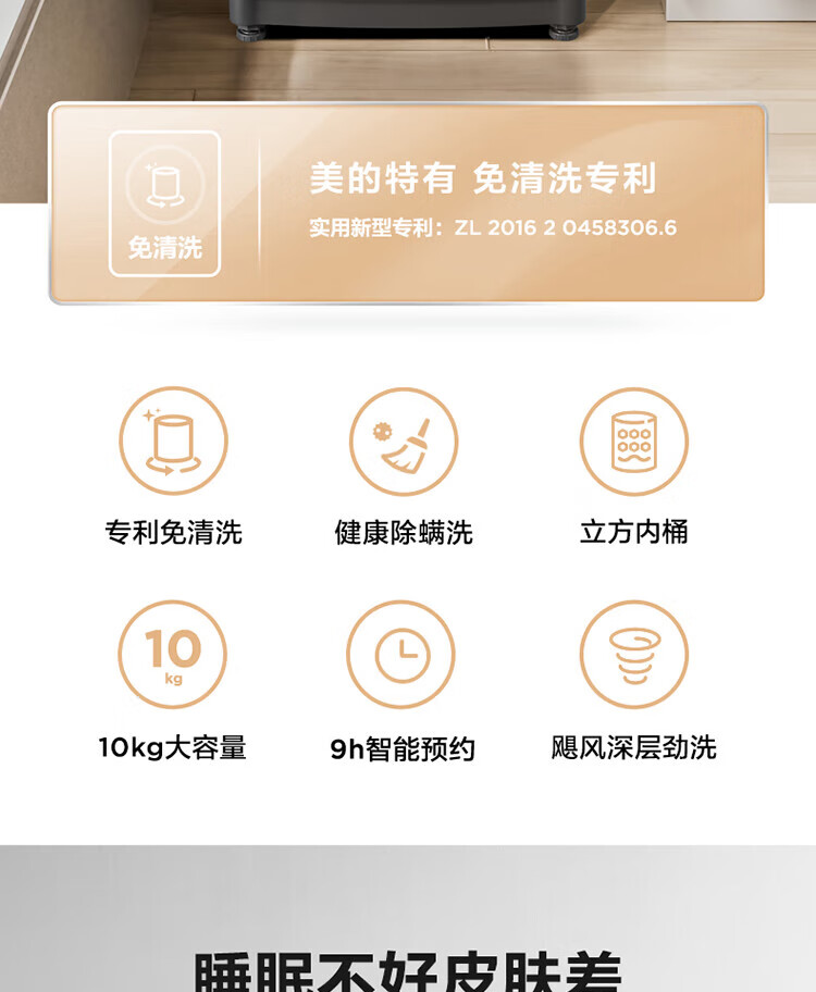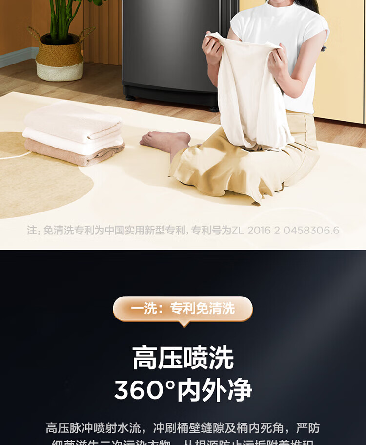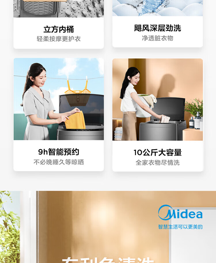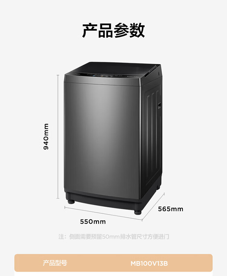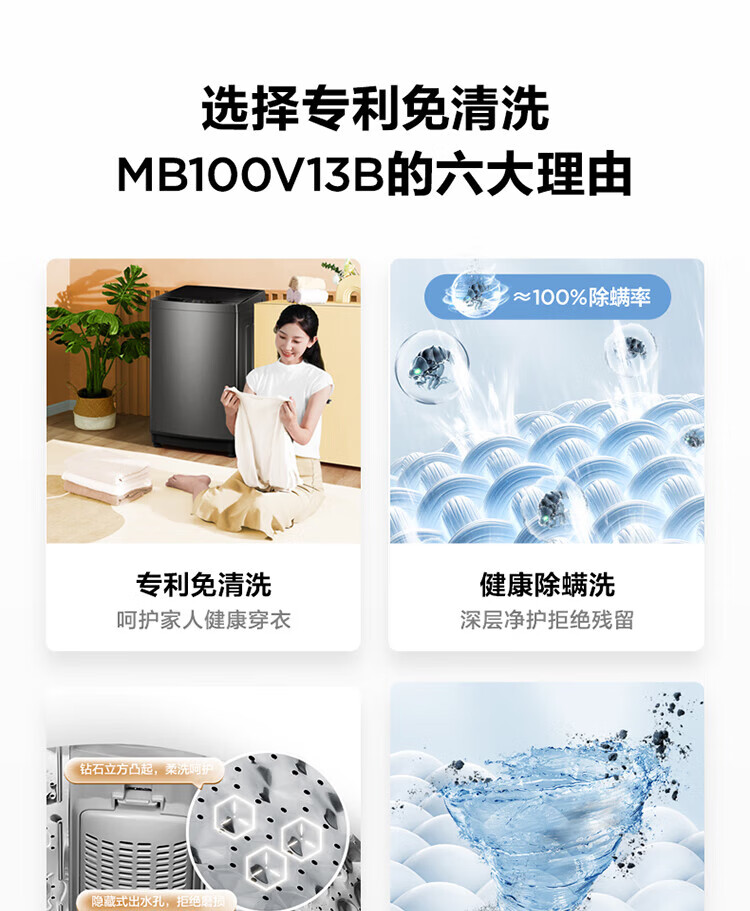 Midea美的10公斤波轮全自动洗衣机 健康除螨 专利免清洗 MB100V13B 随心洗系列 MB100V13B