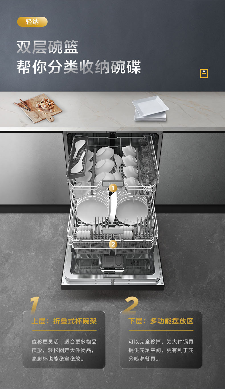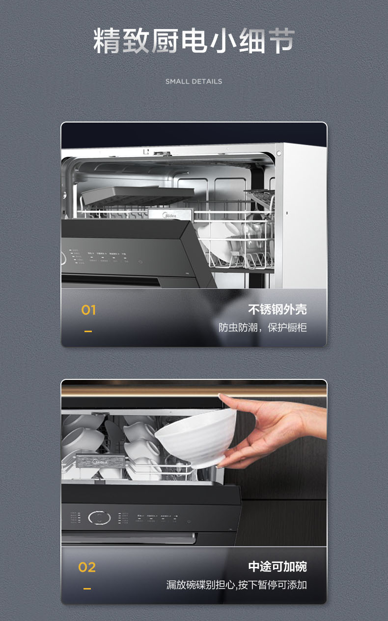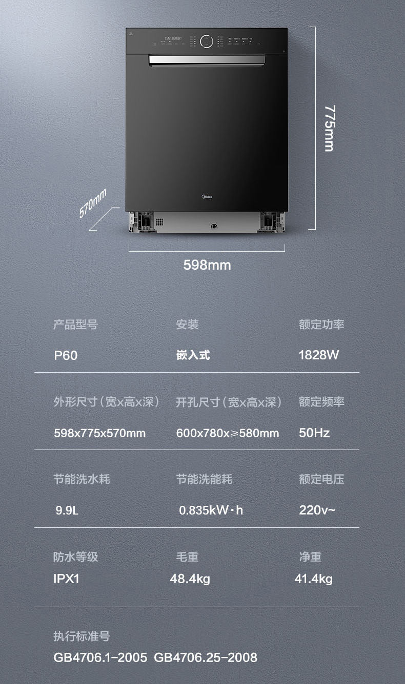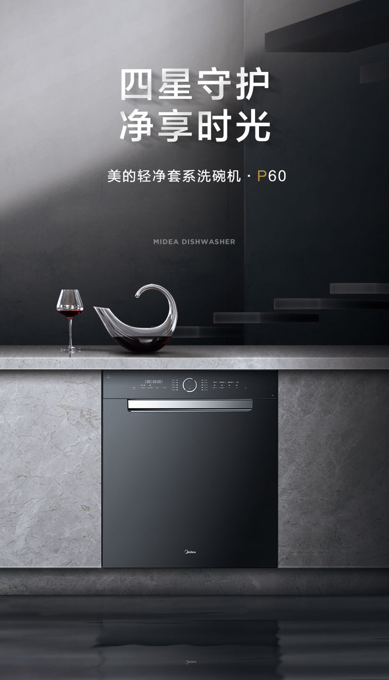 美的(Midea)洗碗机P60嵌入式15套家用商场同款大容量 五臂飓风洗 双驱变频 智能家电 全自动刷碗机P60