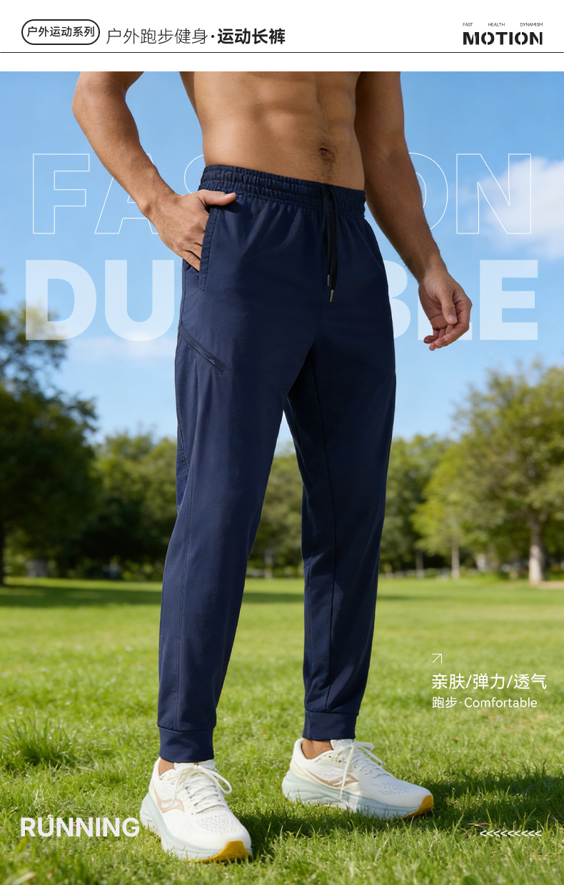 2026春季新款跑步长裤腿部拉链口袋设计两侧斜插口袋腰部拉绳
