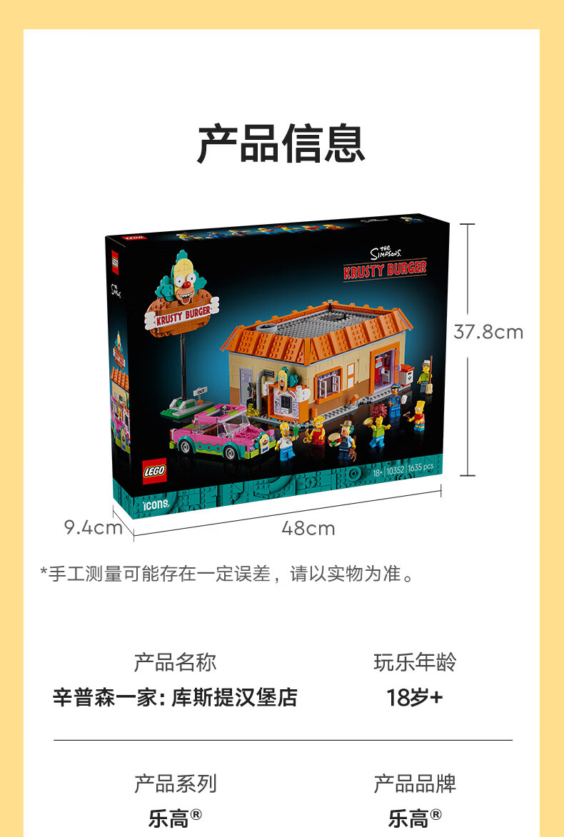 乐高积木 L10352 得宝系列辛普森一家:库斯提汉堡店