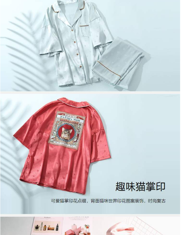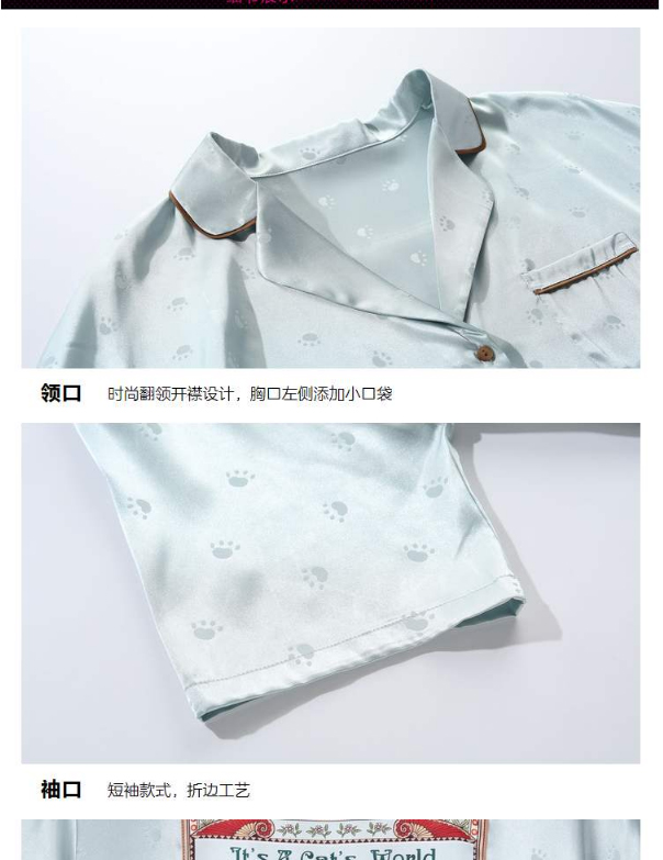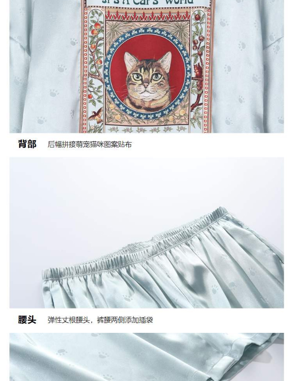 芬狄诗春夏猫印花冰丝睡衣女舒适家居服套装FL00182