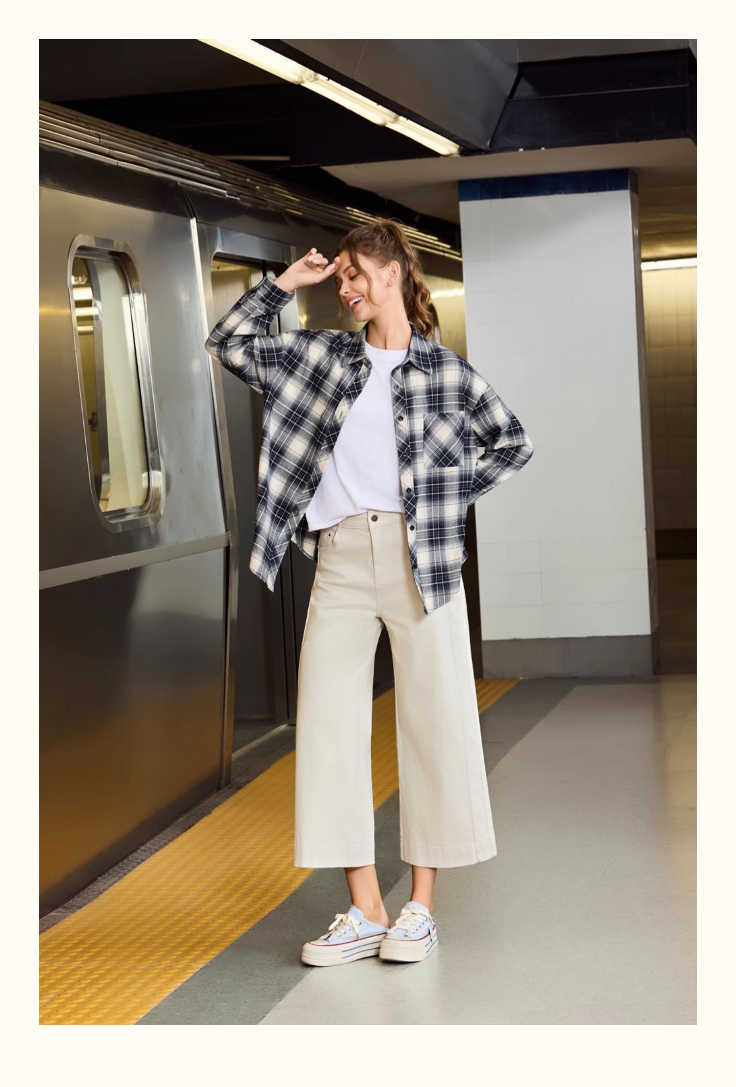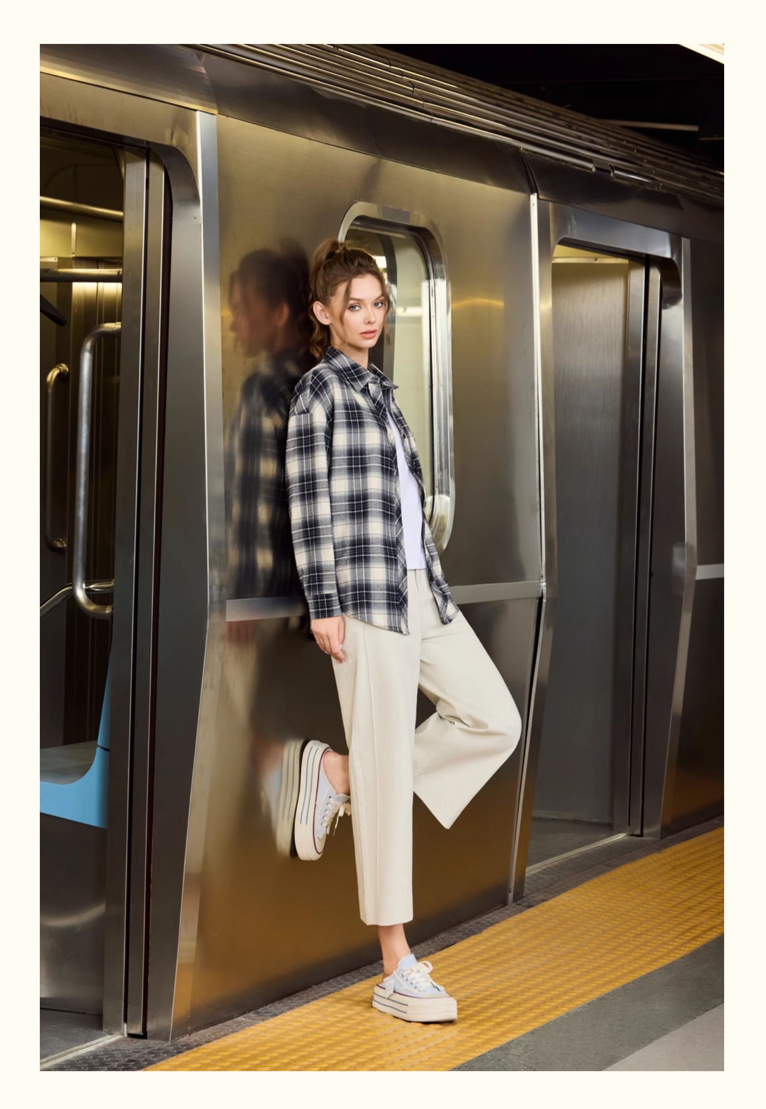 半身缘女裤 秋季质感百搭通勤宽松舒适显瘦九分裤253102U30320014