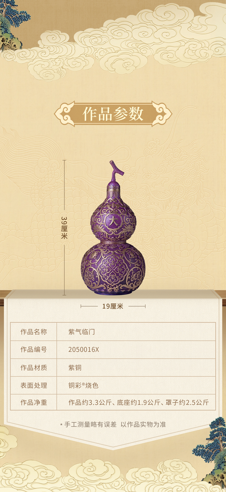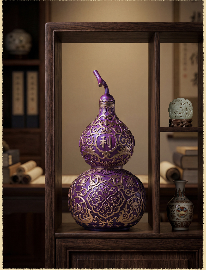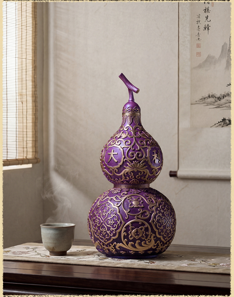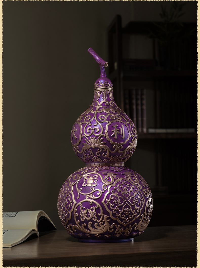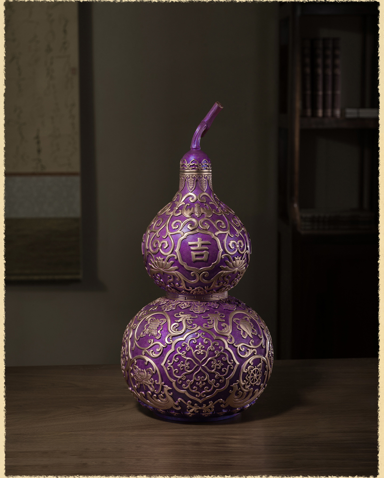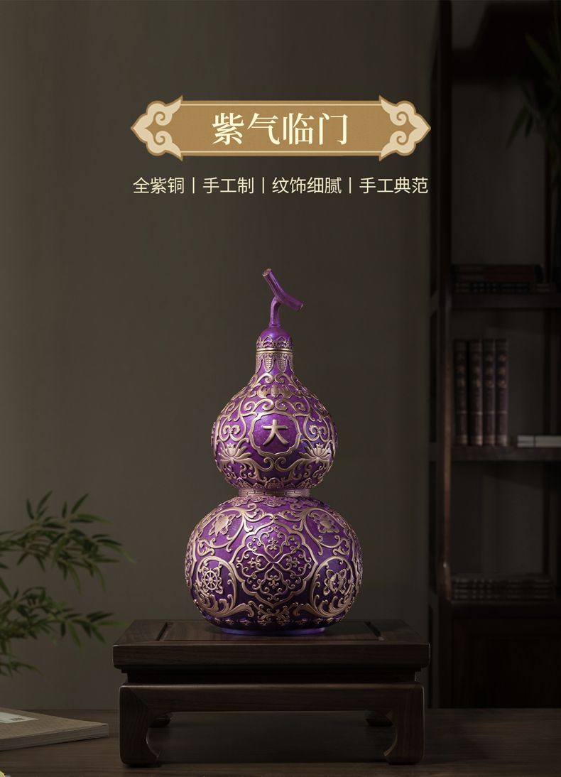 铜师傅《紫气临门》紫气东来招财葫芦紫铜摆件中式办公室装饰礼品