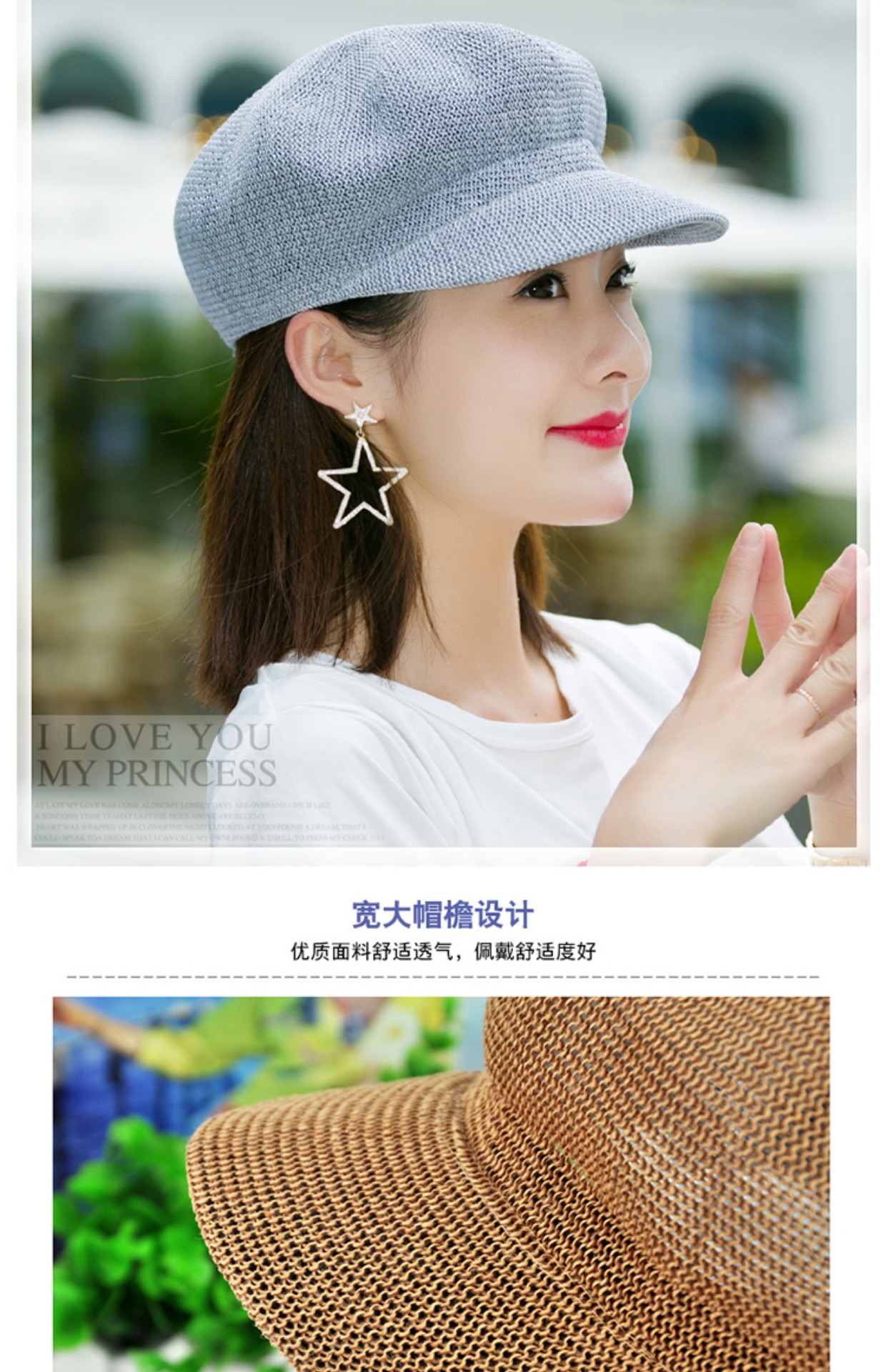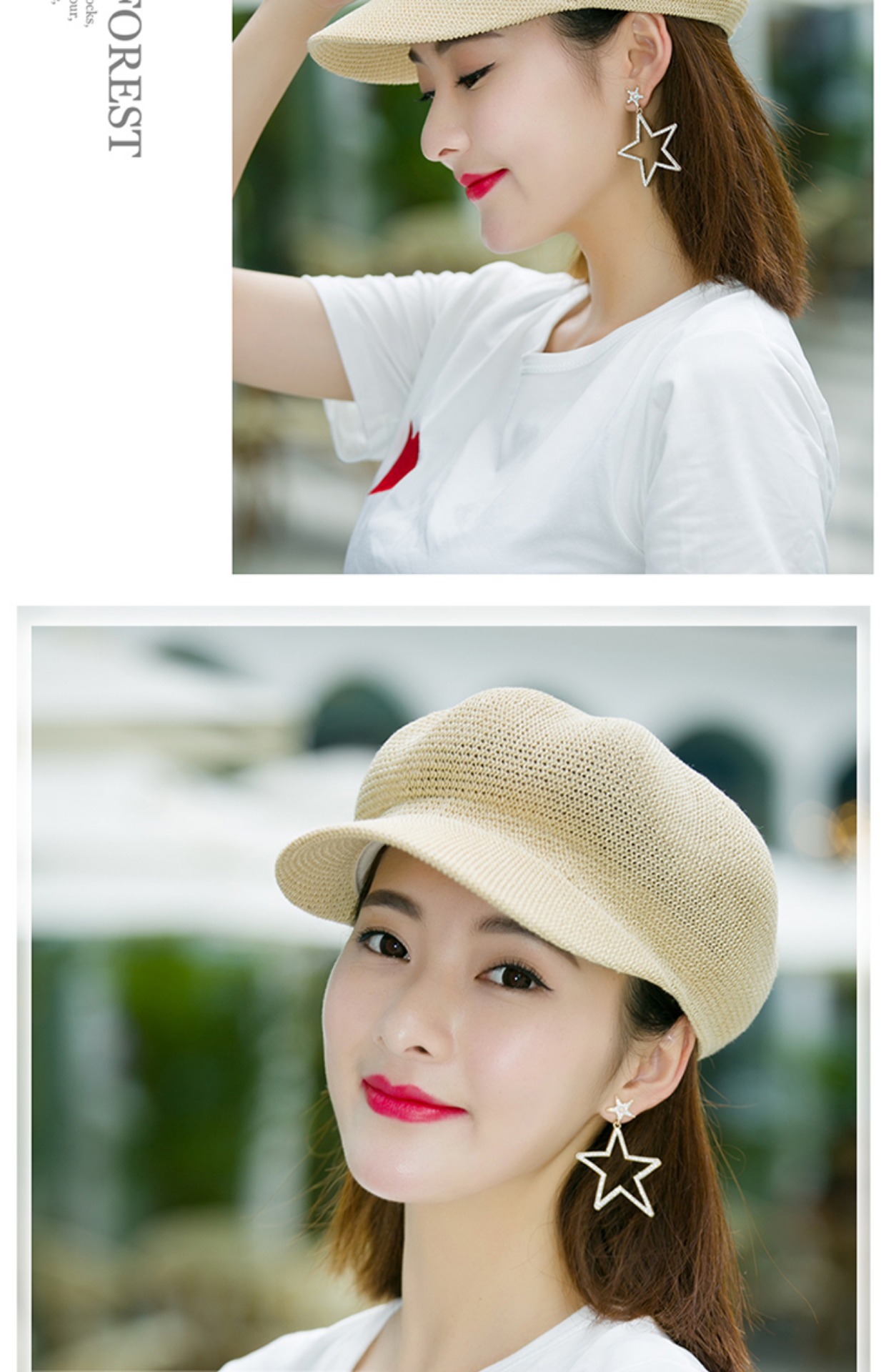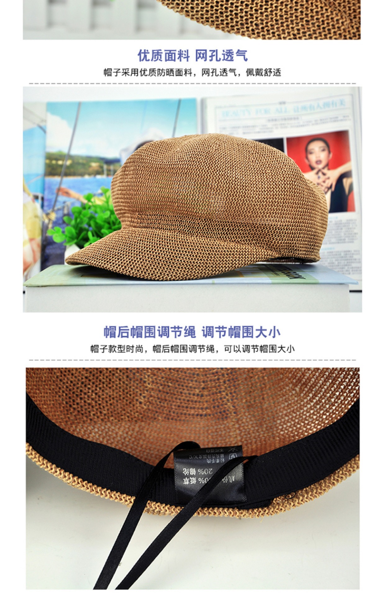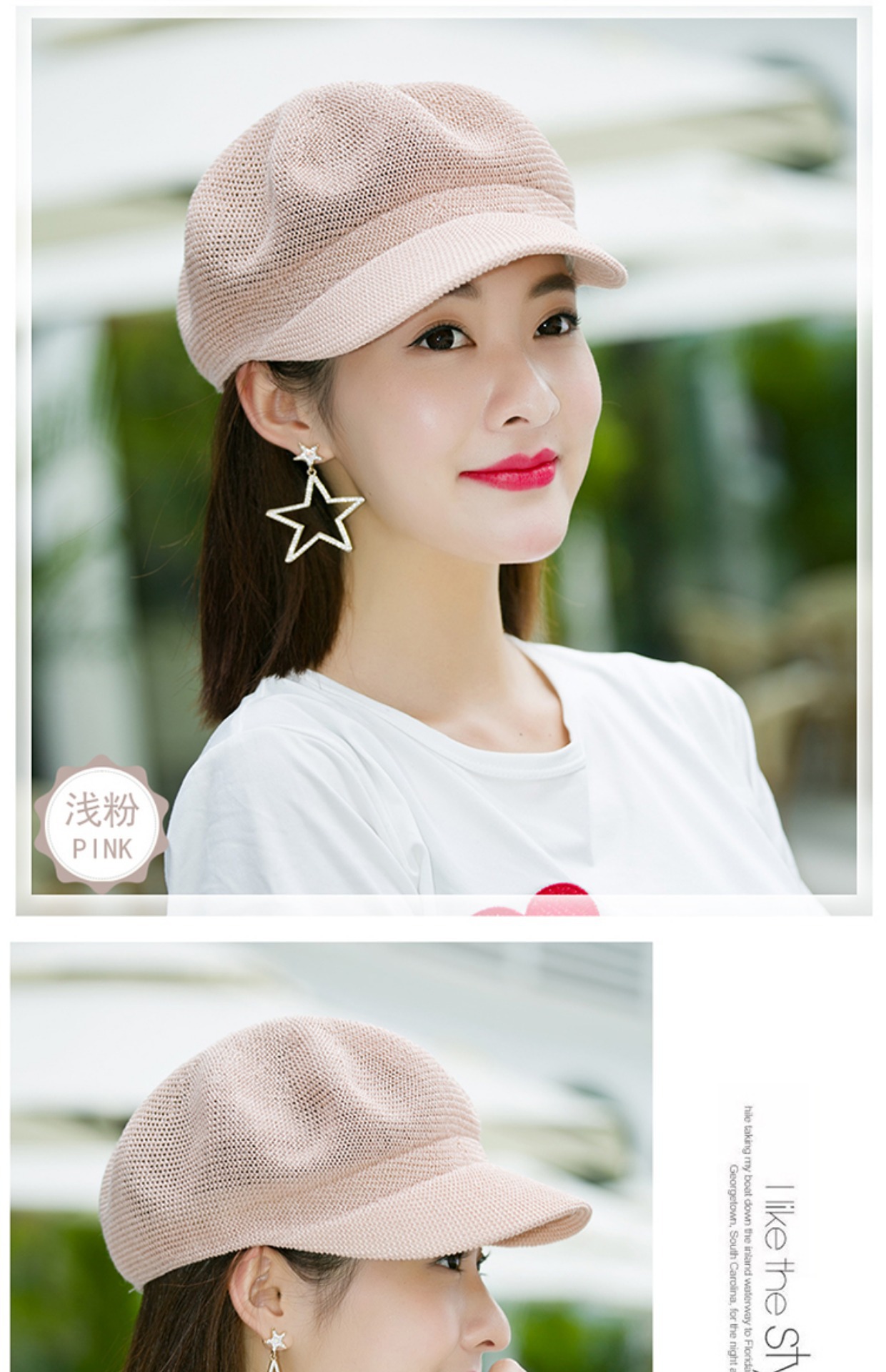 贝雷帽子女春季夏天韩版百搭出游遮阳帽防晒鸭舌八角帽草帽网帽潮