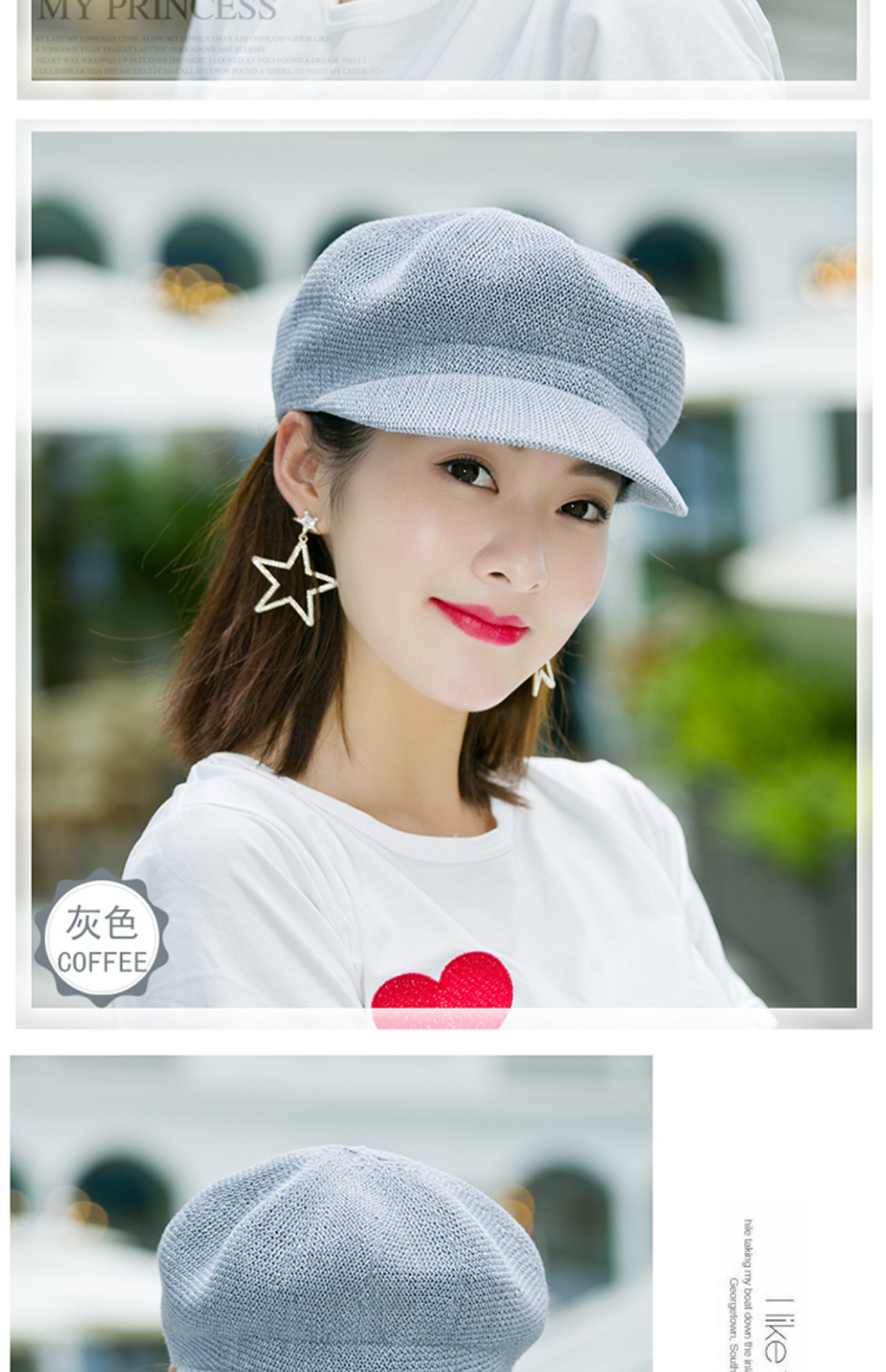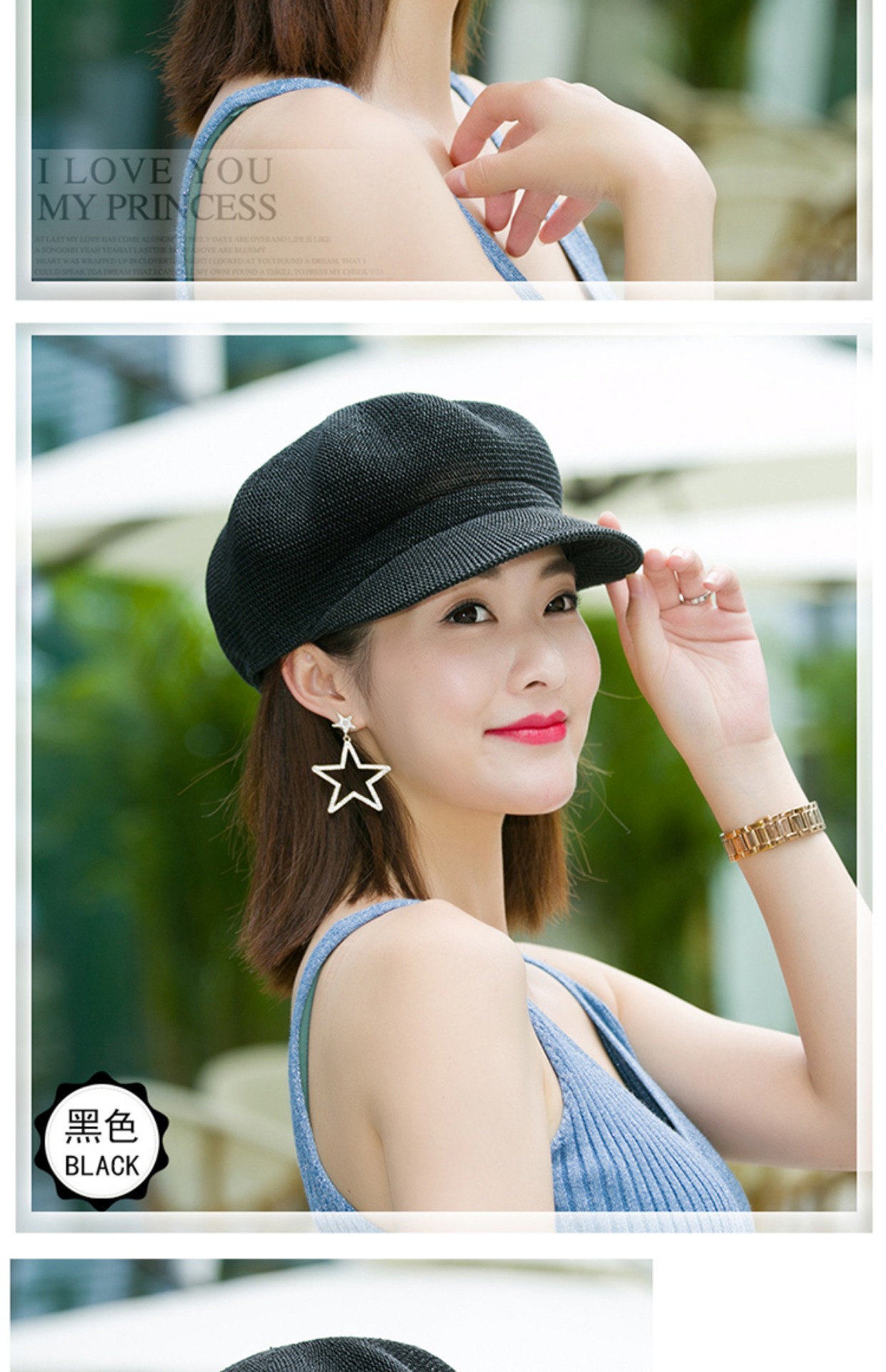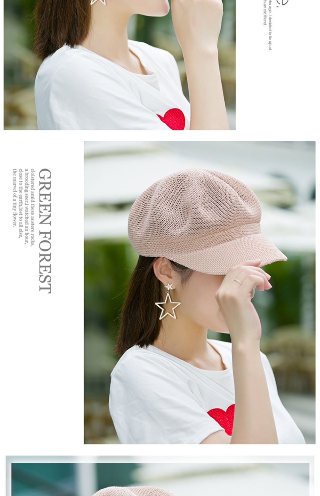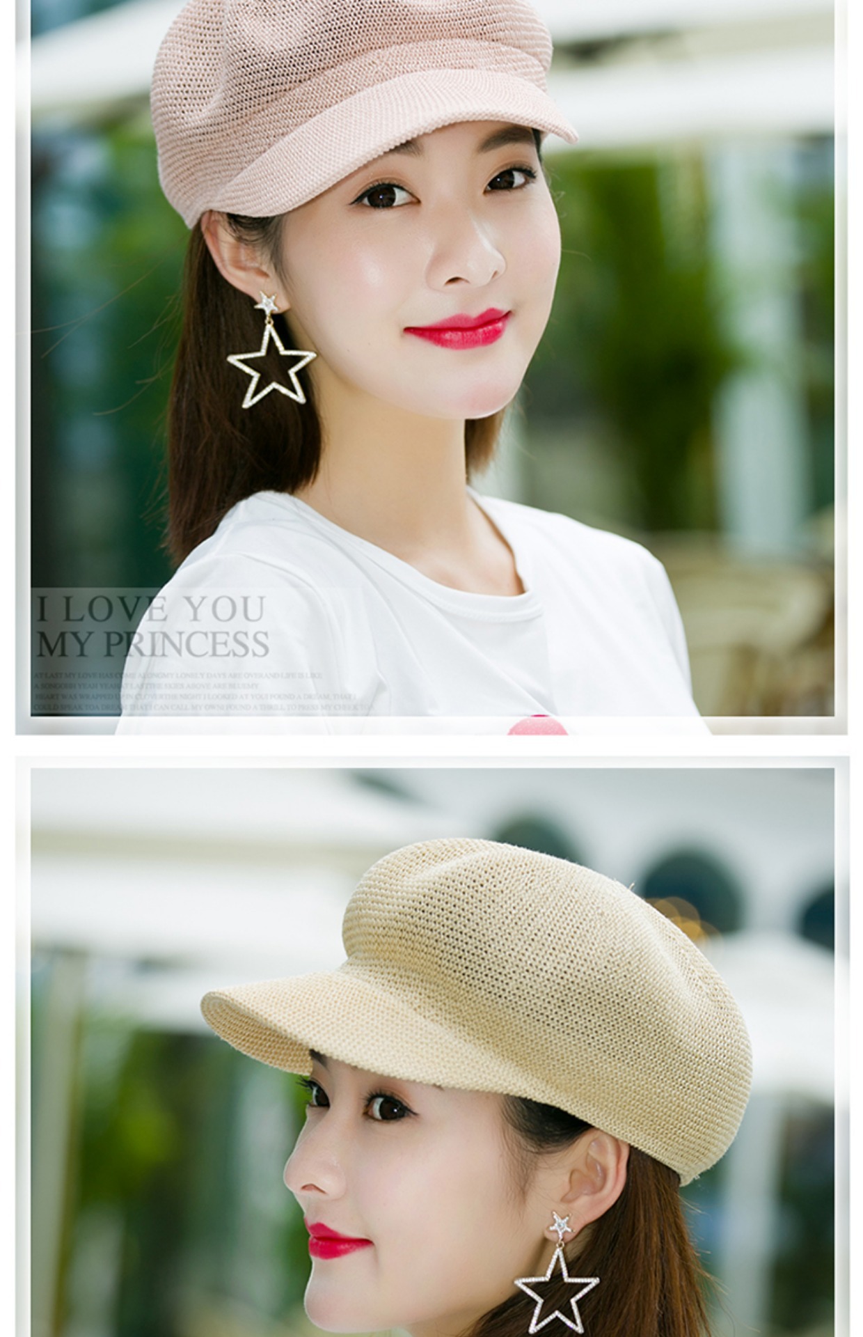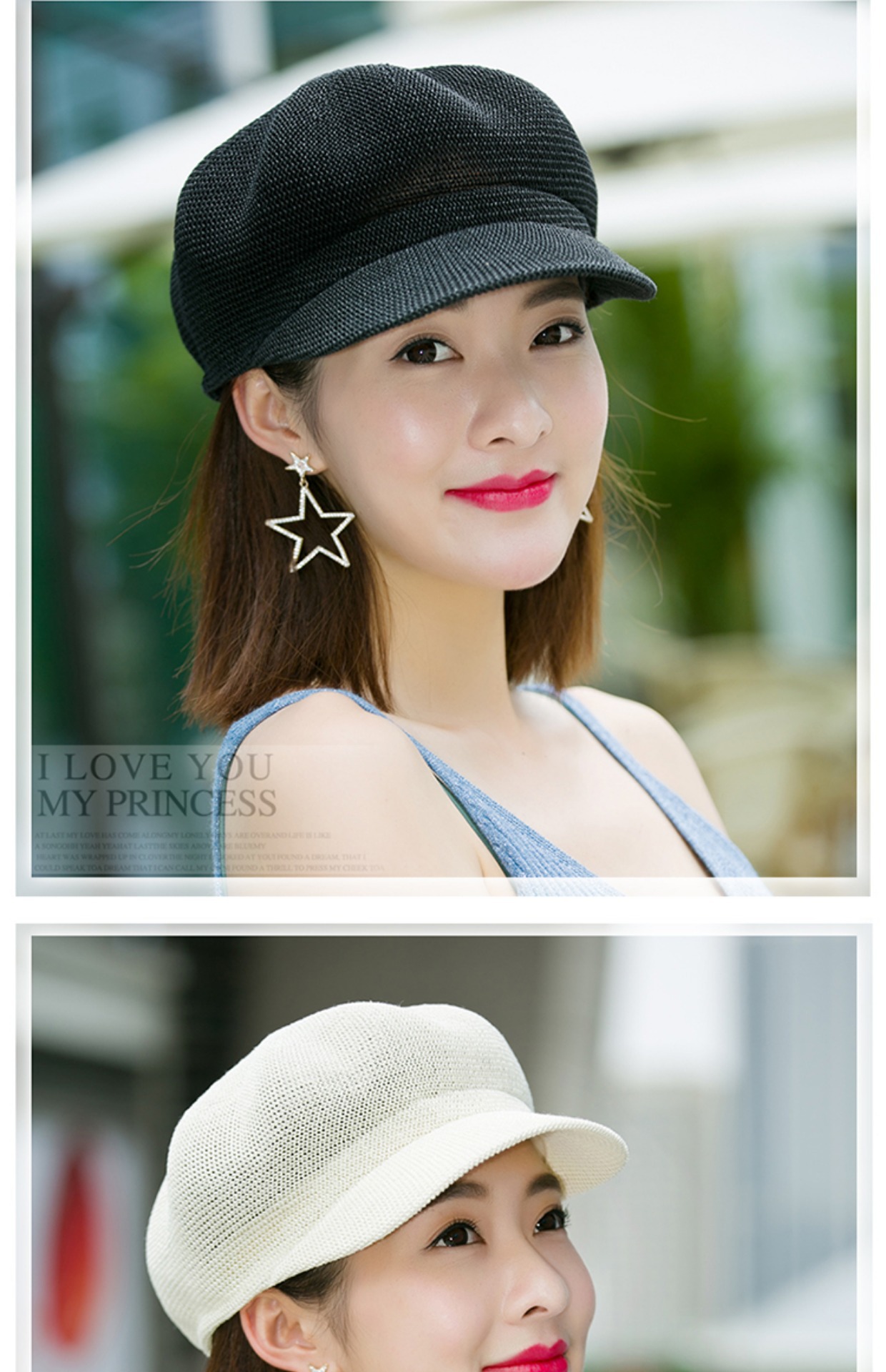 贝雷帽子女春季夏天韩版百搭出游遮阳帽防晒鸭舌八角帽草帽网帽潮