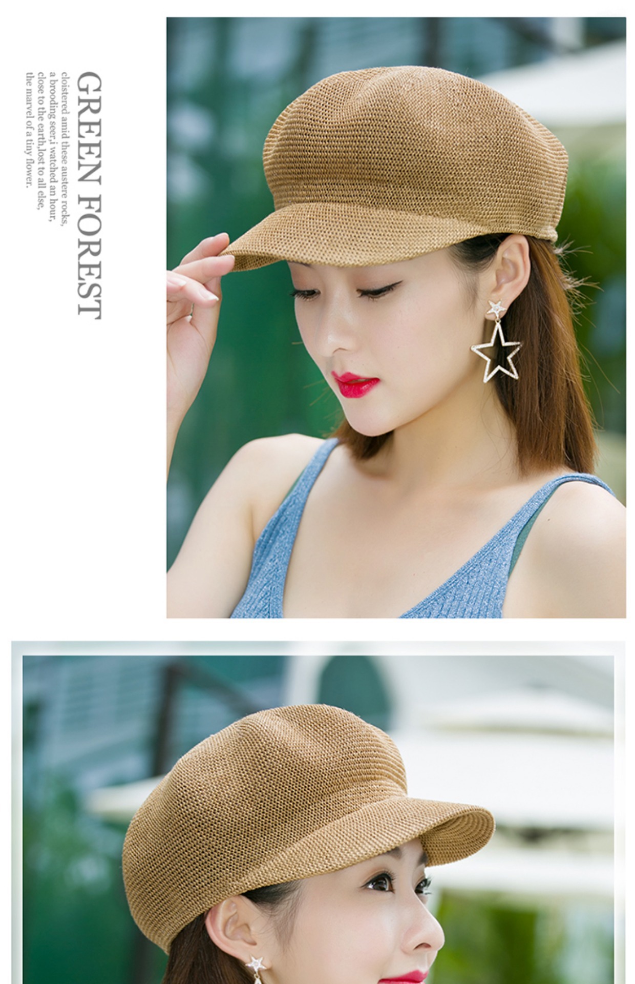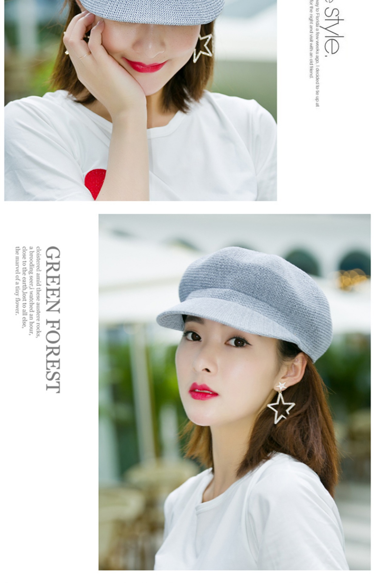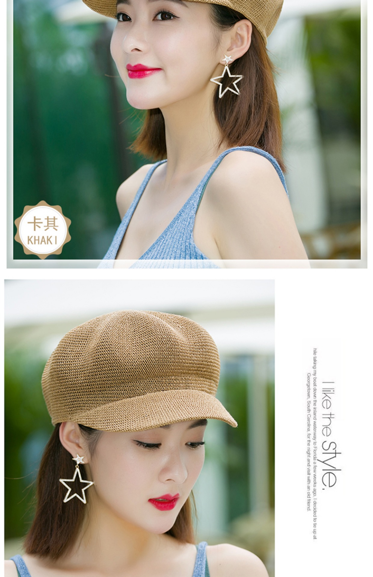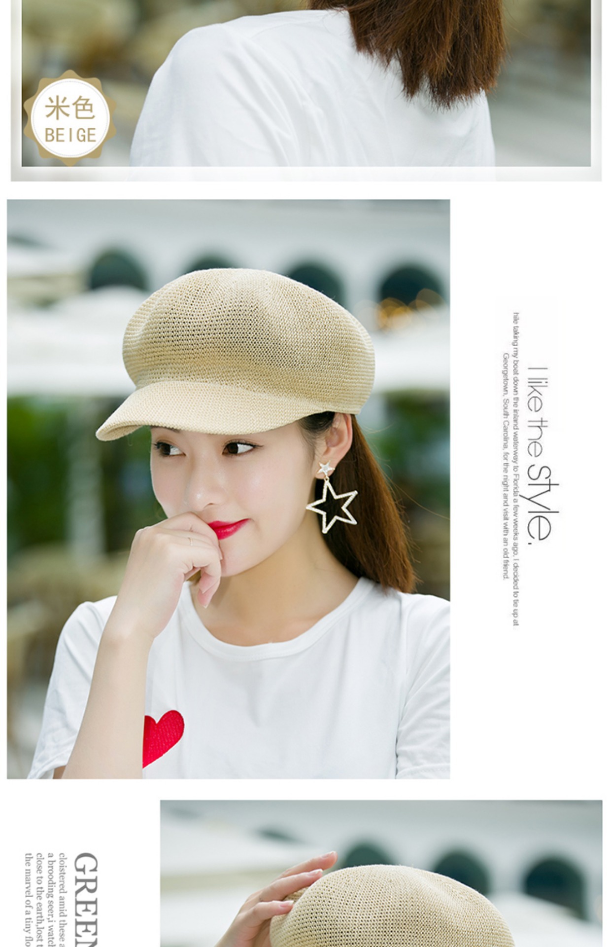 贝雷帽子女春季夏天韩版百搭出游遮阳帽防晒鸭舌八角帽草帽网帽潮