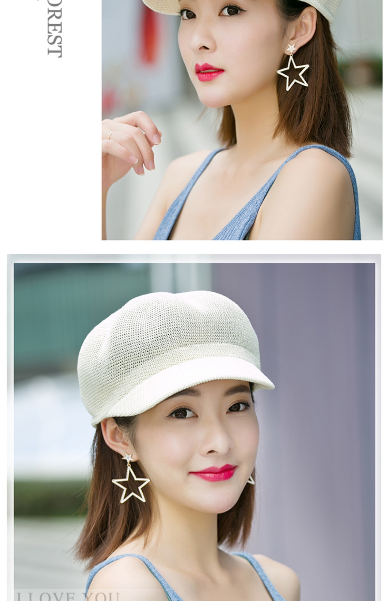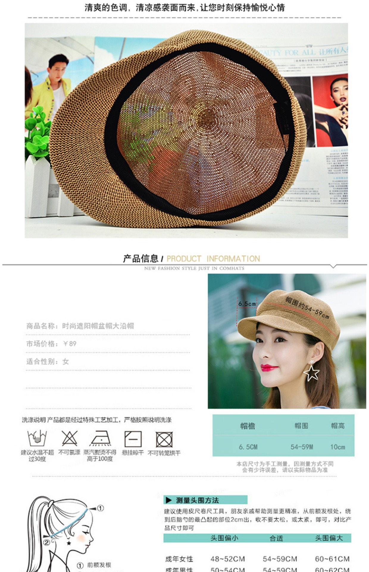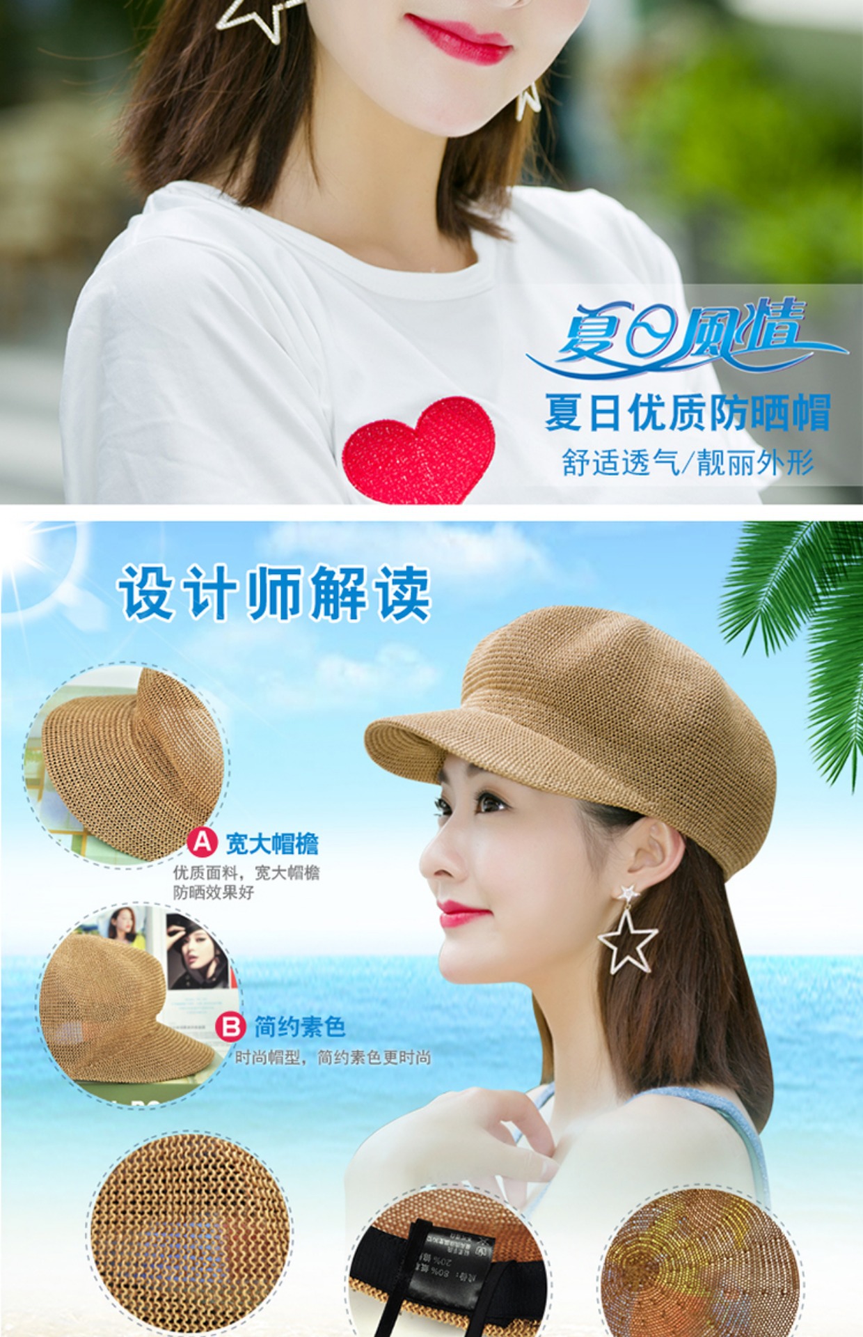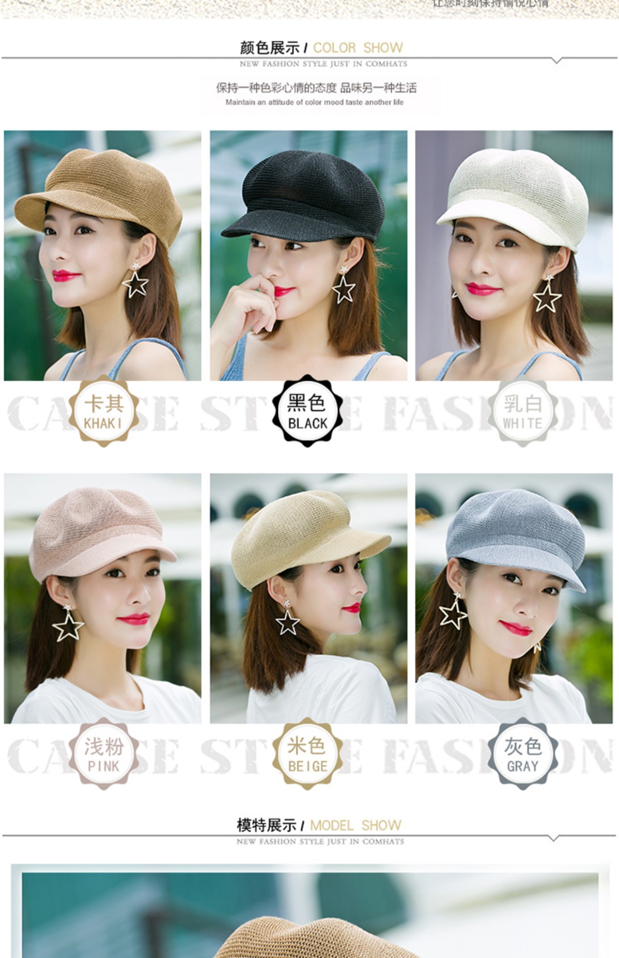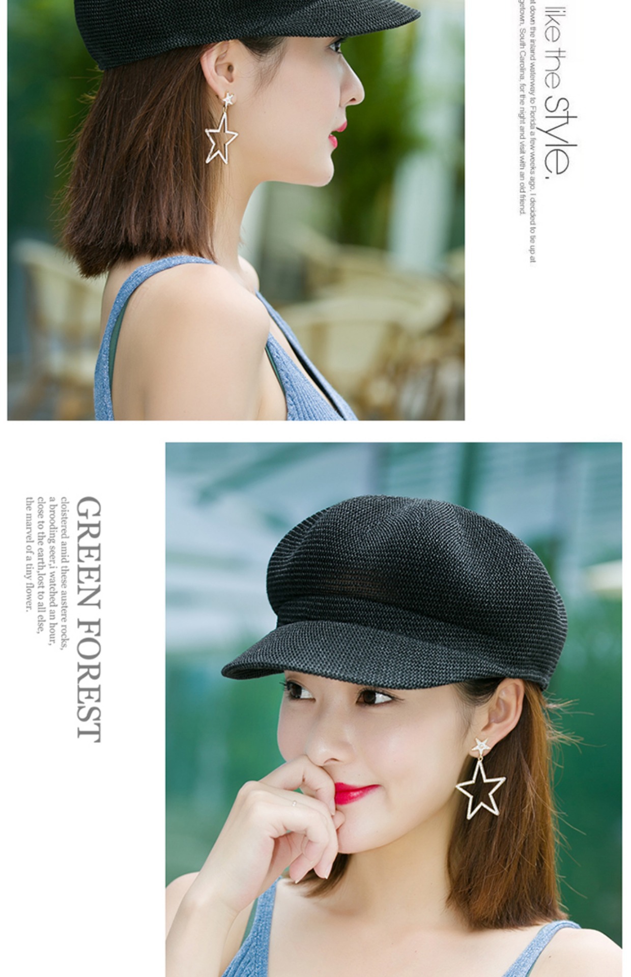 贝雷帽子女春季夏天韩版百搭出游遮阳帽防晒鸭舌八角帽草帽网帽潮
