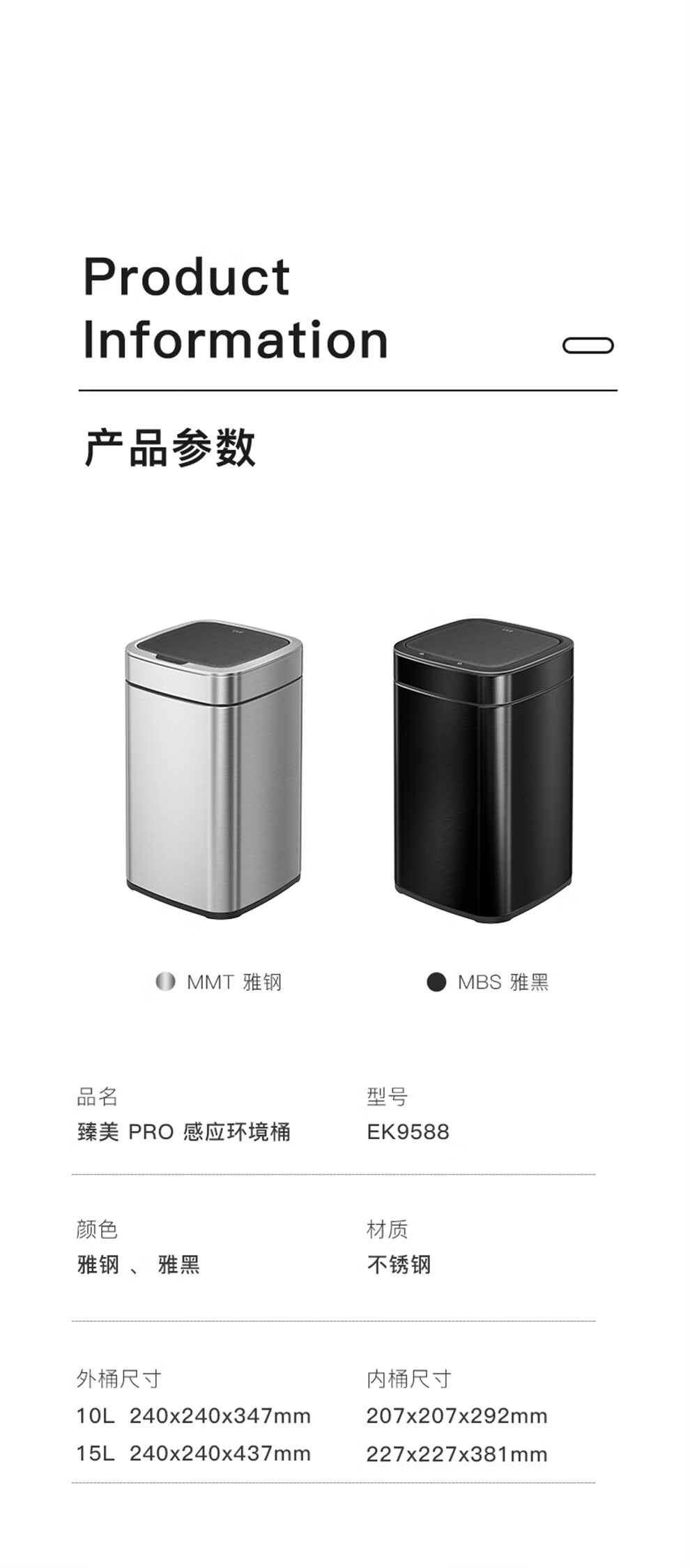 EKO臻美PRO感应环境桶垃圾桶卫生桶10L(锂电池)