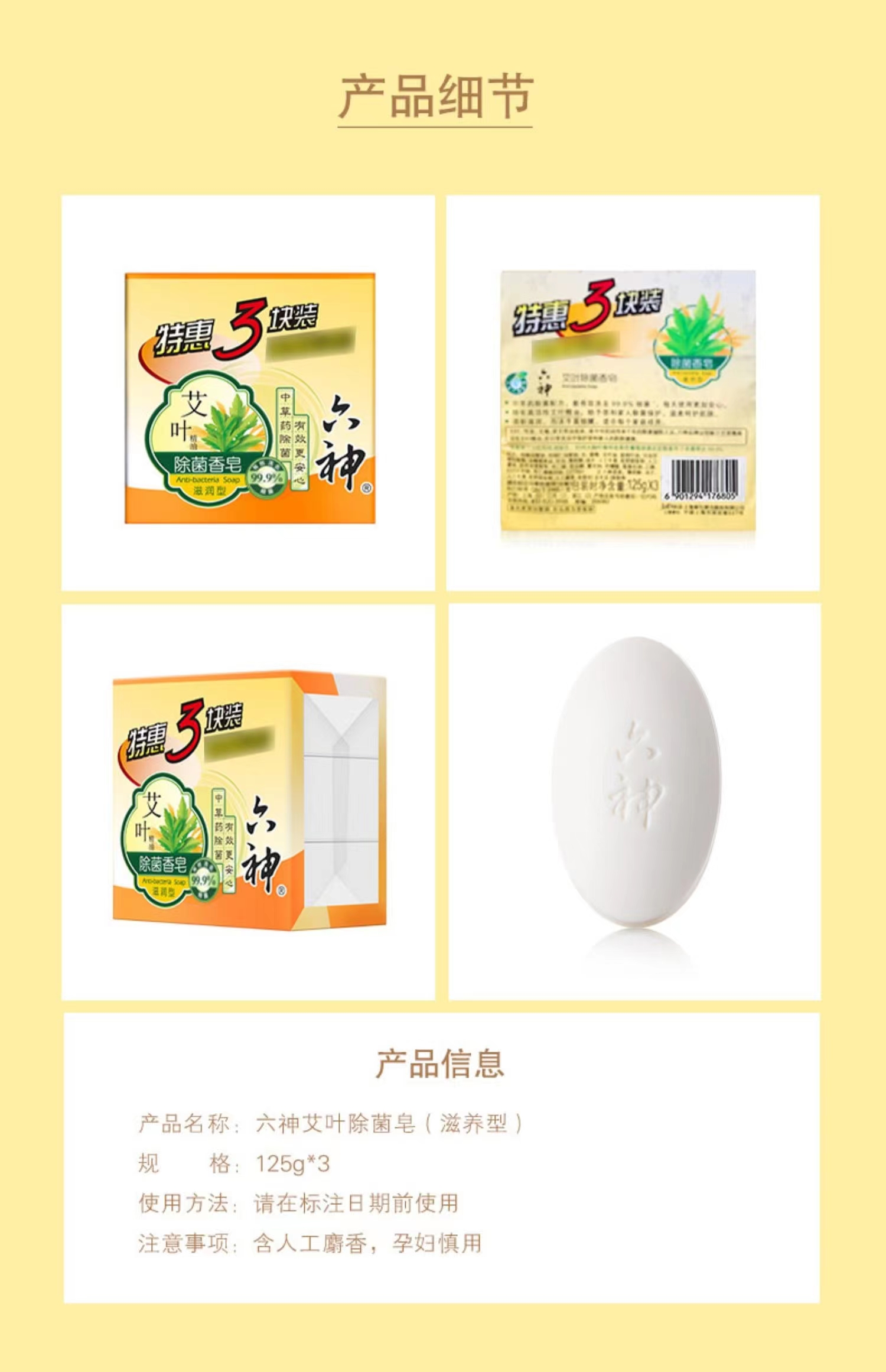 日化 六神艾叶香皂 特惠三块装