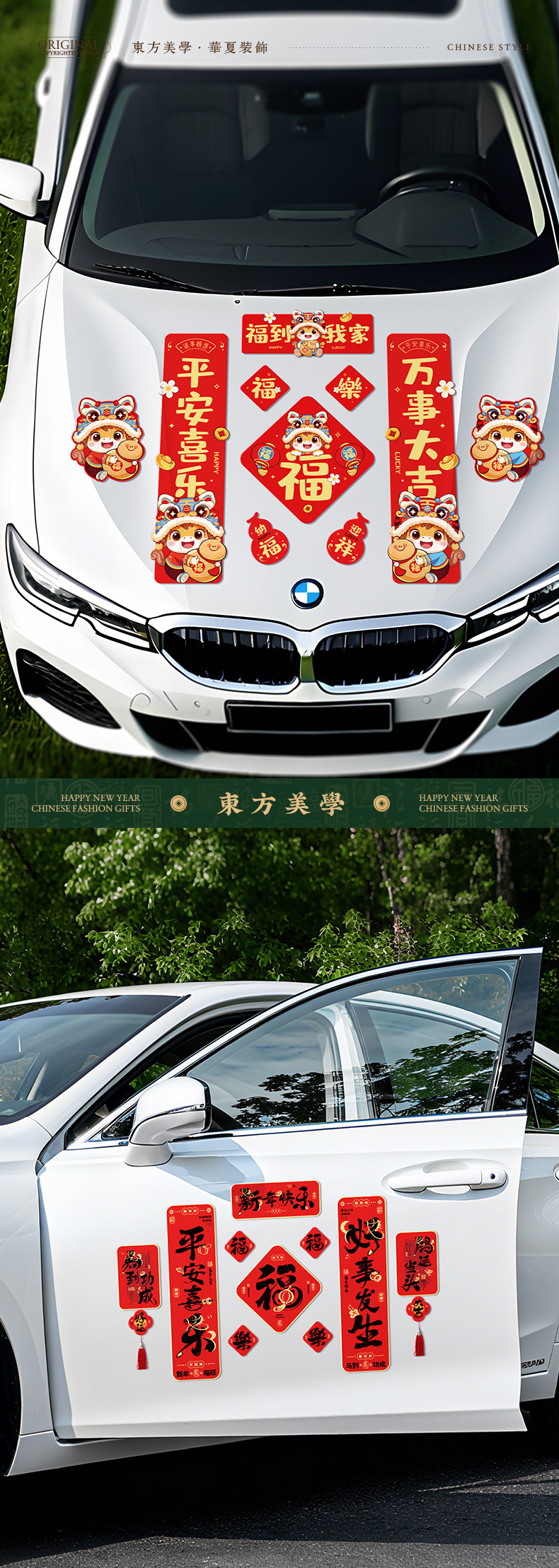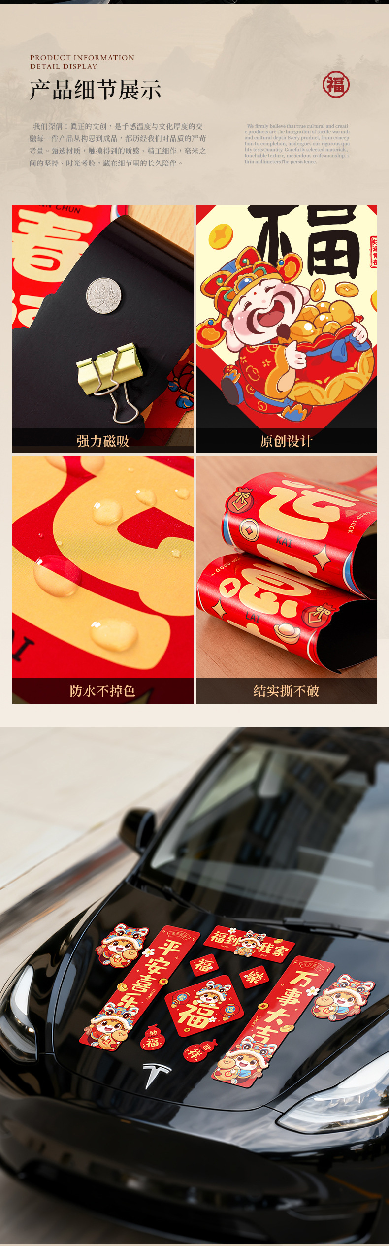 【马年!新款车贴家用磁吸贴】2026新款磁吸车对联 春联 马年春节新年家用迷你汽车贴冰箱磁贴 过年装饰