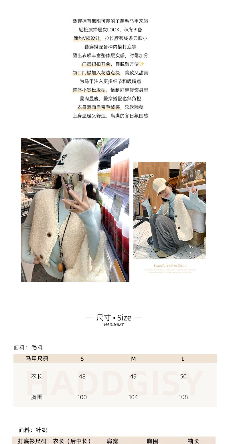 <曾小咸推荐>韩系叠穿羊羔毛马甲外套