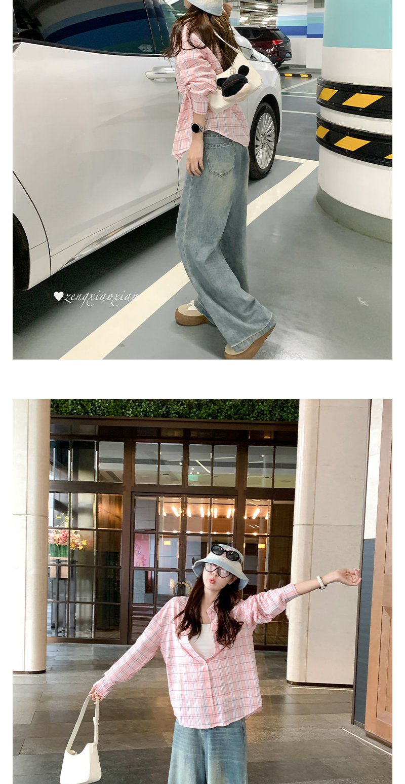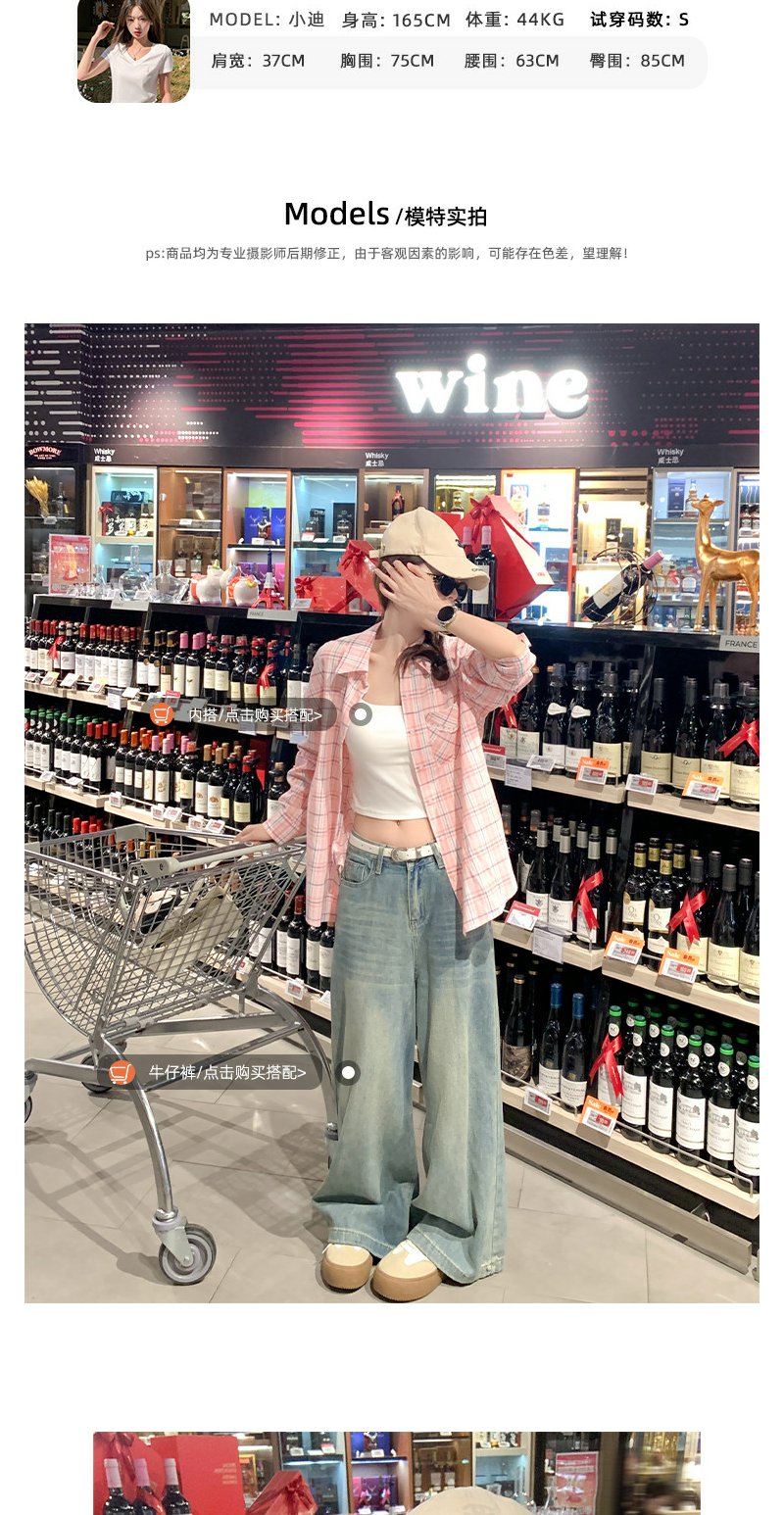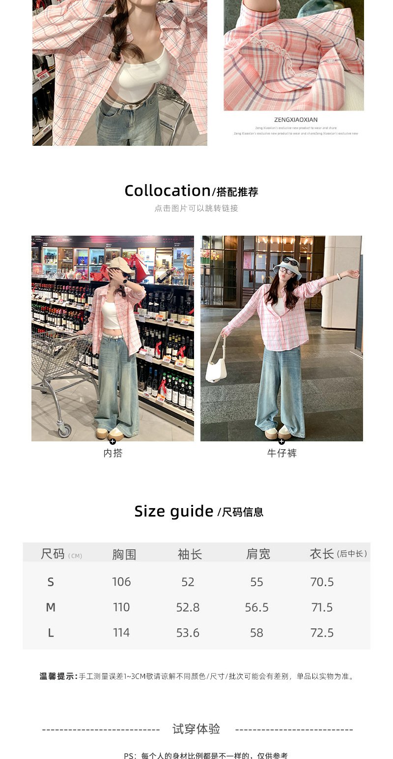 <曾小咸推荐>韩系格子拼色衬衫女长袖上衣