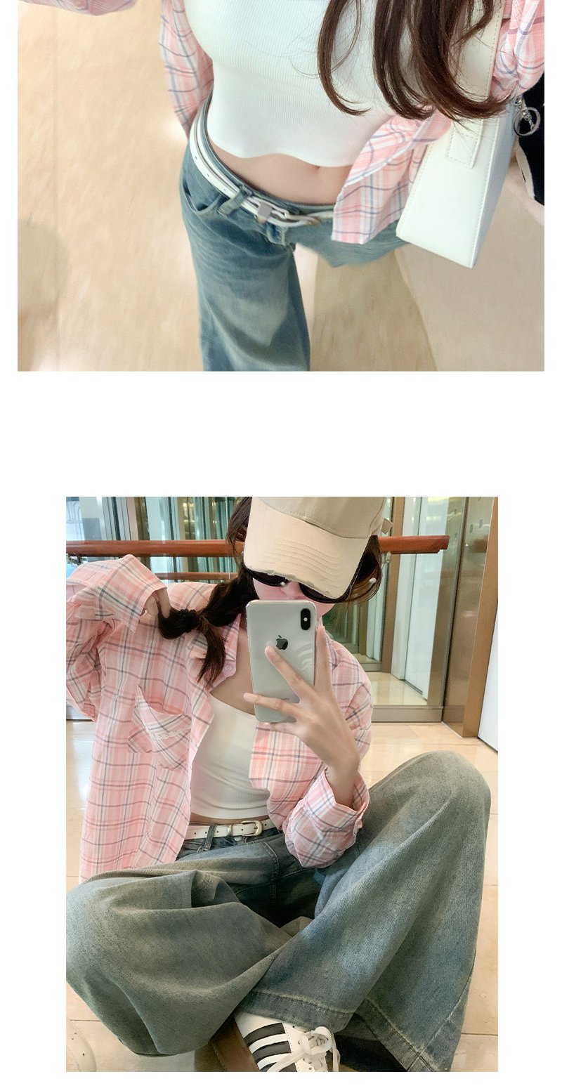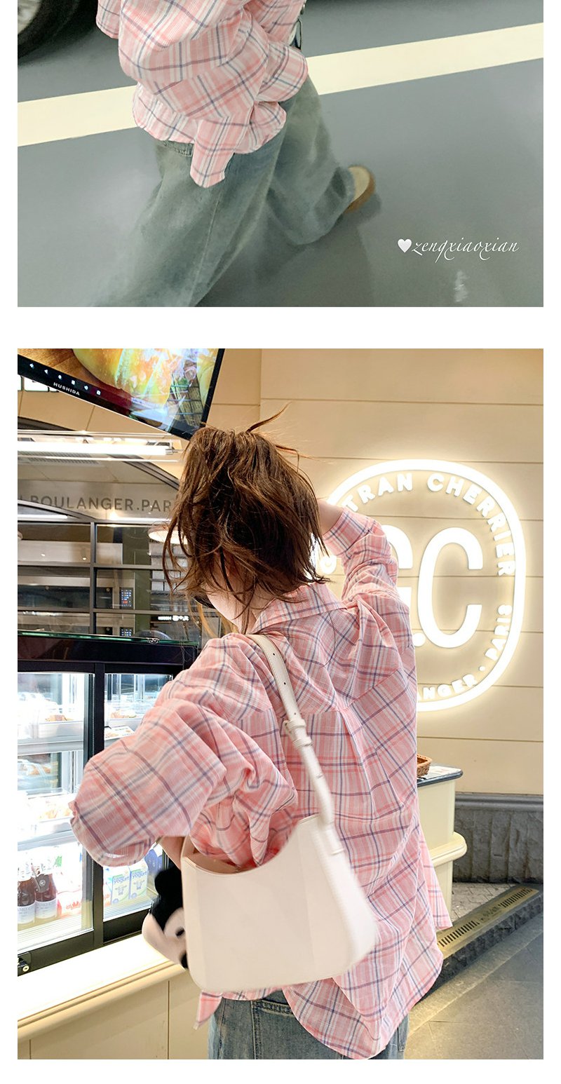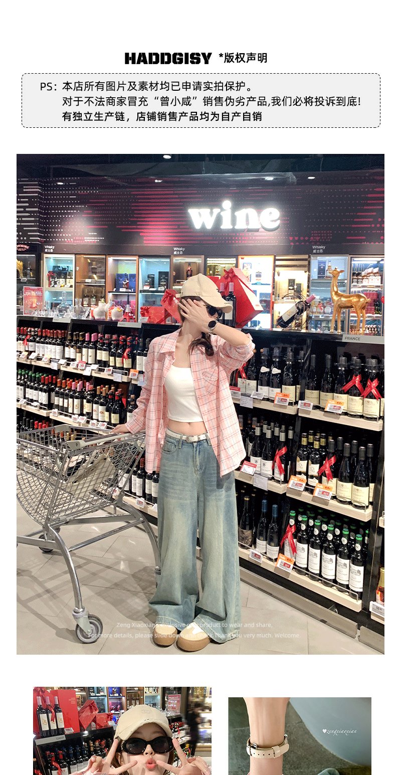 <曾小咸推荐>韩系格子拼色衬衫女长袖上衣
