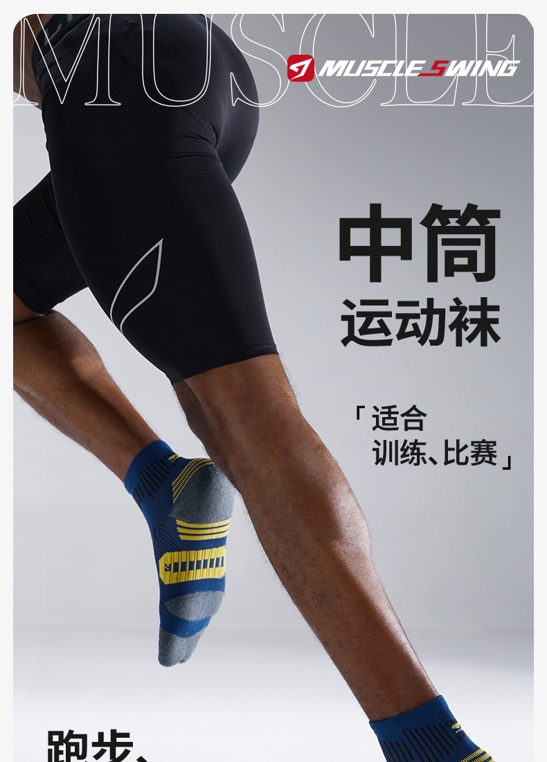 616肌动中筒运动袜专业马拉松袜子跑步袜子男女款毛巾底防滑速干透气
