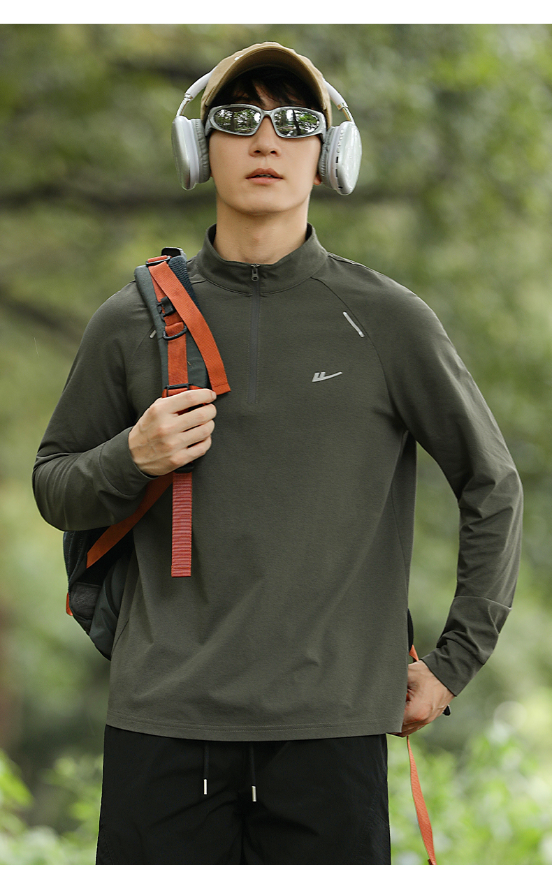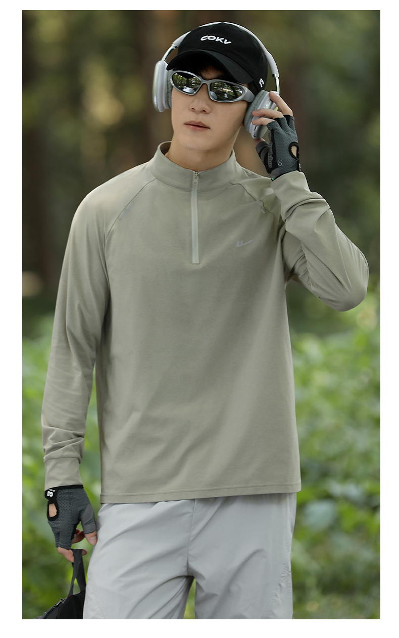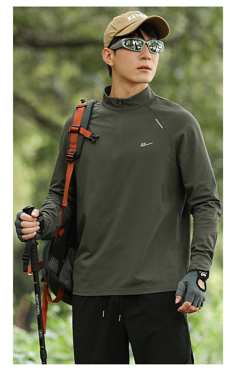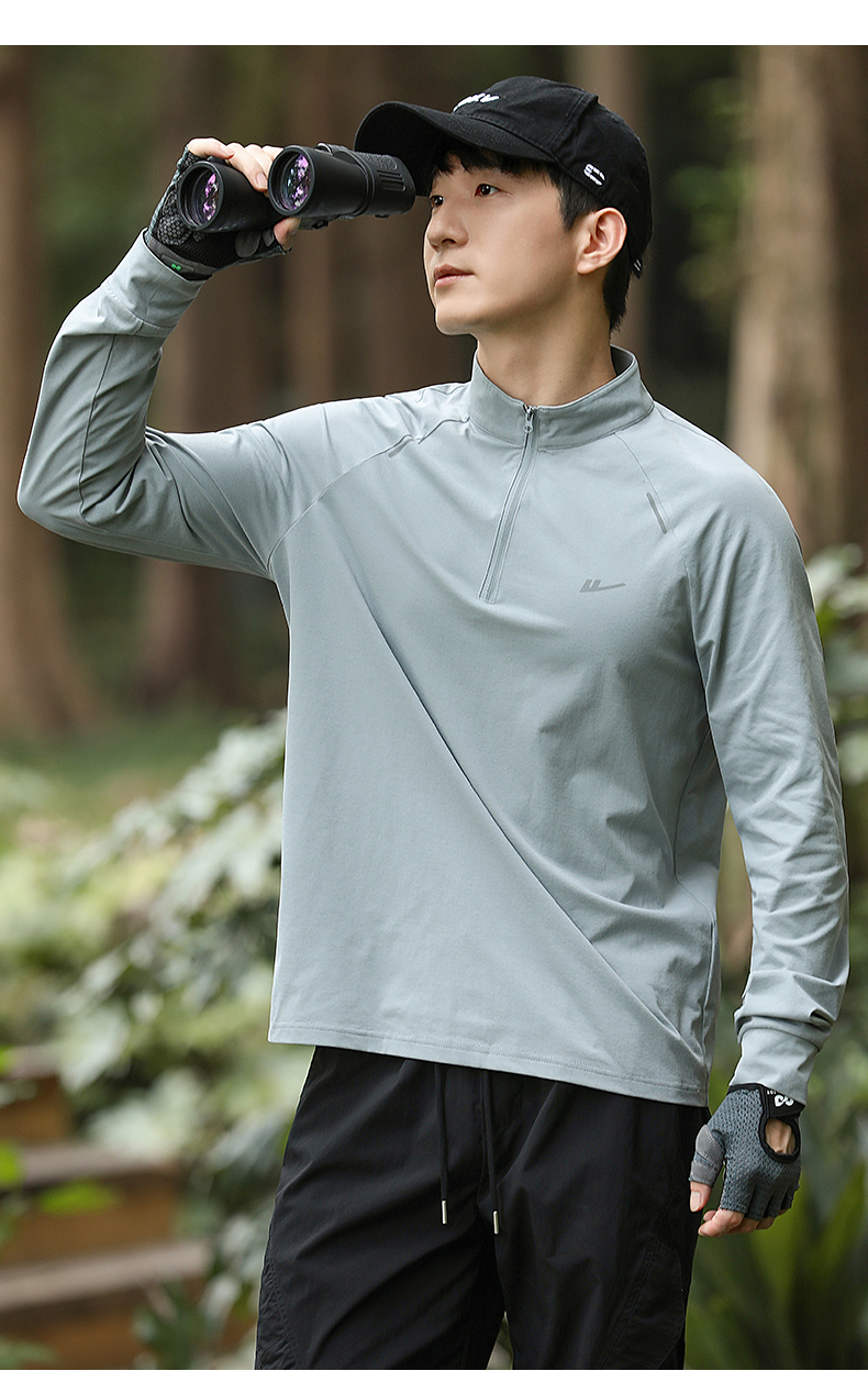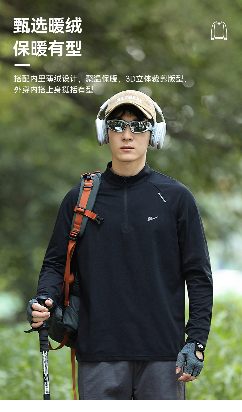 回力加绒速干衣长袖t恤男秋冬跑步健身服户外登山运动半拉链卫衣