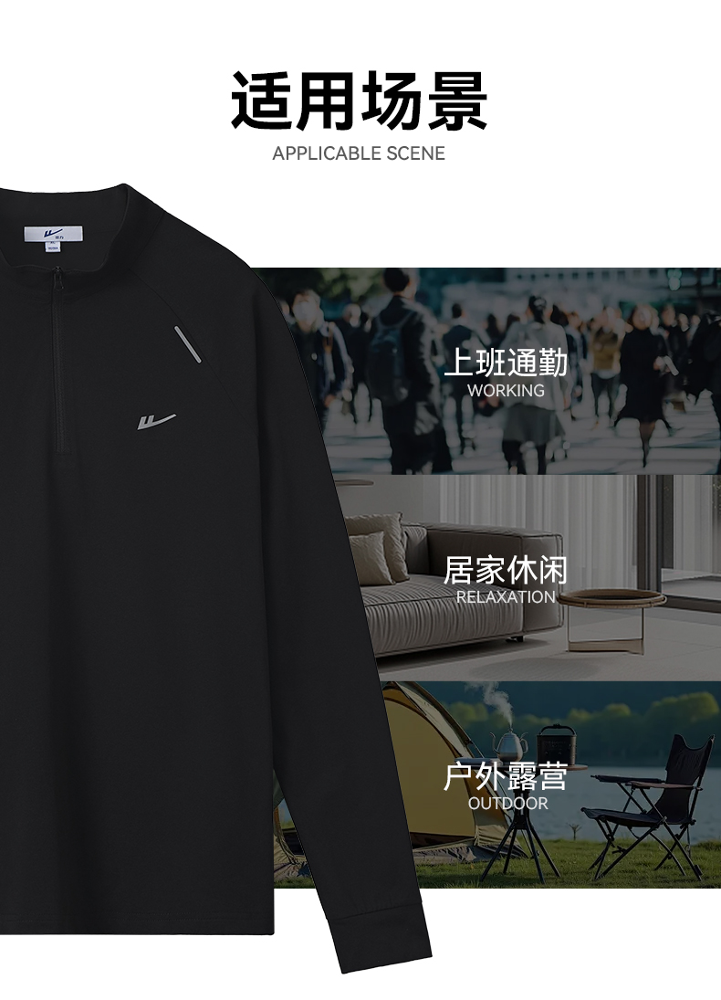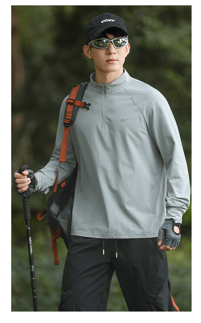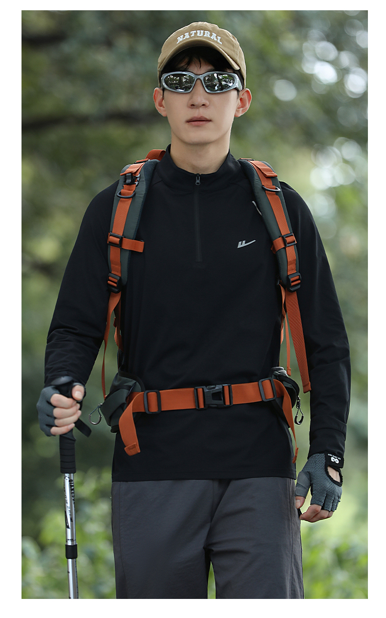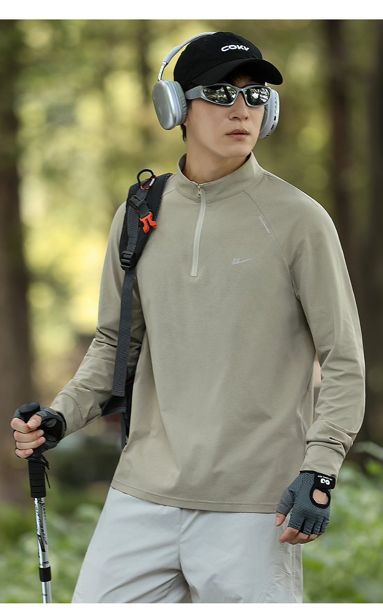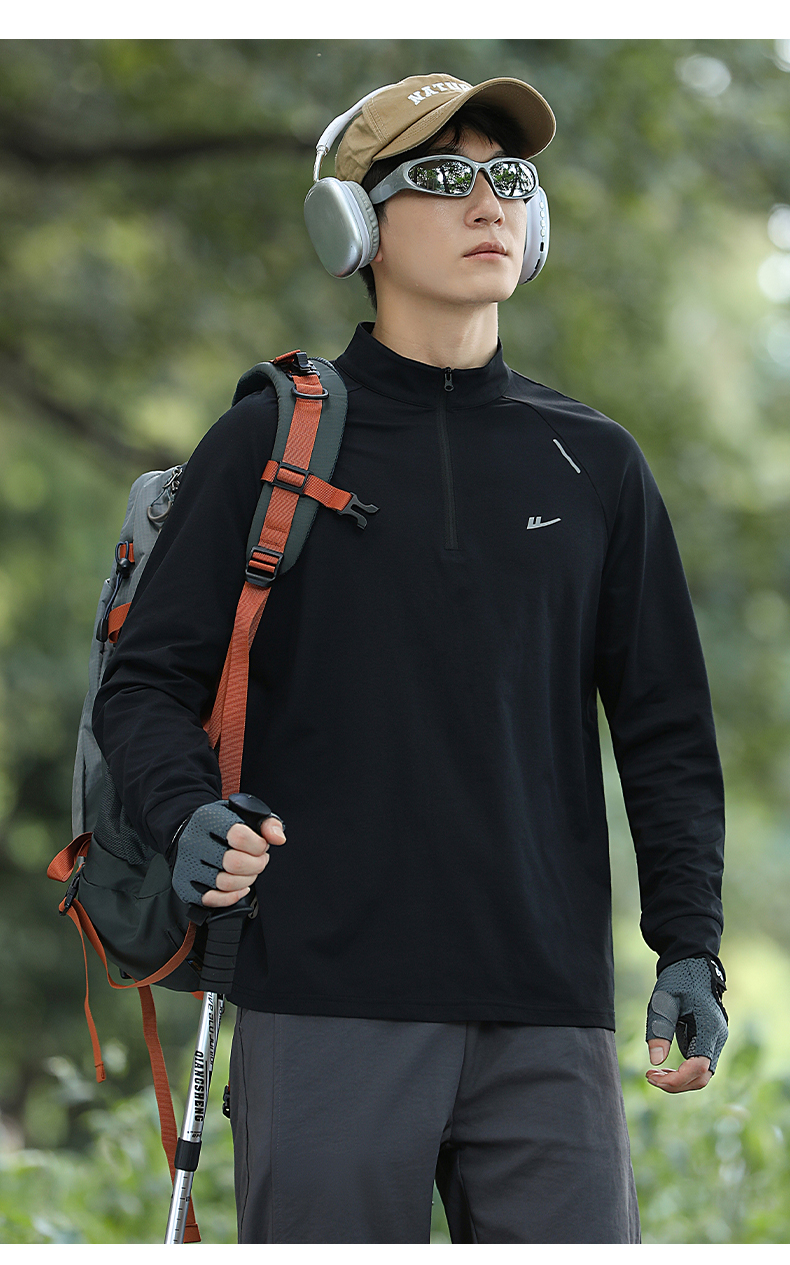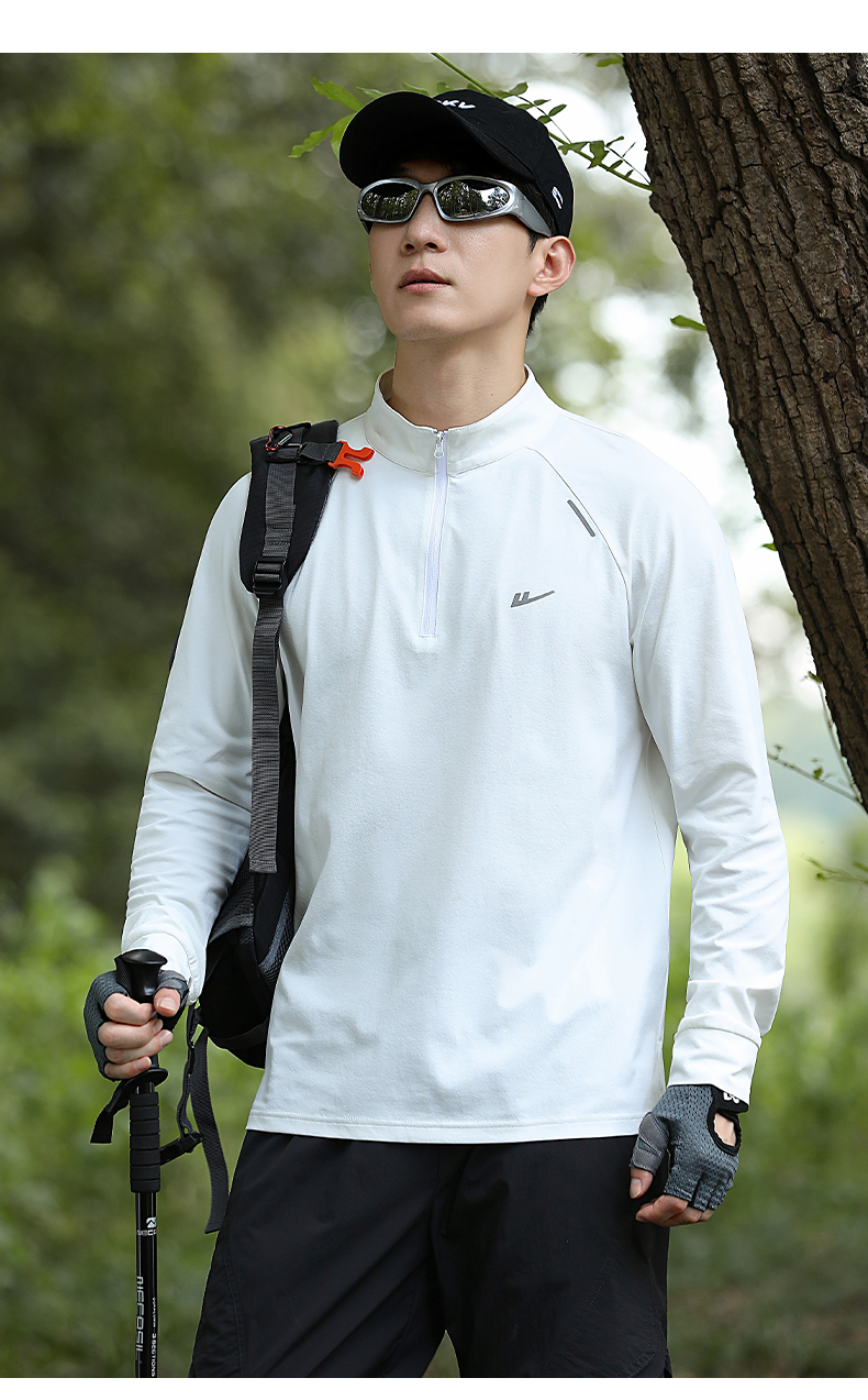 回力加绒速干衣长袖t恤男秋冬跑步健身服户外登山运动半拉链卫衣
