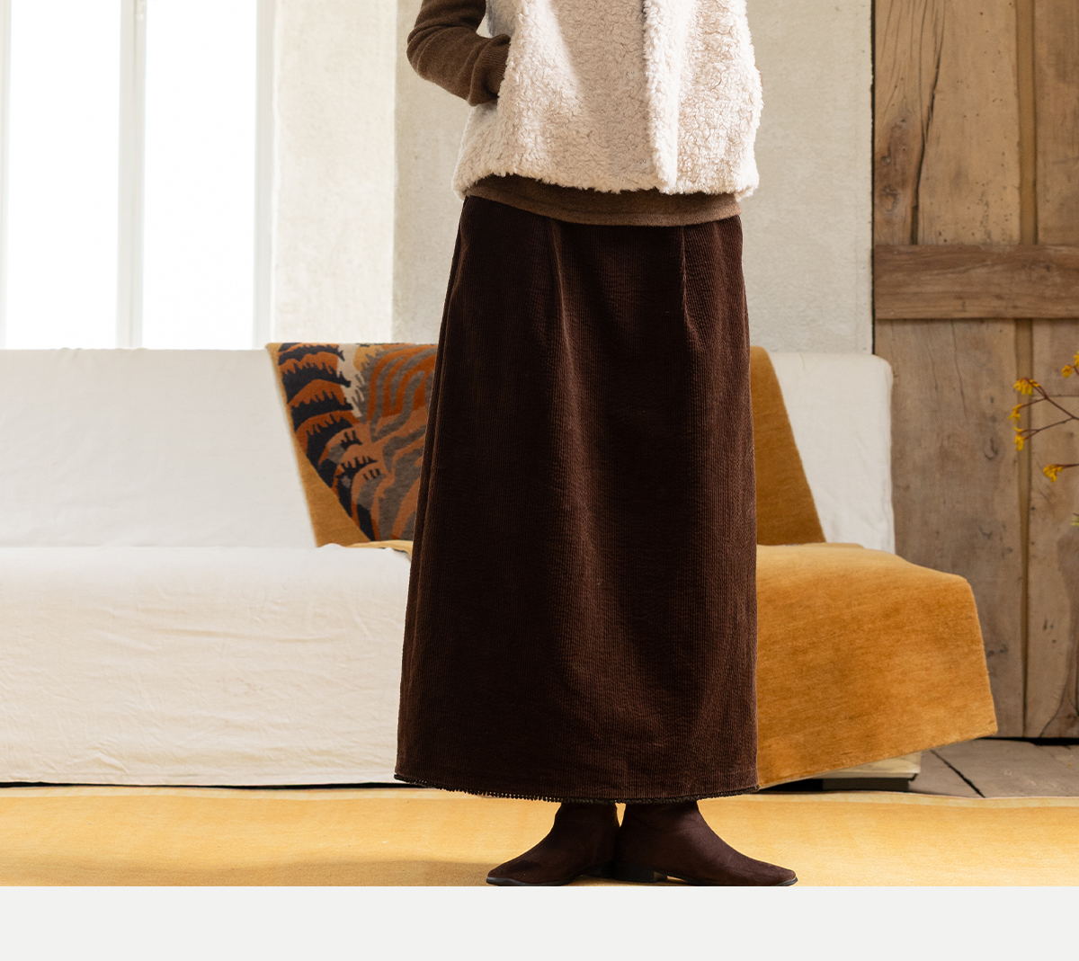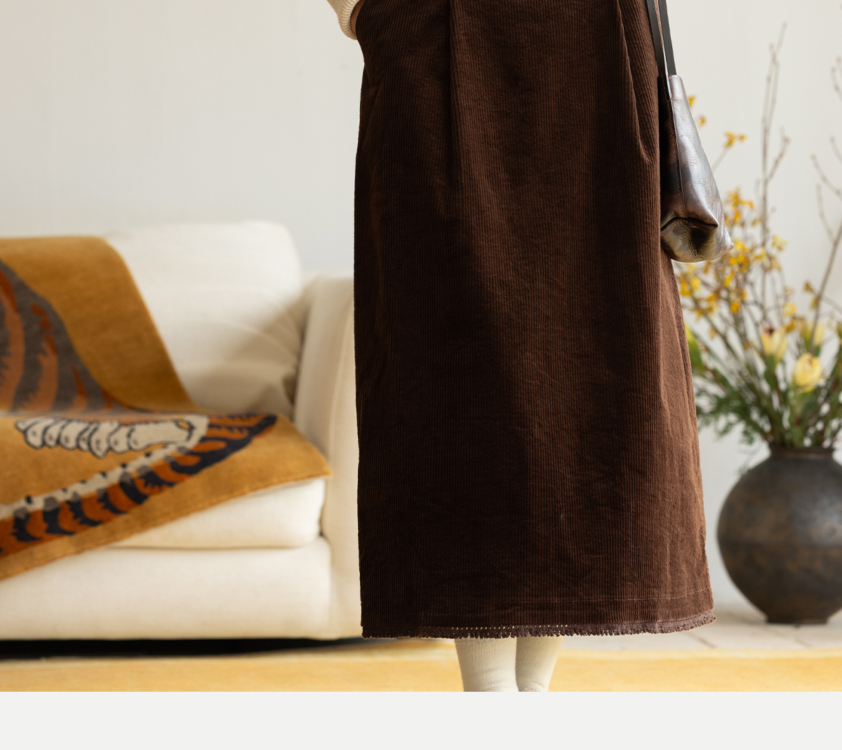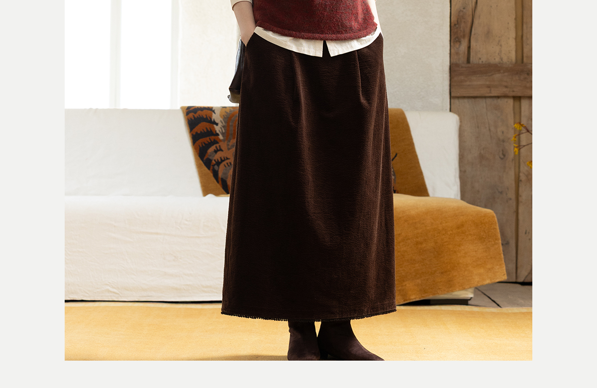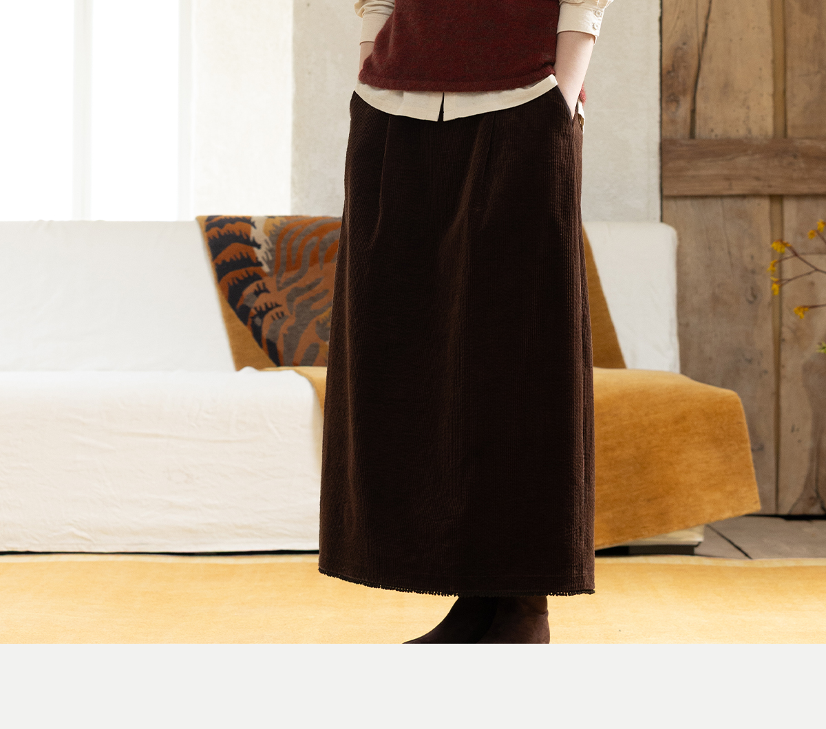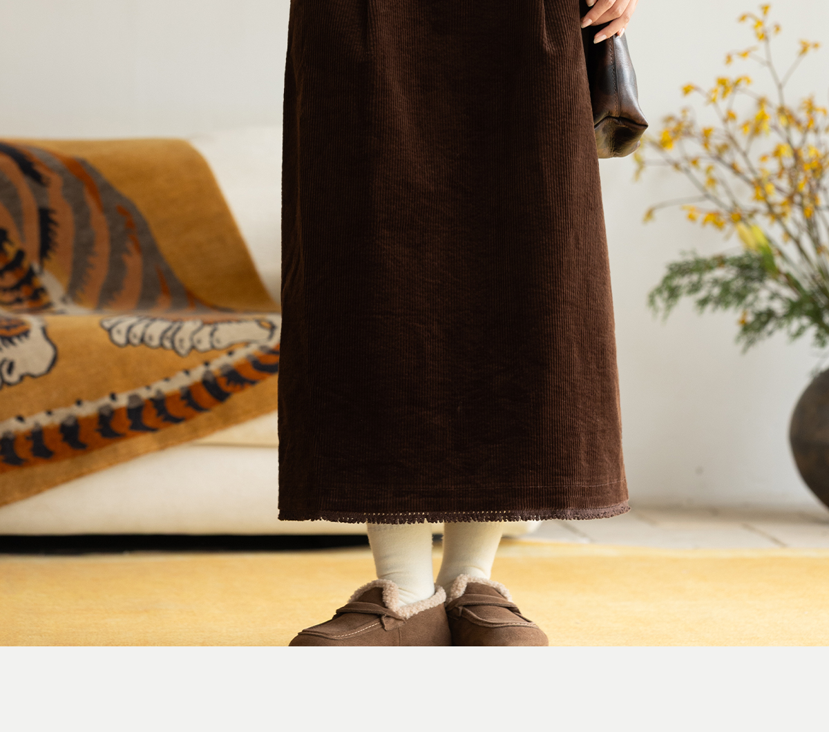 牧衣游原创 净色灯芯绒半身裙新款文艺复古简约百搭直筒半裙 汀之